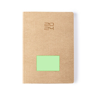 Öko-Kalender im A5-Format, mit elegantem Einband aus Granulatkarton mit Naturfinish. Gestaltung der Tagesseite, mit Lesezeichen aus Stoff und Spruch des Tages. In 8 Sprachen: Spanisch, Englisch, Französisch, Italienisch, Portugiesisch, Galicisch, Baskisch und Katalanisch. Umweltfreundliches Logo auf der hinteren Umschlagseite und hergestellt aus elementar chlorfreiem Papier (ECF), das die Umweltverschmutzung beim Bleichen des Zellstoffs drastisch reduziert, eine ausgezeichnete Qualität des Endprodukts erzielt und gleichzeitig den mehrfachen Recyclingprozess garantiert.