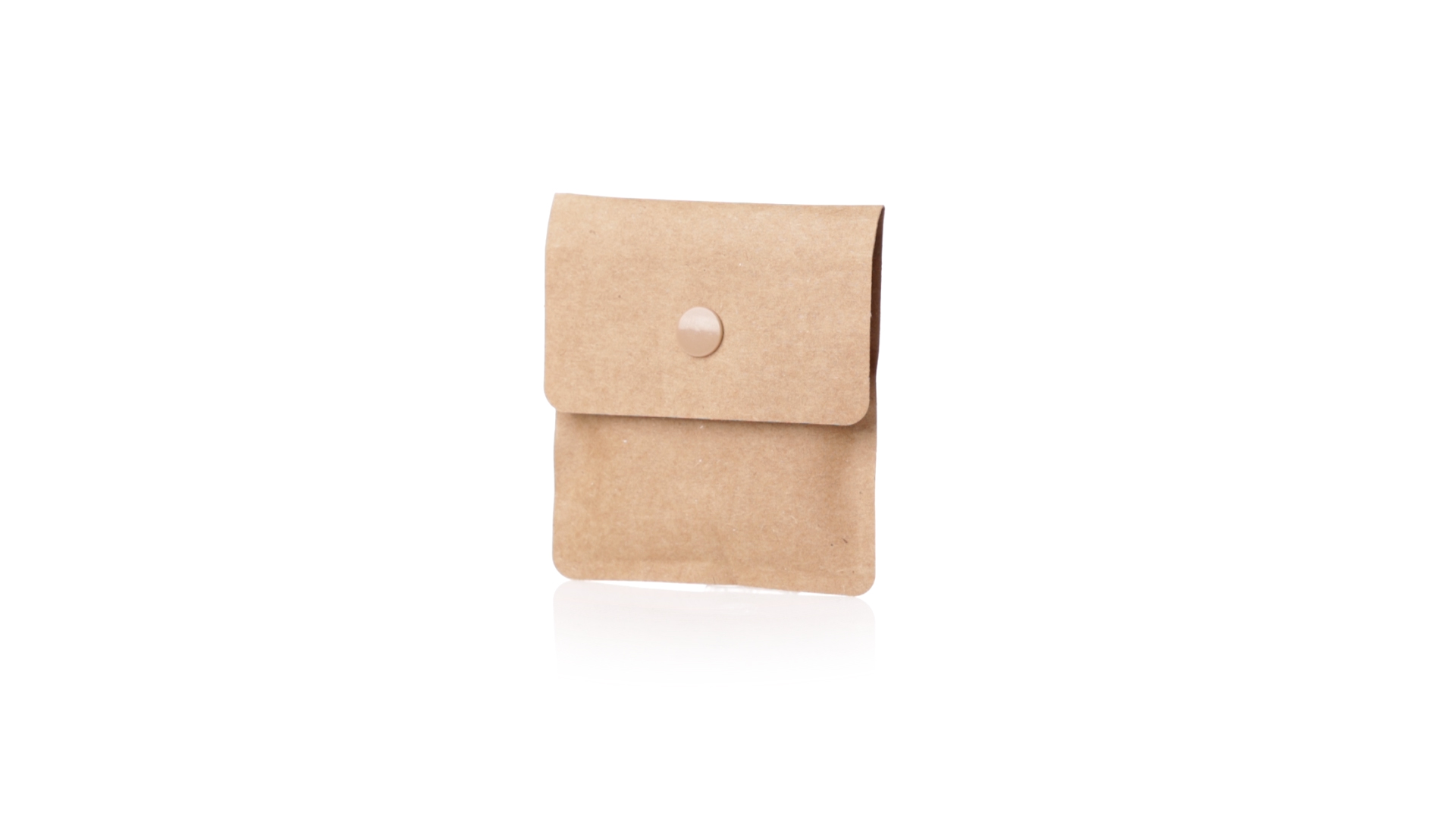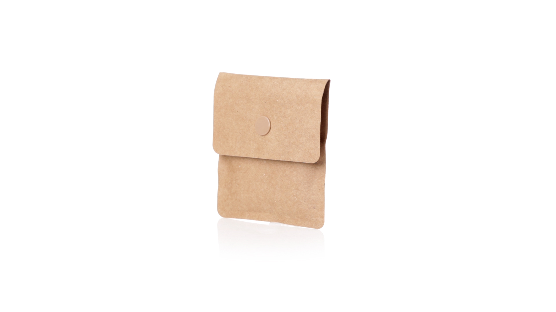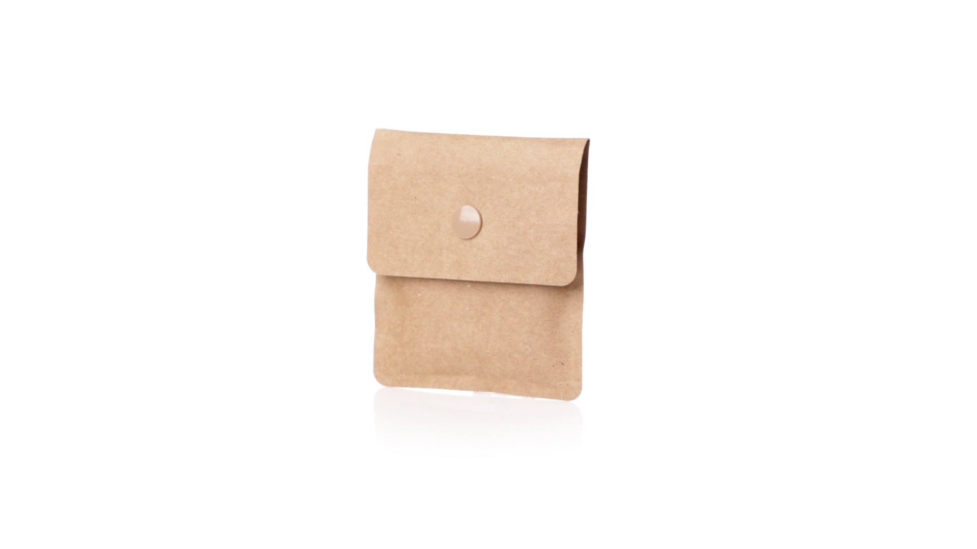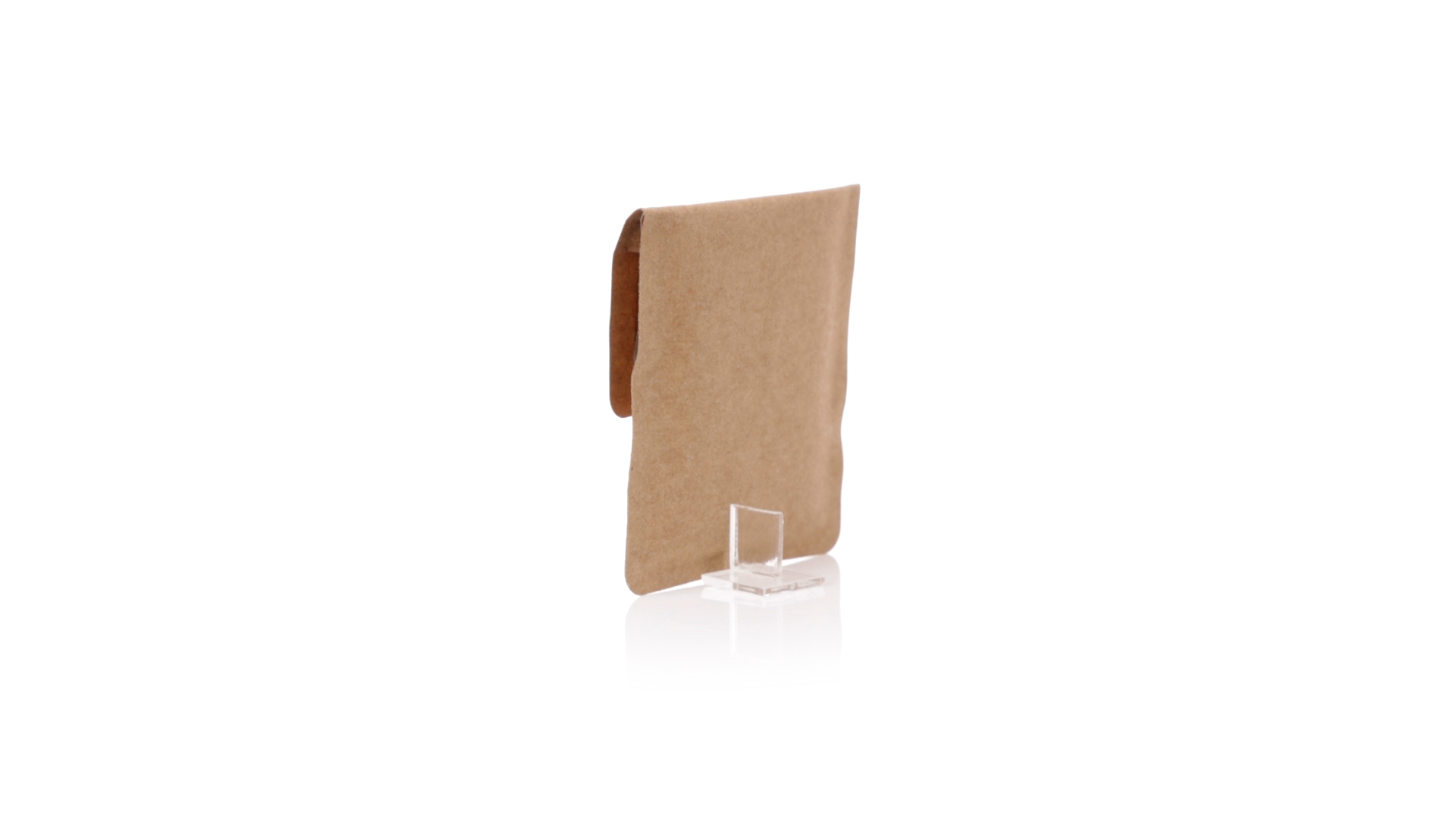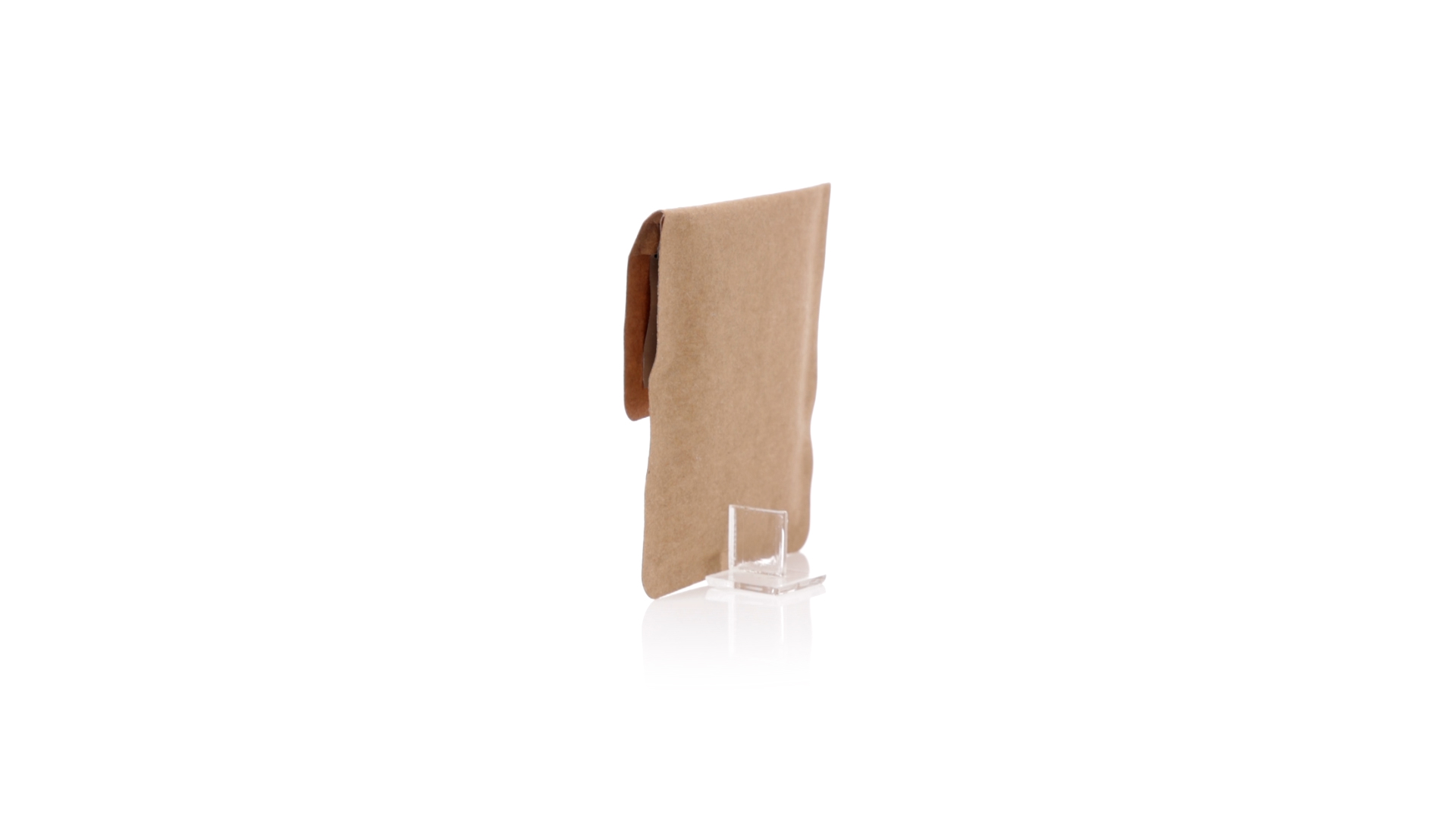 Linie Natur Taschenaschenbecher, aussen mit laminiertem Recyclingpapier und innen aus feuerfestem Aluminium. Klappe mit passendem Haken- und Ösenverschluss.