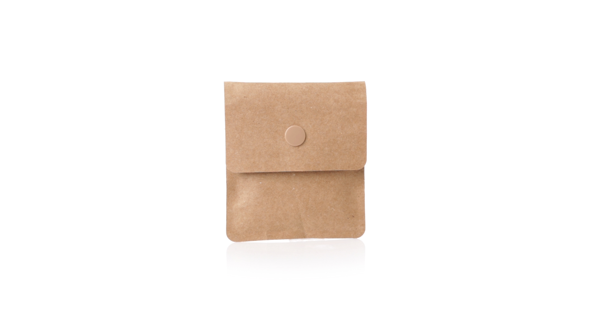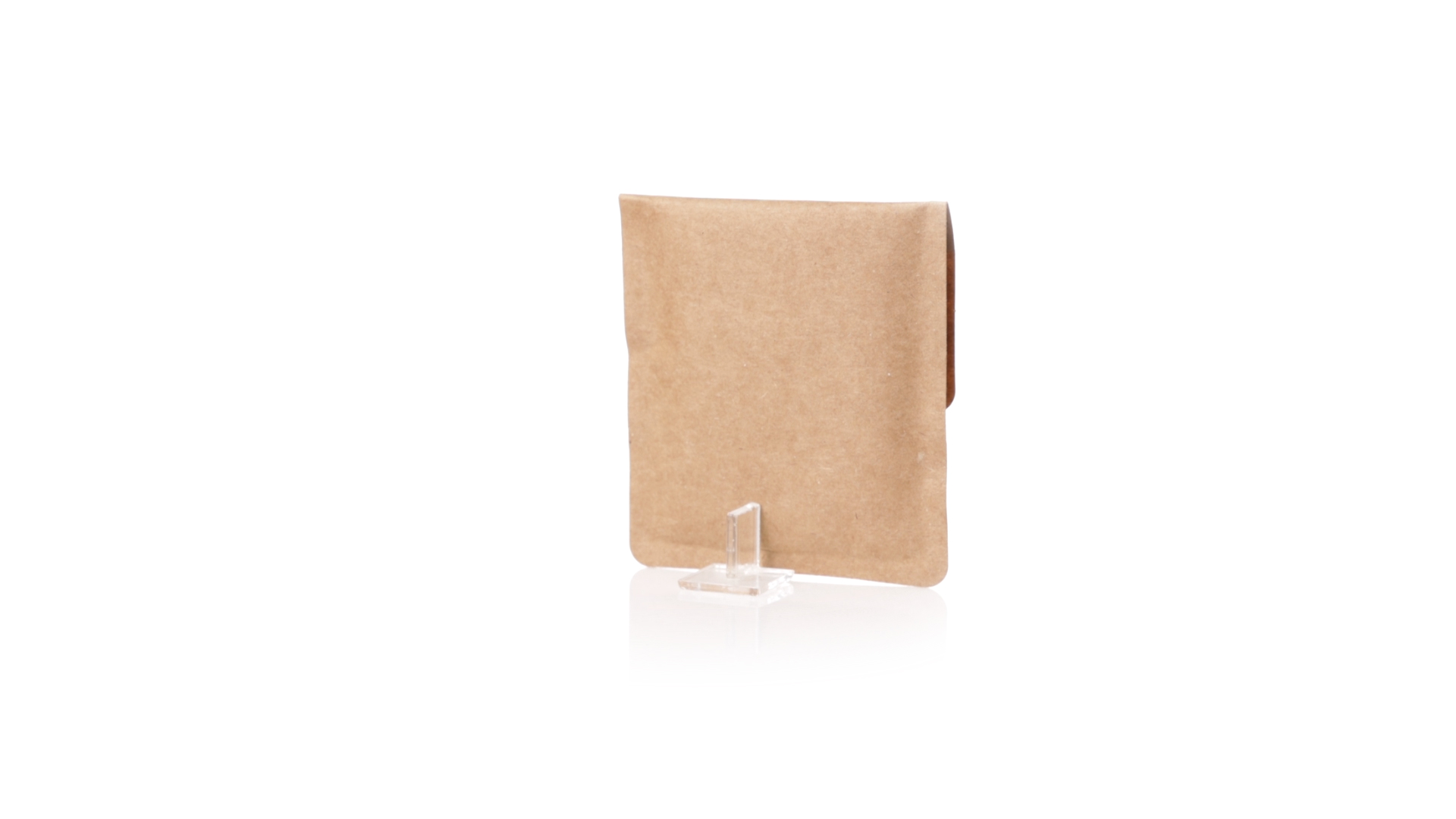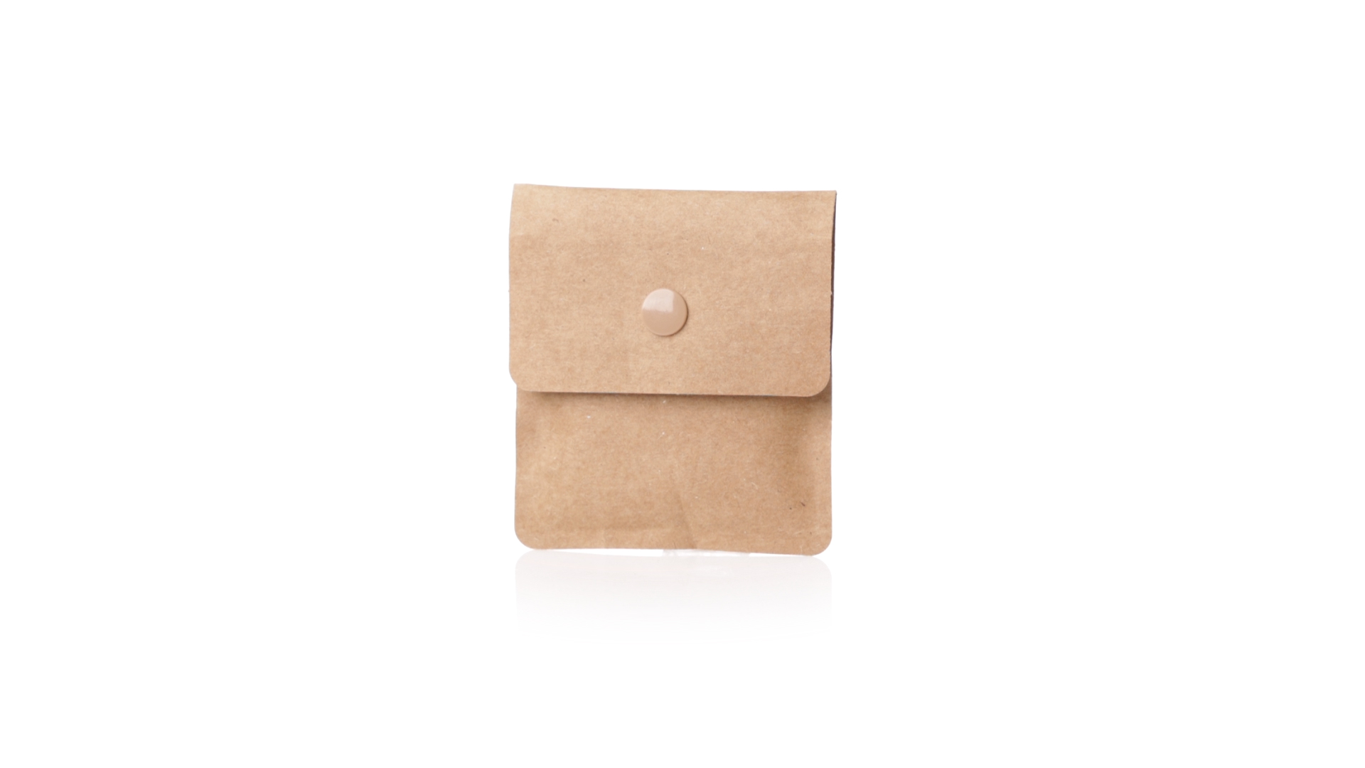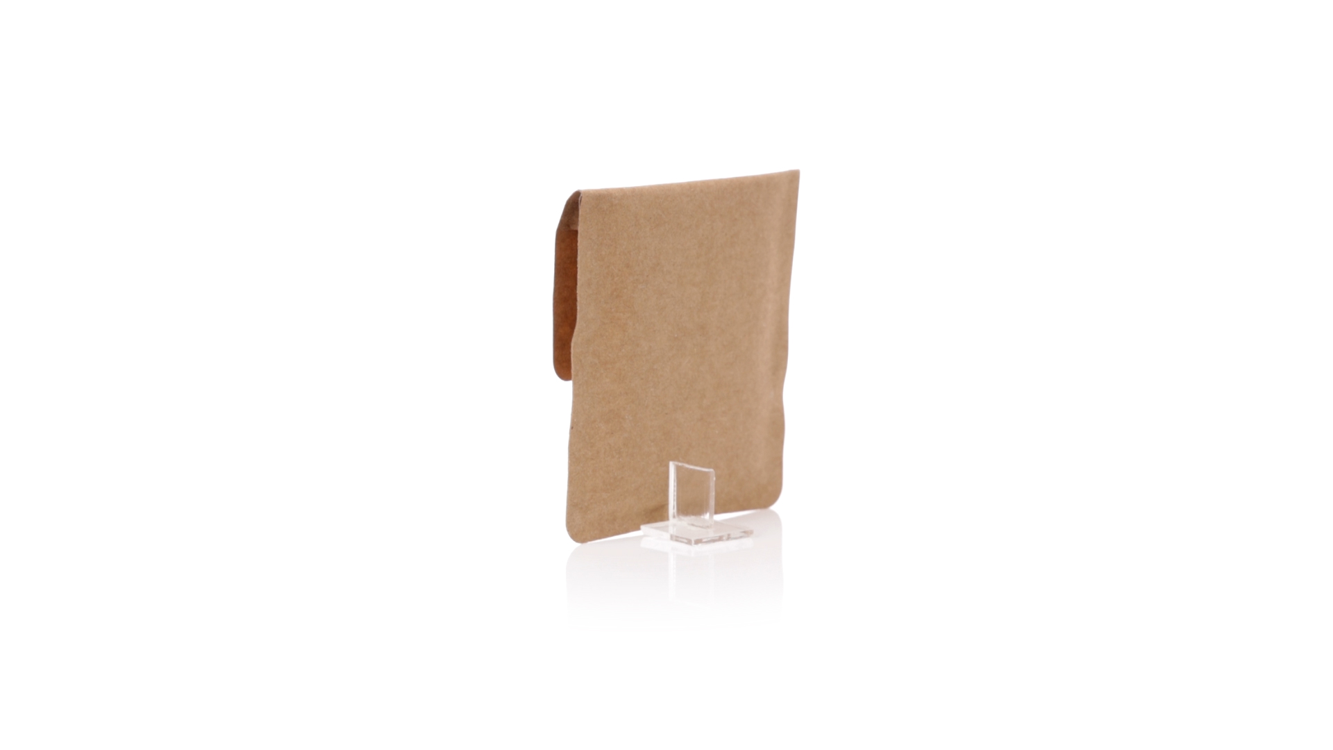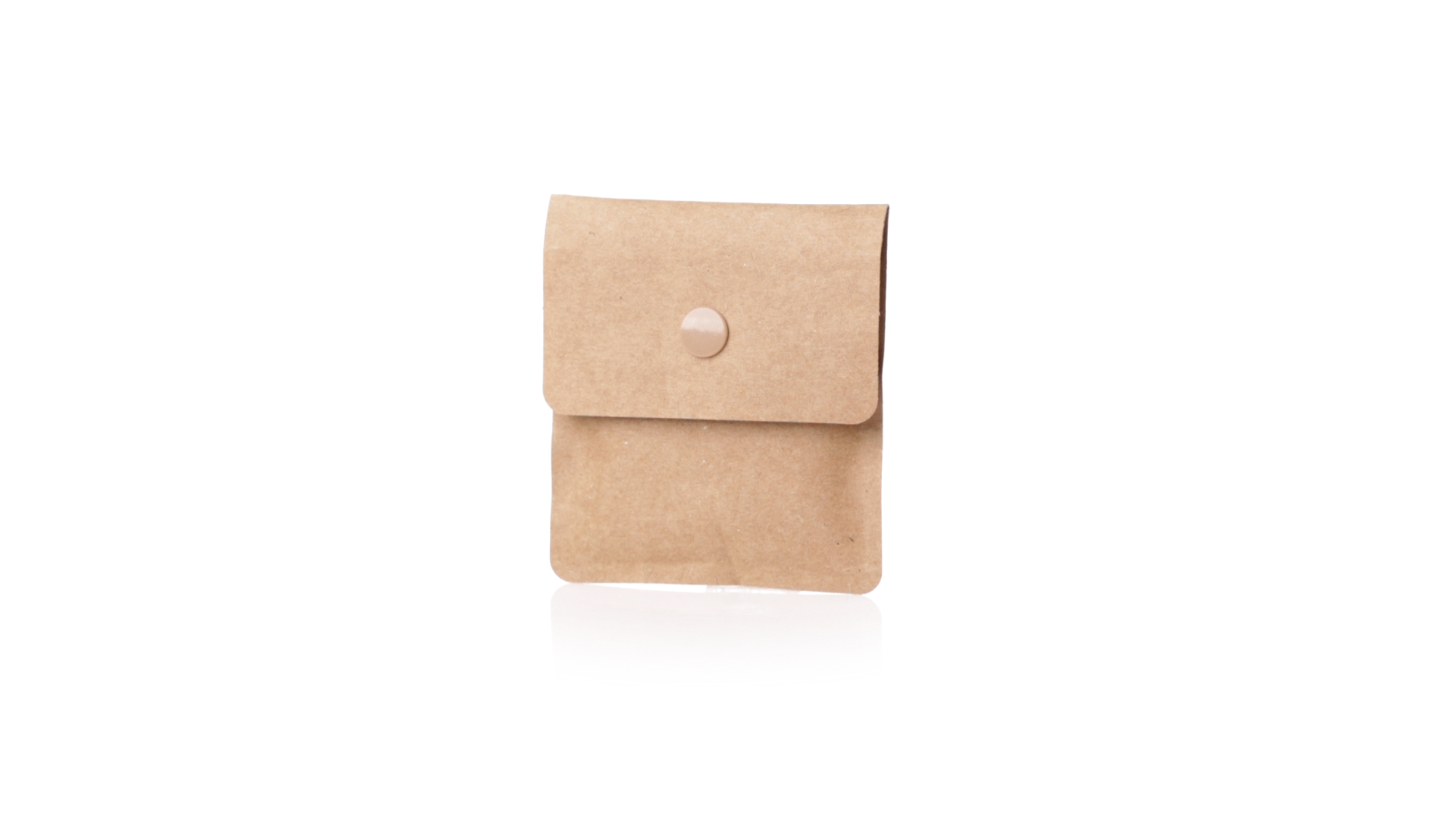 Linie Natur Taschenaschenbecher, aussen mit laminiertem Recyclingpapier und innen aus feuerfestem Aluminium. Klappe mit passendem Haken- und Ösenverschluss.