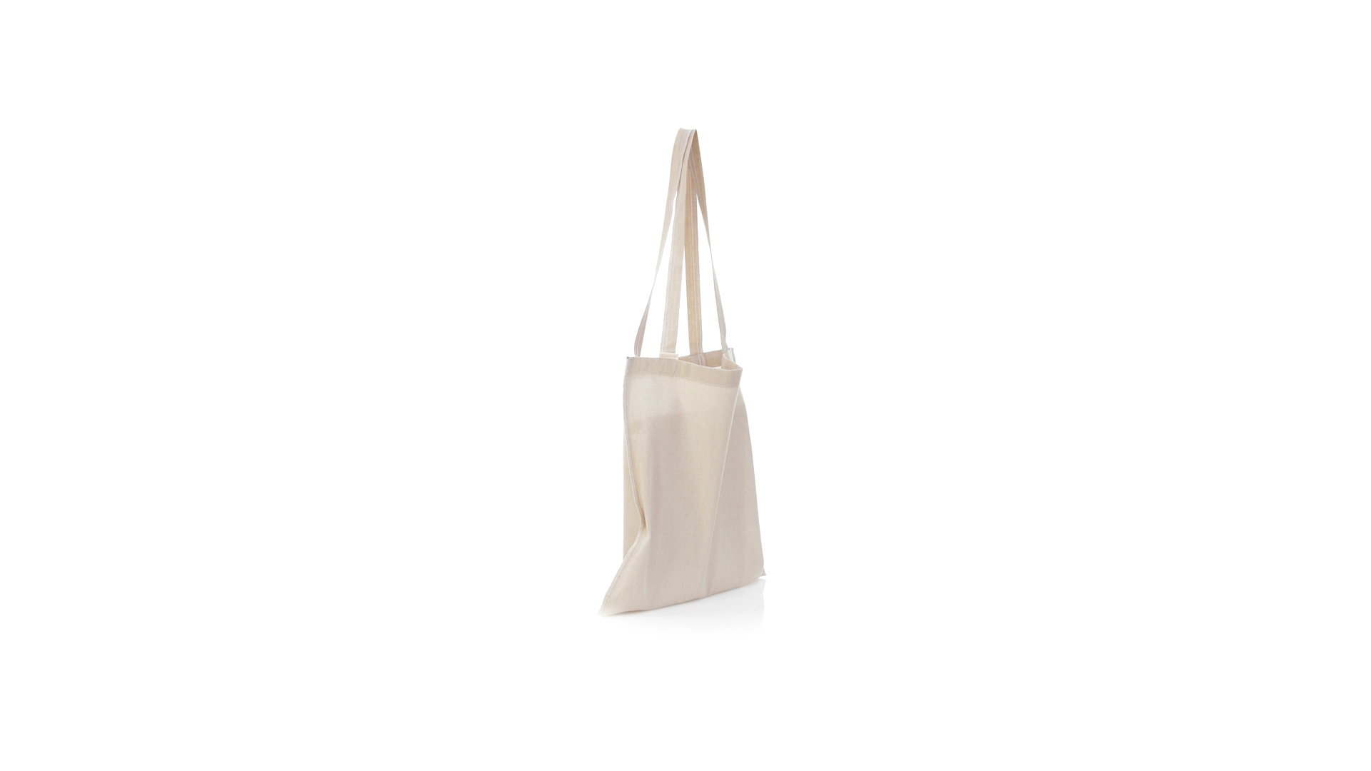 Tasche aus 100 % recycelter GRS-Baumwolle 140 g/m2, in Erdtönen gehalten. Äussere Nähte in Kontrastfarbe und passend zum unverwechselbaren Etikett. Lange Griffe von 70 cm und genähtes Finish. Widerstandsfähigkeit bis zu 9 kg. Mit GRS-Zertifizierung (Global Recycled Standard), die die recycelte Herkunft des für die Herstellung des Produkts verwendeten Materials garantiert.