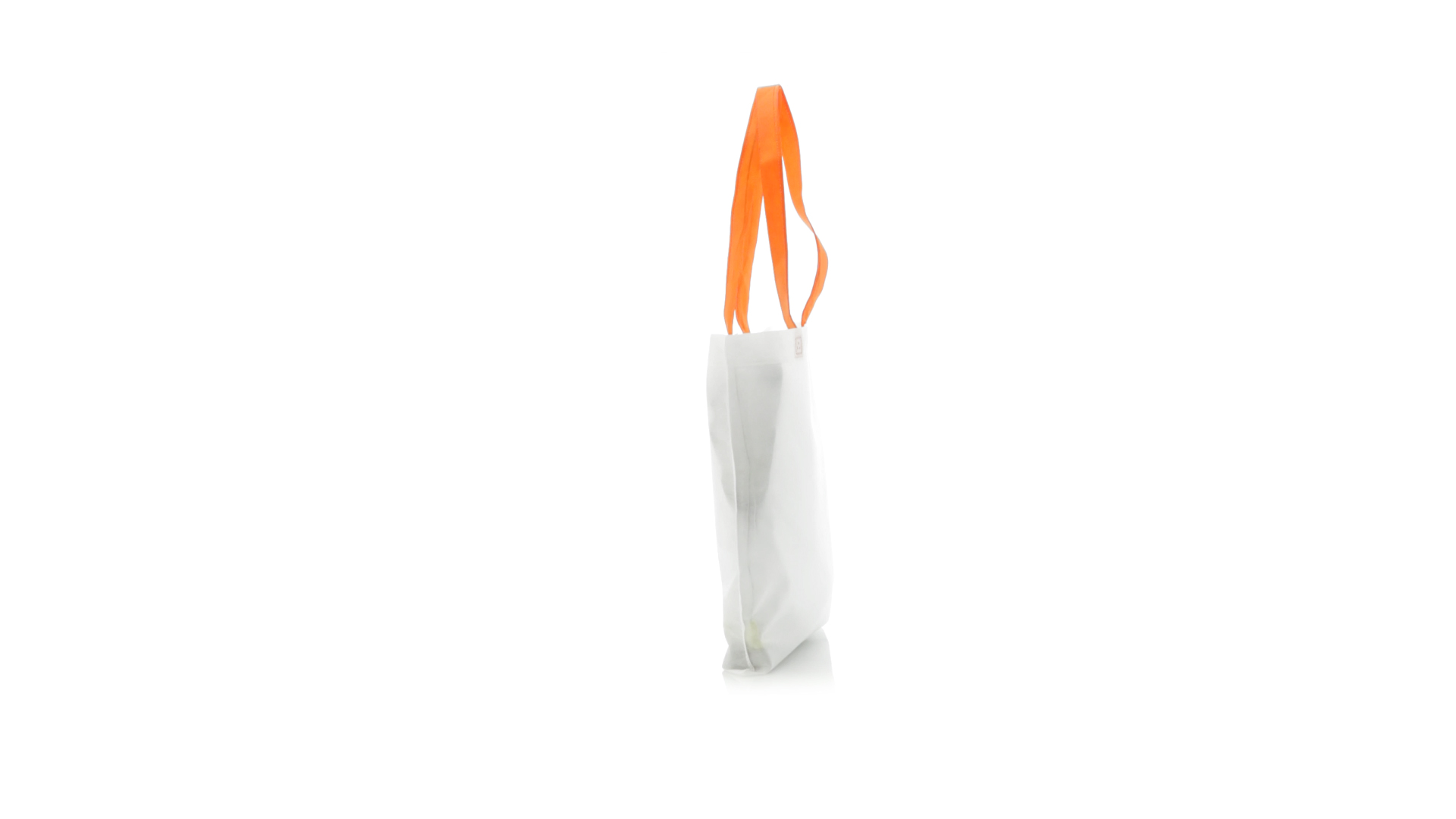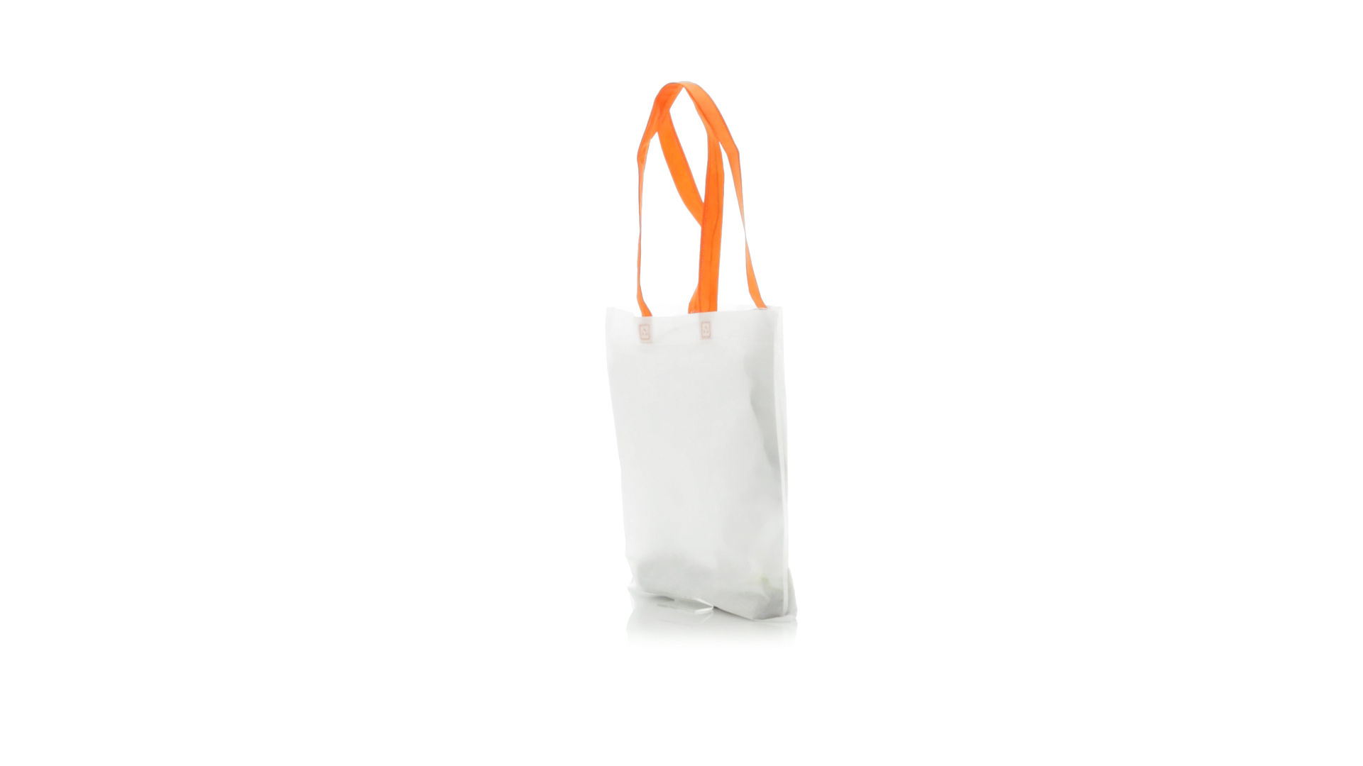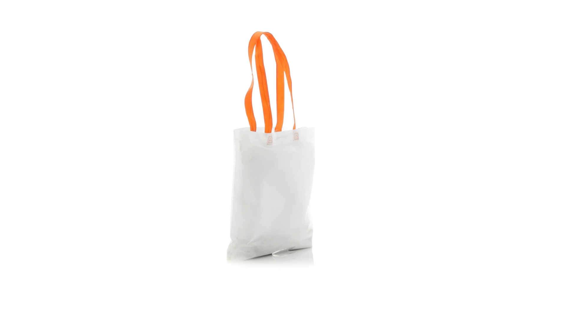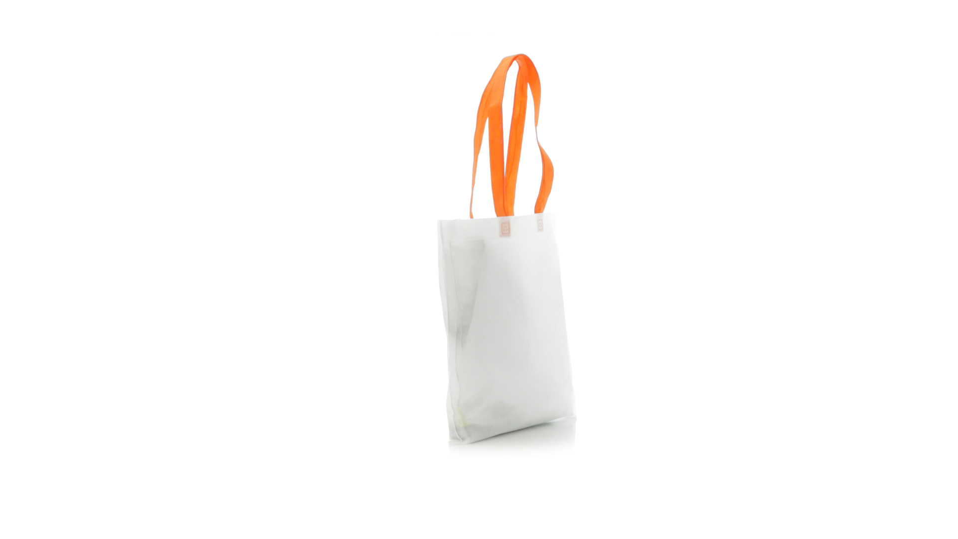 Non-Woven-Tasche aus Faservlies (80 g/m2) in Weiss, mit Henkeln in vielen verschiedenen Farben. Mit hitzeversiegeltem Finish und langen Henkeln mit Recycling-Logo. Belastbar mit bis zu 8 kg.