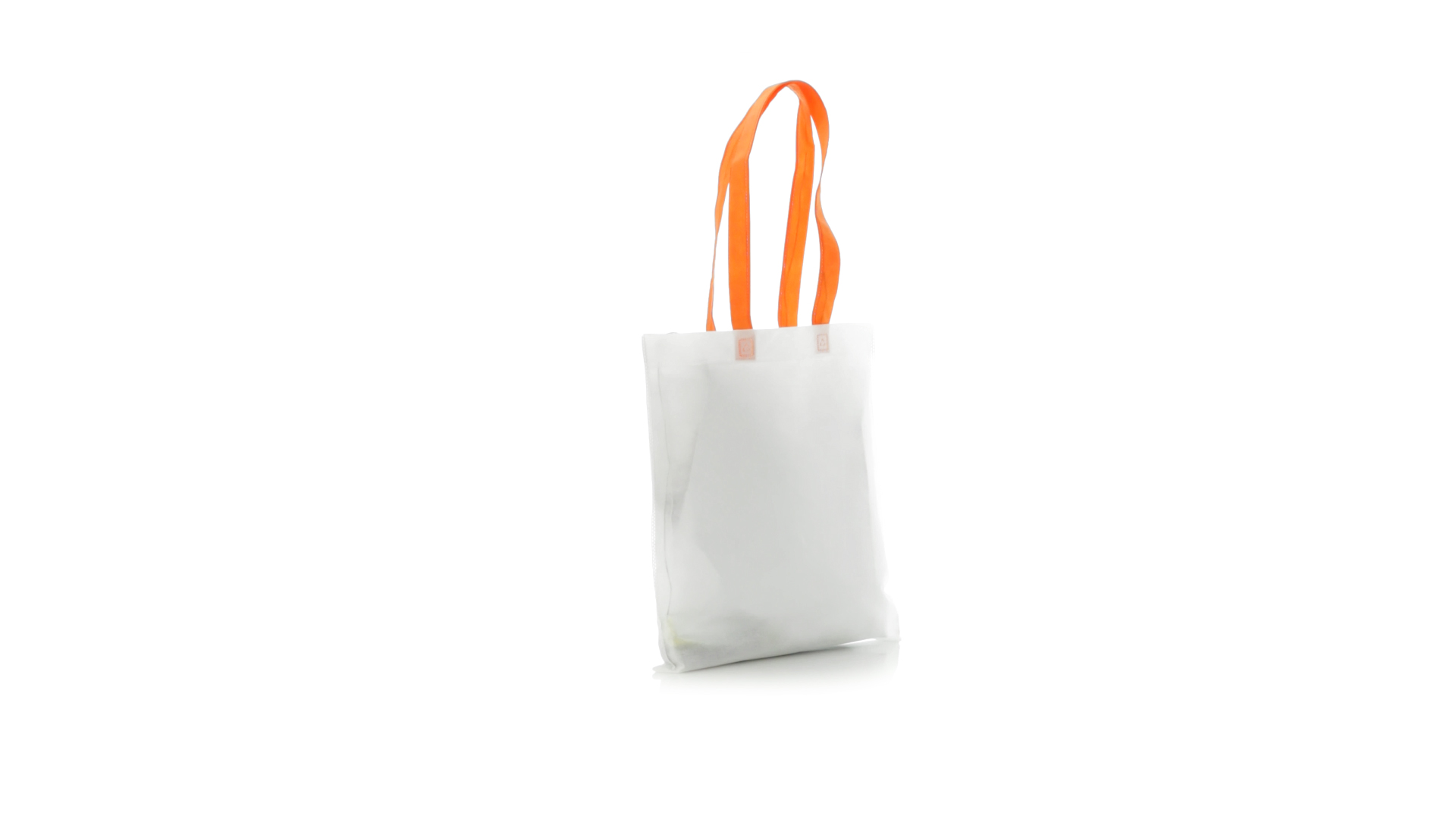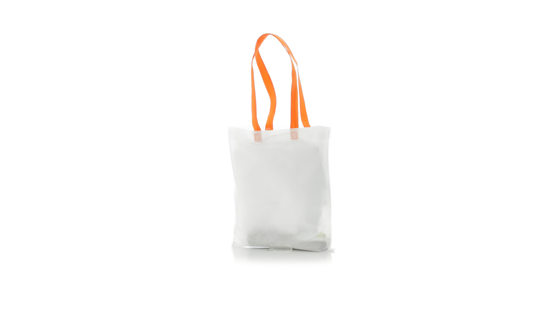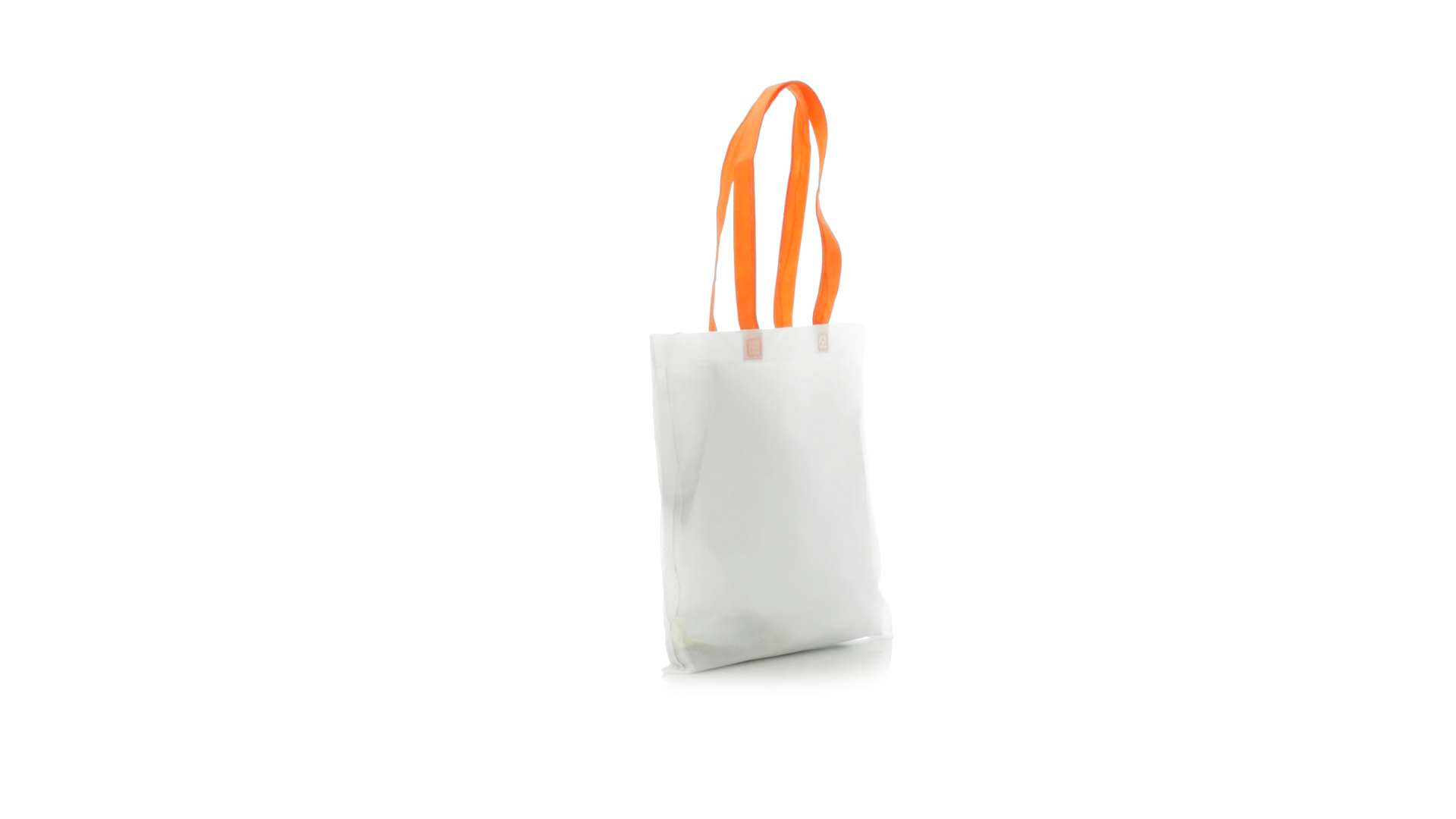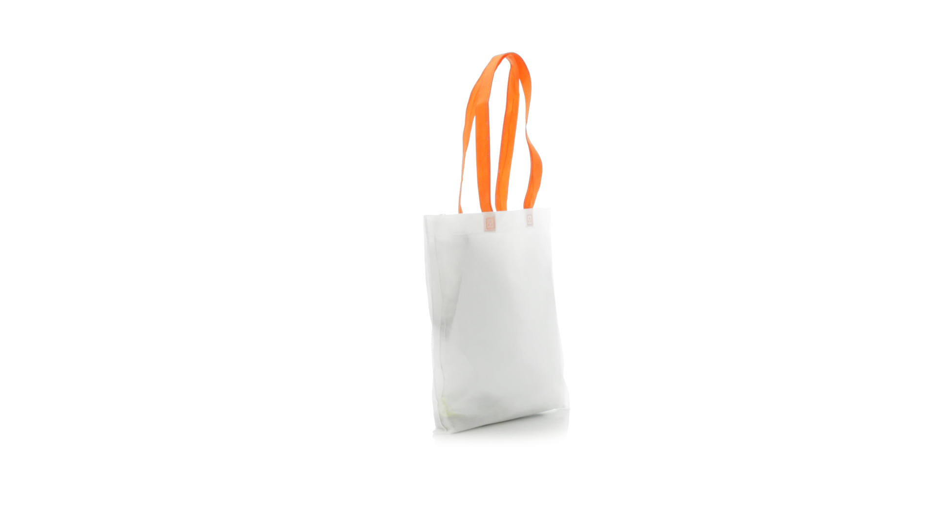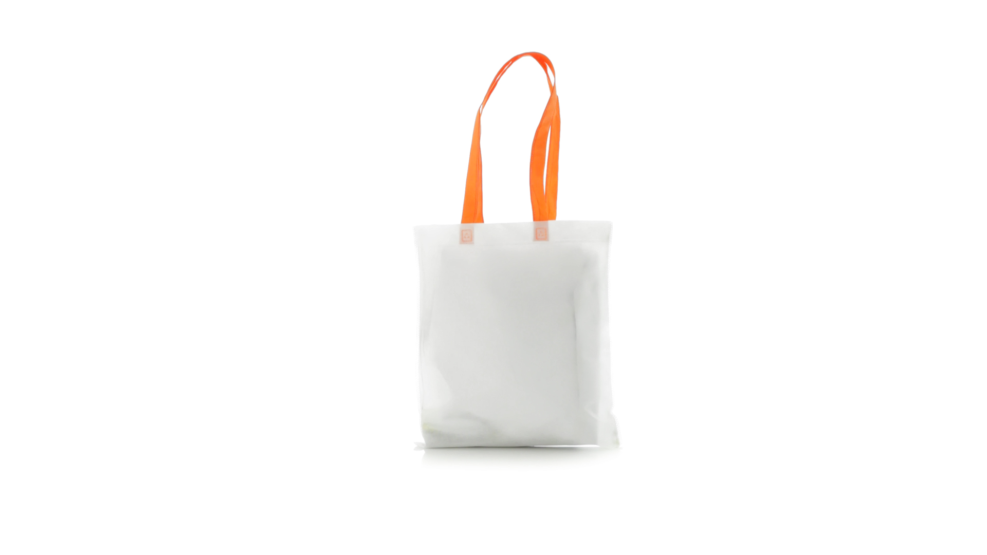 Non-Woven-Tasche aus Faservlies (80 g/m2) in Weiss, mit Henkeln in vielen verschiedenen Farben. Mit hitzeversiegeltem Finish und langen Henkeln mit Recycling-Logo. Belastbar mit bis zu 8 kg.