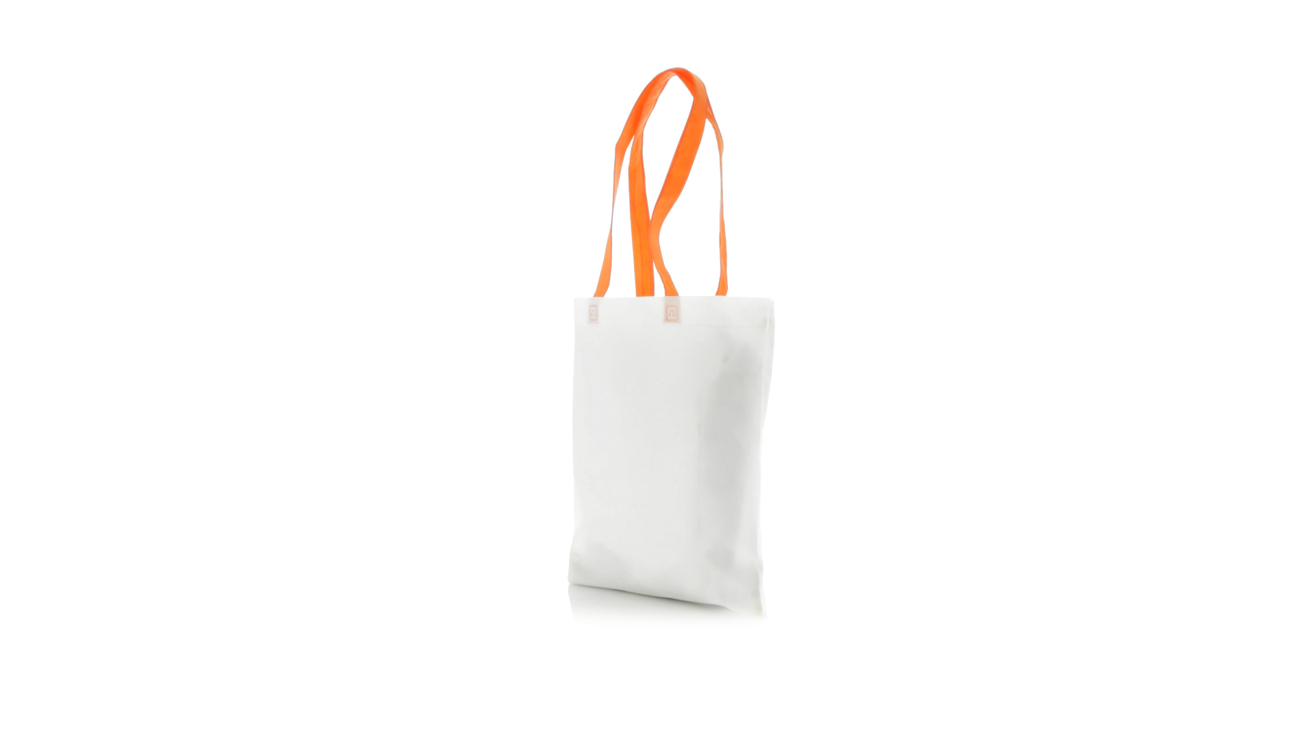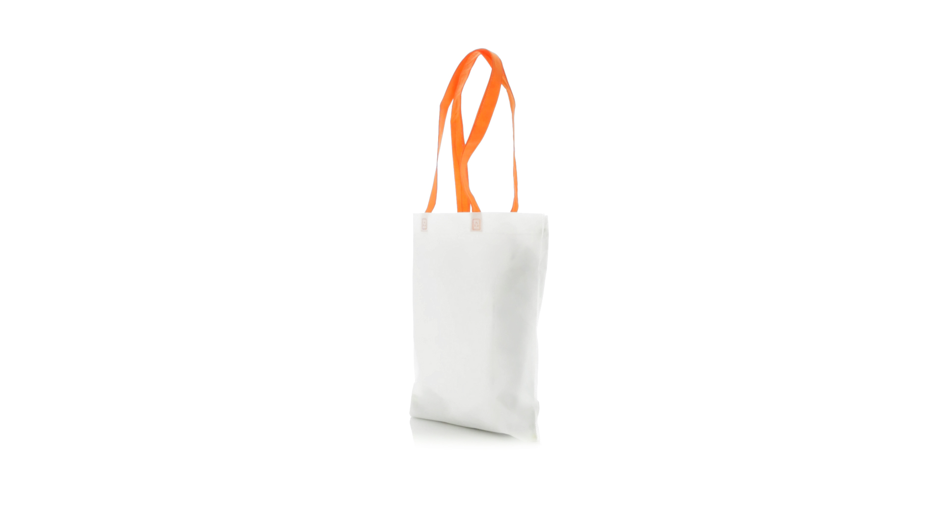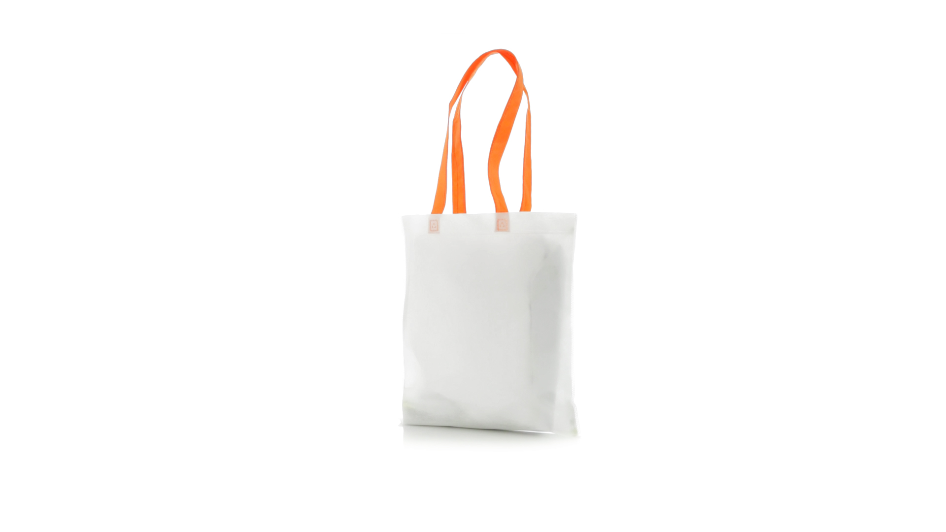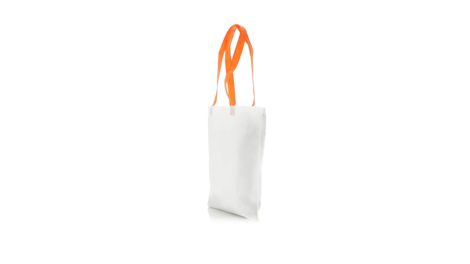 Non-Woven-Tasche aus Faservlies (80 g/m2) in Weiss, mit Henkeln in vielen verschiedenen Farben. Mit hitzeversiegeltem Finish und langen Henkeln mit Recycling-Logo. Belastbar mit bis zu 8 kg.