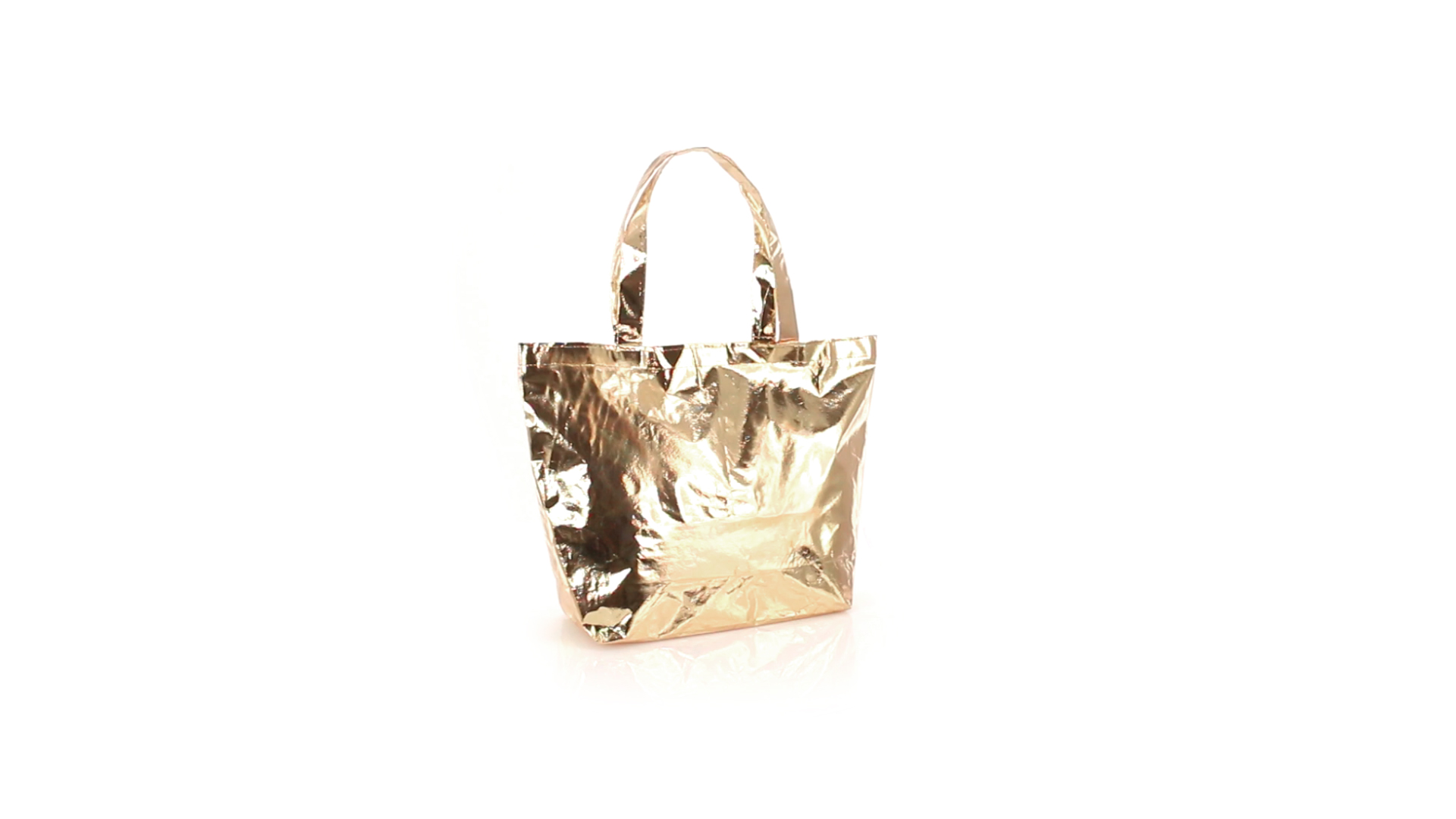Non-Woven-Tasche aus laminiertem Faservlies (110 g/m2) in Metallic-Ausführung und einer Vielzahl von lebendigen Farben. Mit 55 cm langen, verstärkten Griffen, Zwickel und Steppnähten. Belastbar mit bis zu 9 kg.