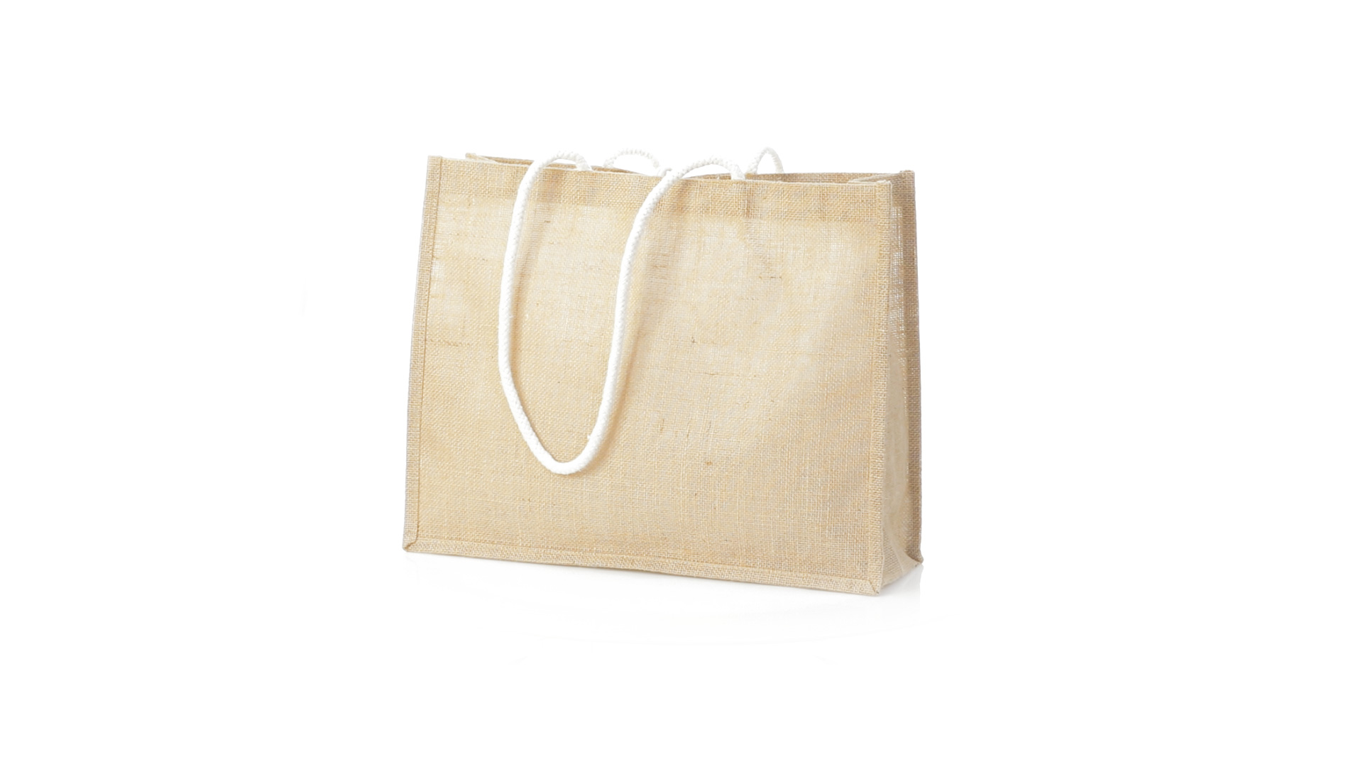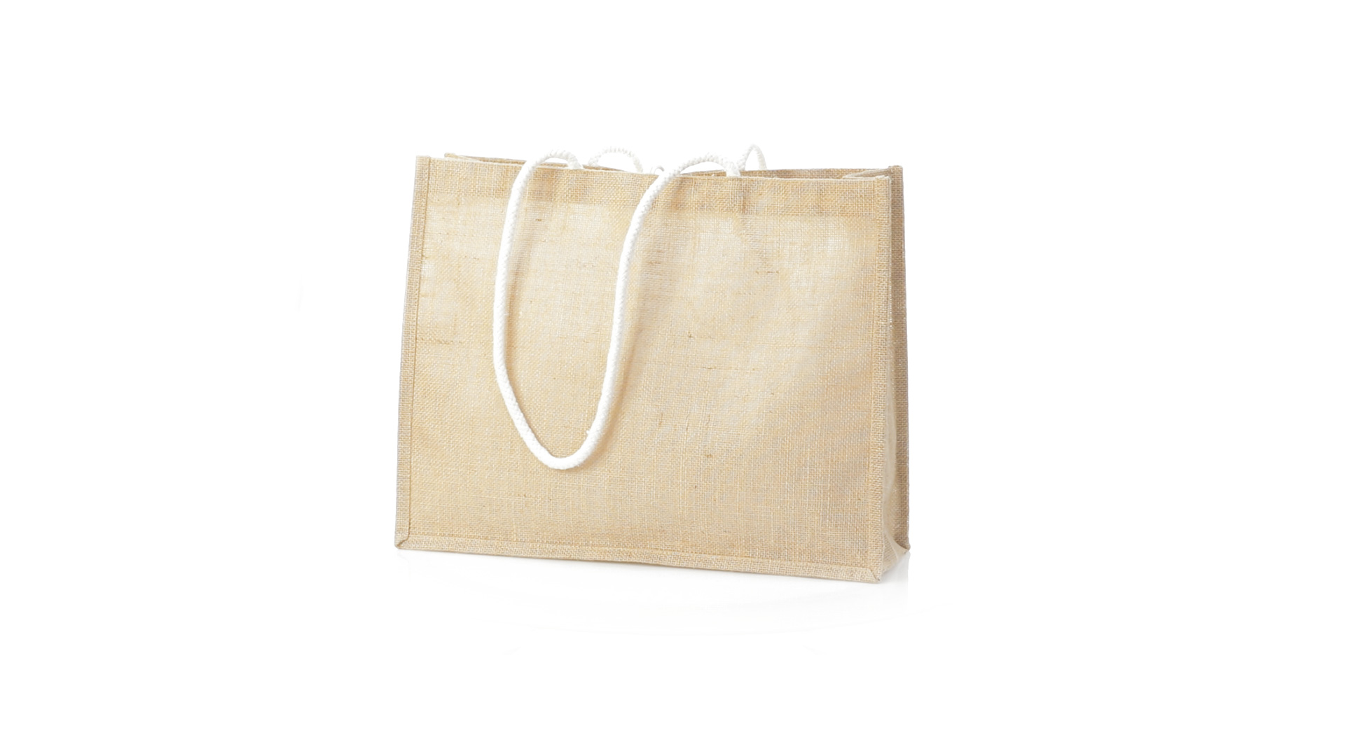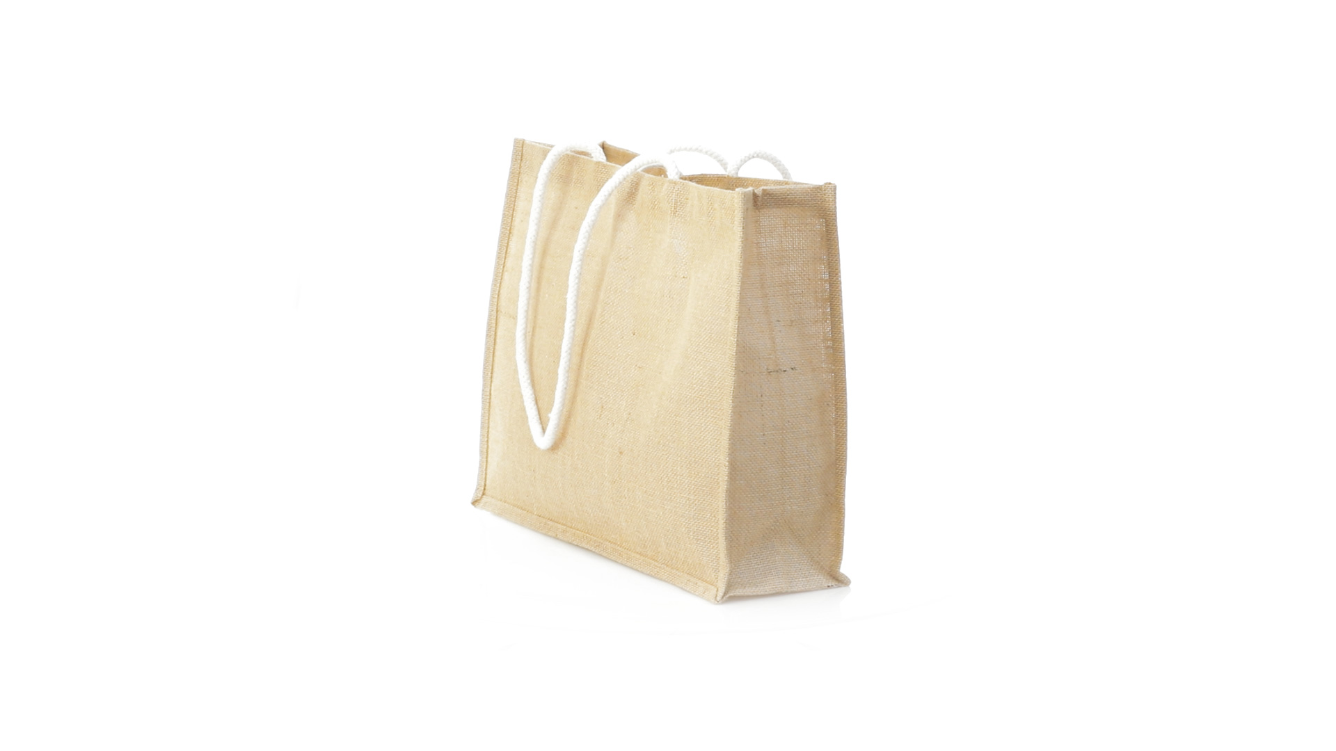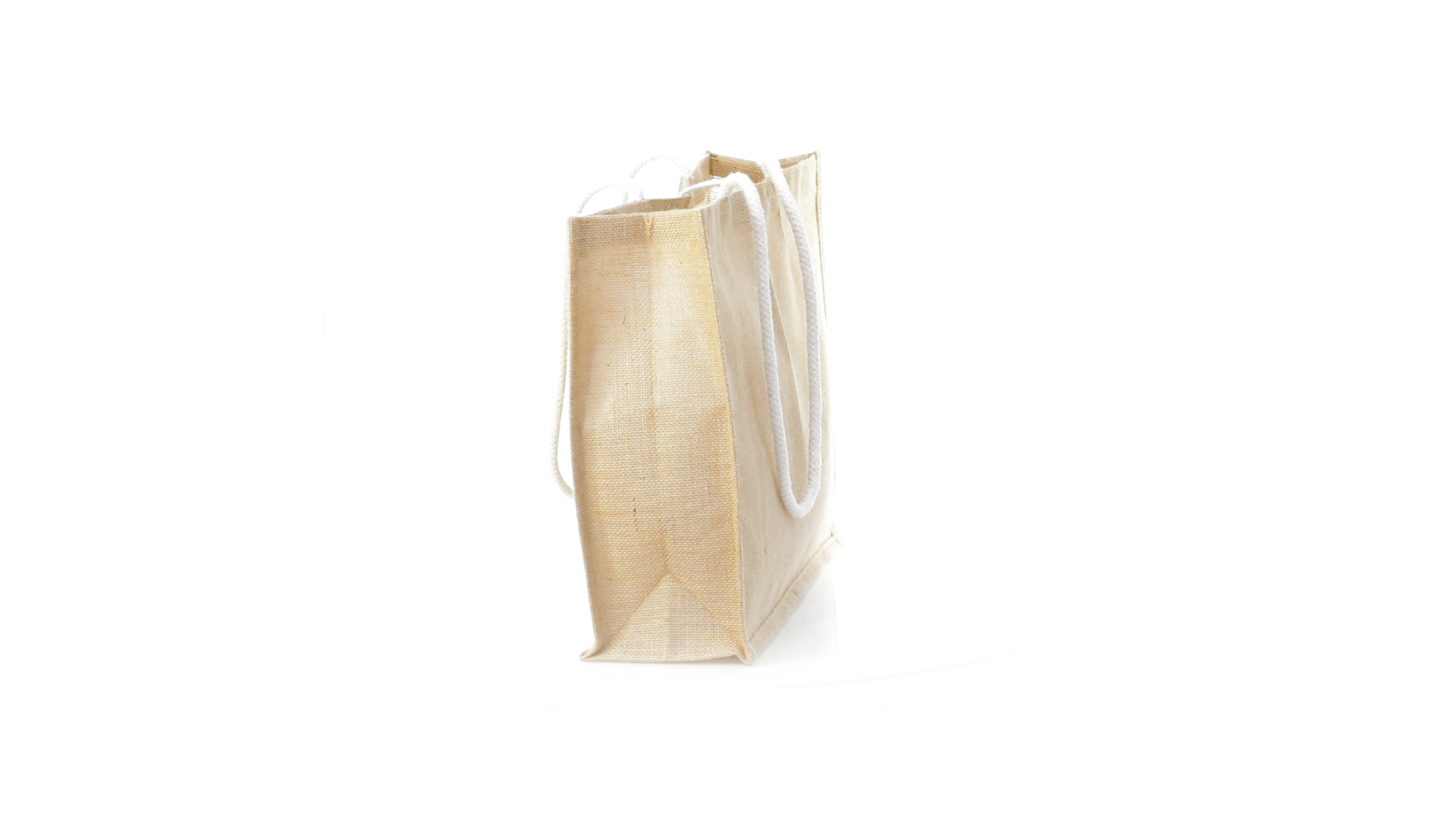 Nature Line Beutel aus widerstandsfähiger laminierter Jute (320g/m2) und originellem Knopfverschluss. Mit 70 cm langen Baumwollgriffen in Naturfarbe und verstärkt. Genähtes Finish und Widerstand bis zu 10 kg Gewicht.