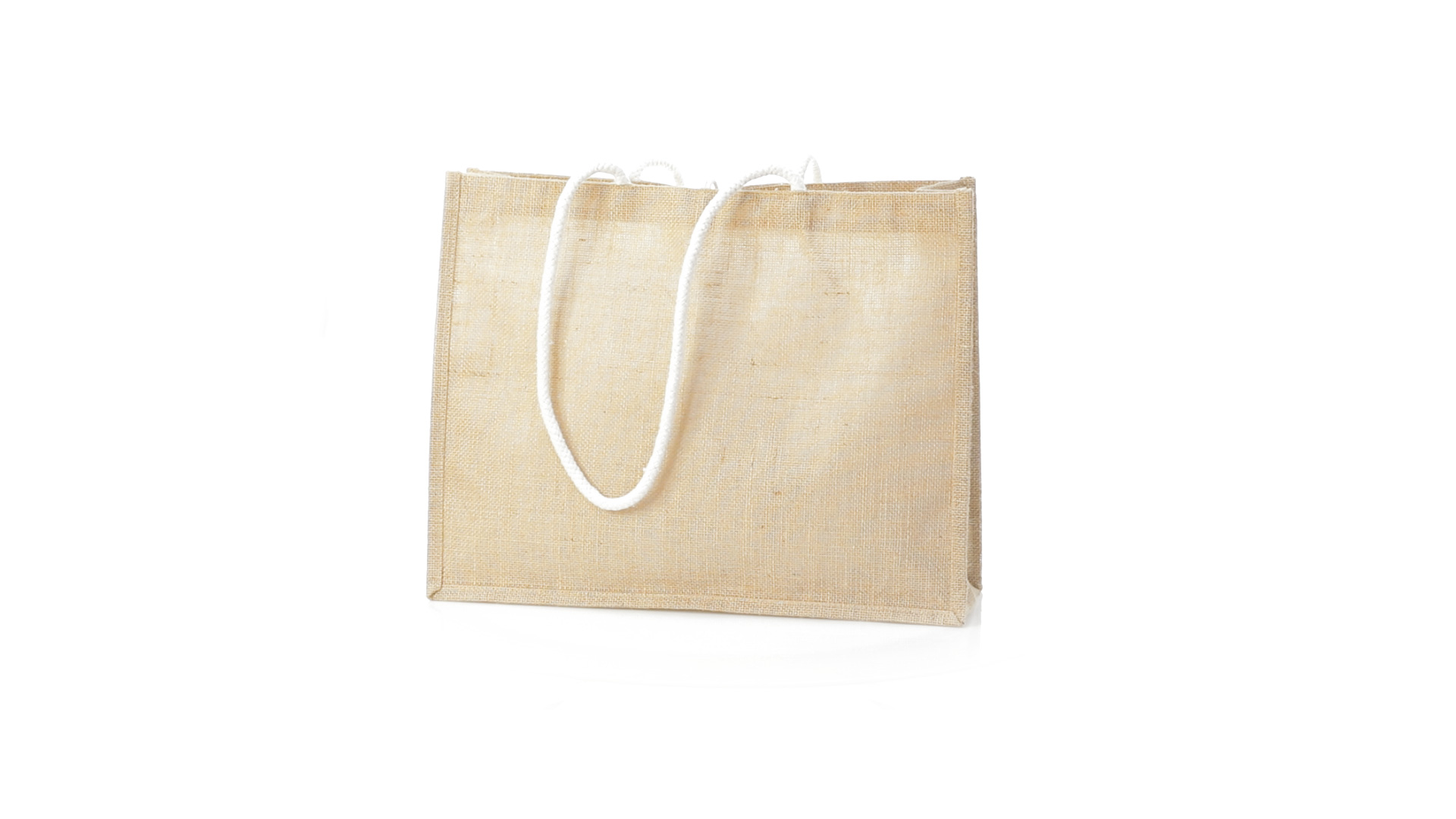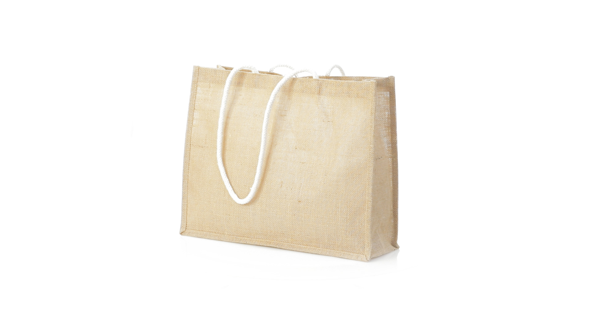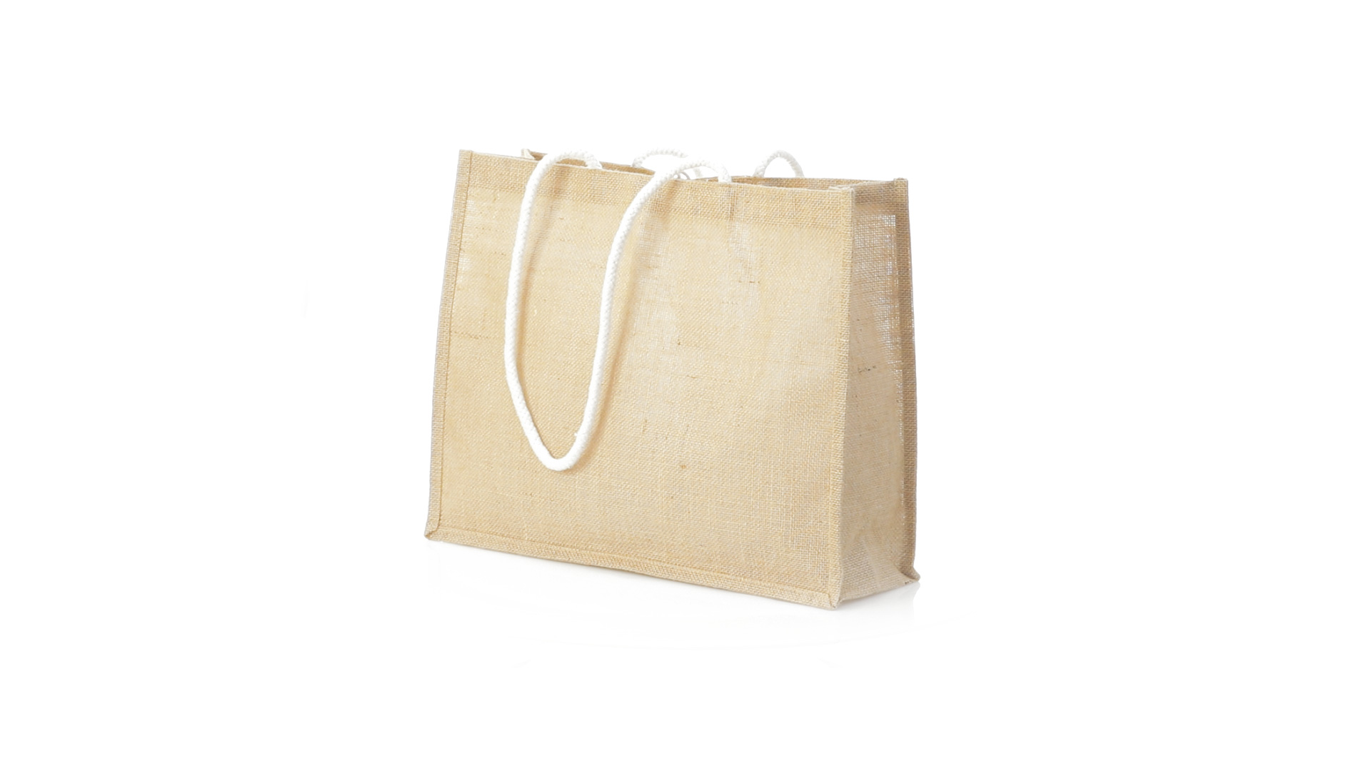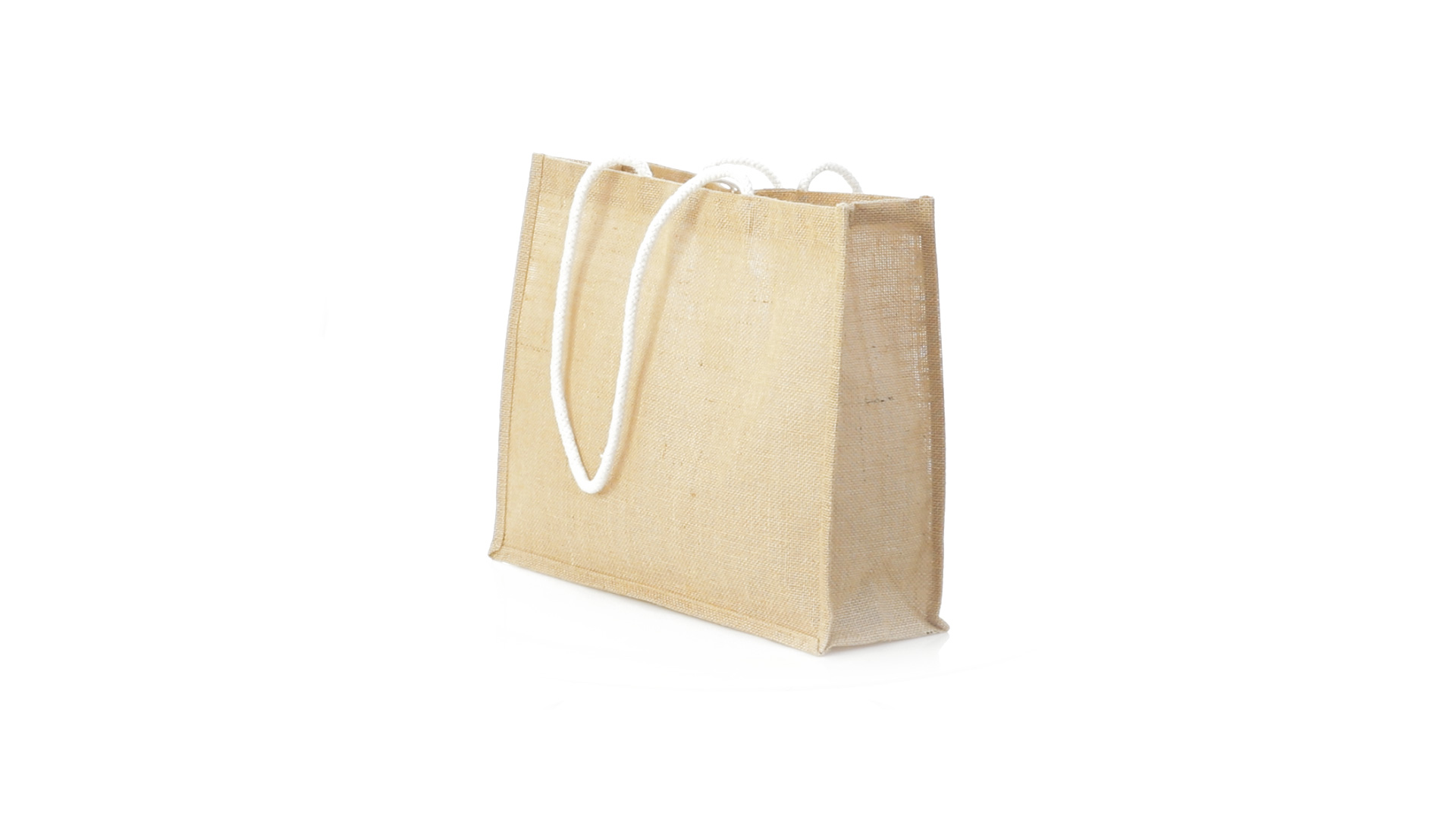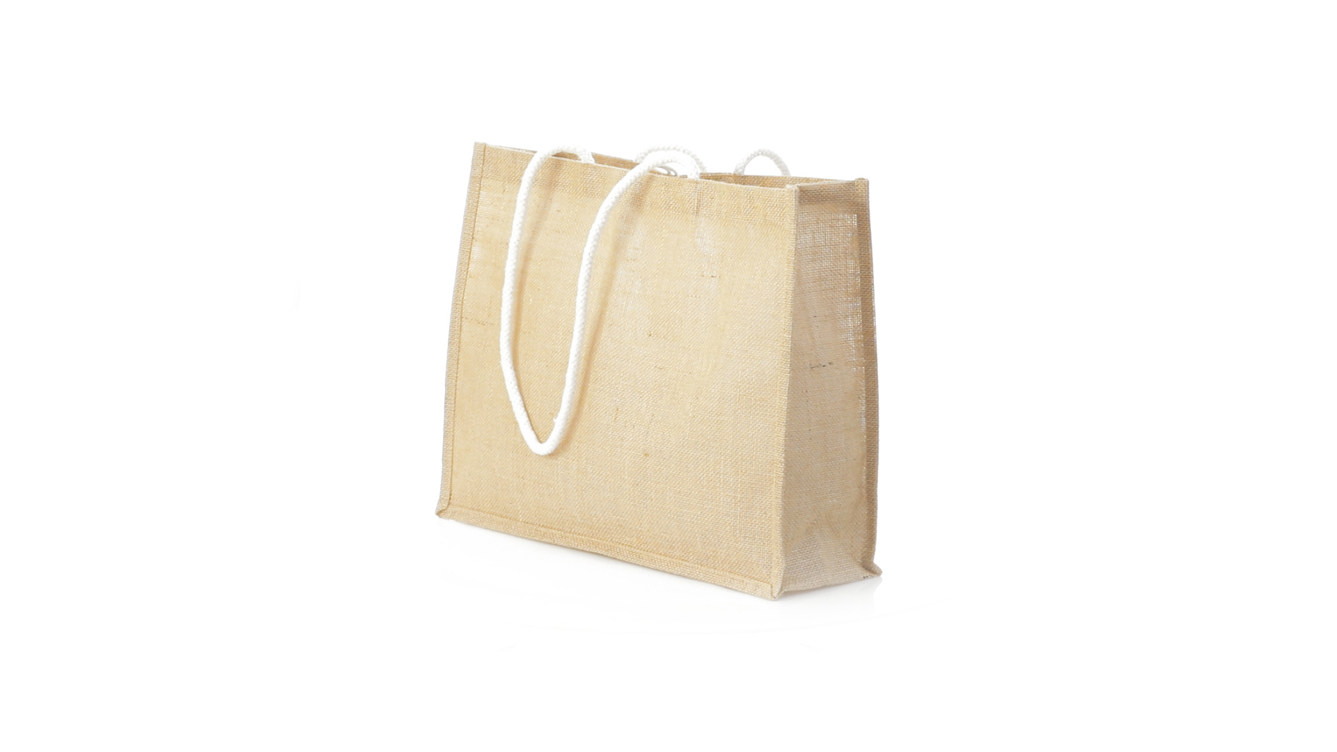 Nature Line Beutel aus widerstandsfähiger laminierter Jute (320g/m2) und originellem Knopfverschluss. Mit 70 cm langen Baumwollgriffen in Naturfarbe und verstärkt. Genähtes Finish und Widerstand bis zu 10 kg Gewicht.