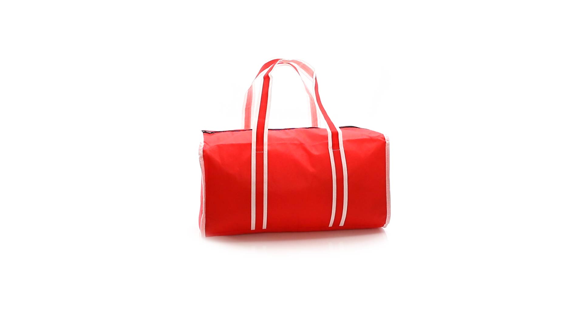 Vielseitig verwendbare Non-Woven-Tasche aus Faservlies mit coolem Design in lebendigen Farben mit weisser Paspel. Bietet Hauptfach mit Reissverschluss, Fronttasche und verstärkte Tragegriffe mit Paspel.