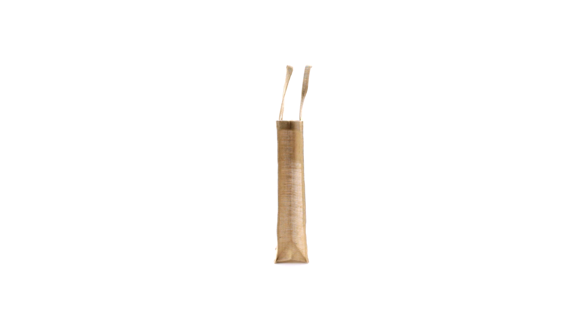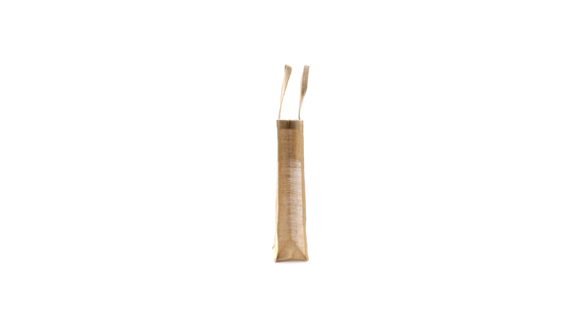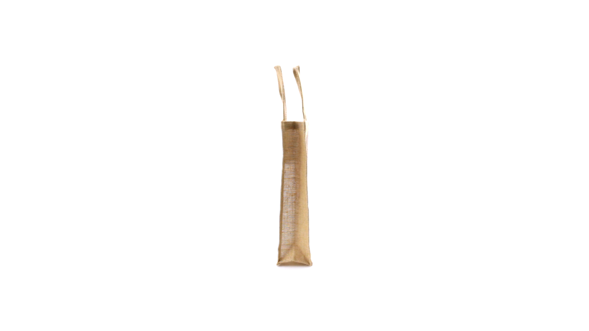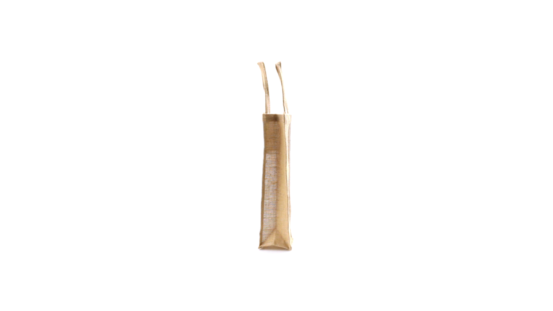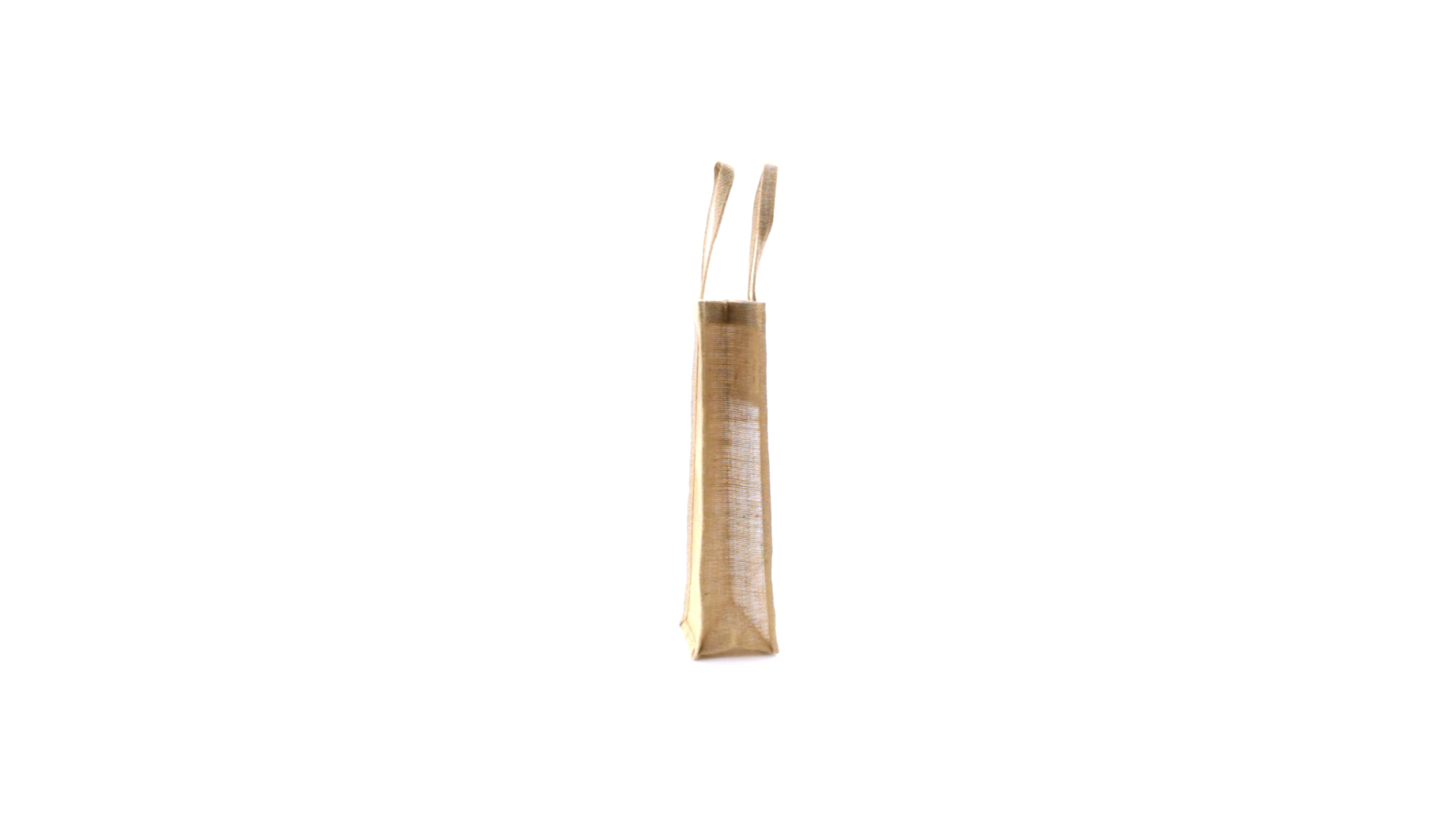 Robuster, laminierter Jutebeutel für 750 ml Weinflasche. Mit transparentem Fenster sowie verstärkten Rändern und Griffen.