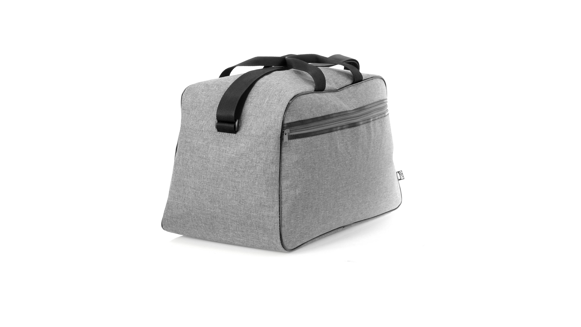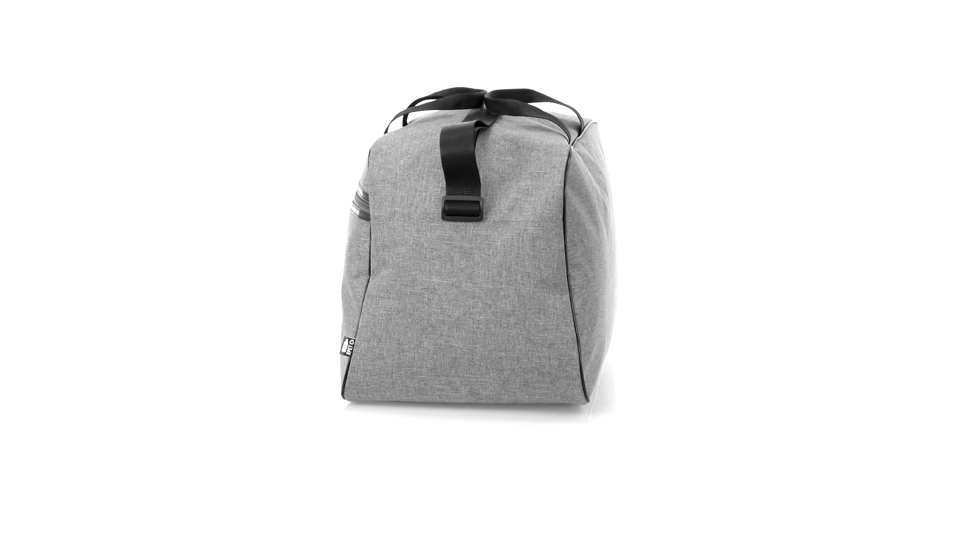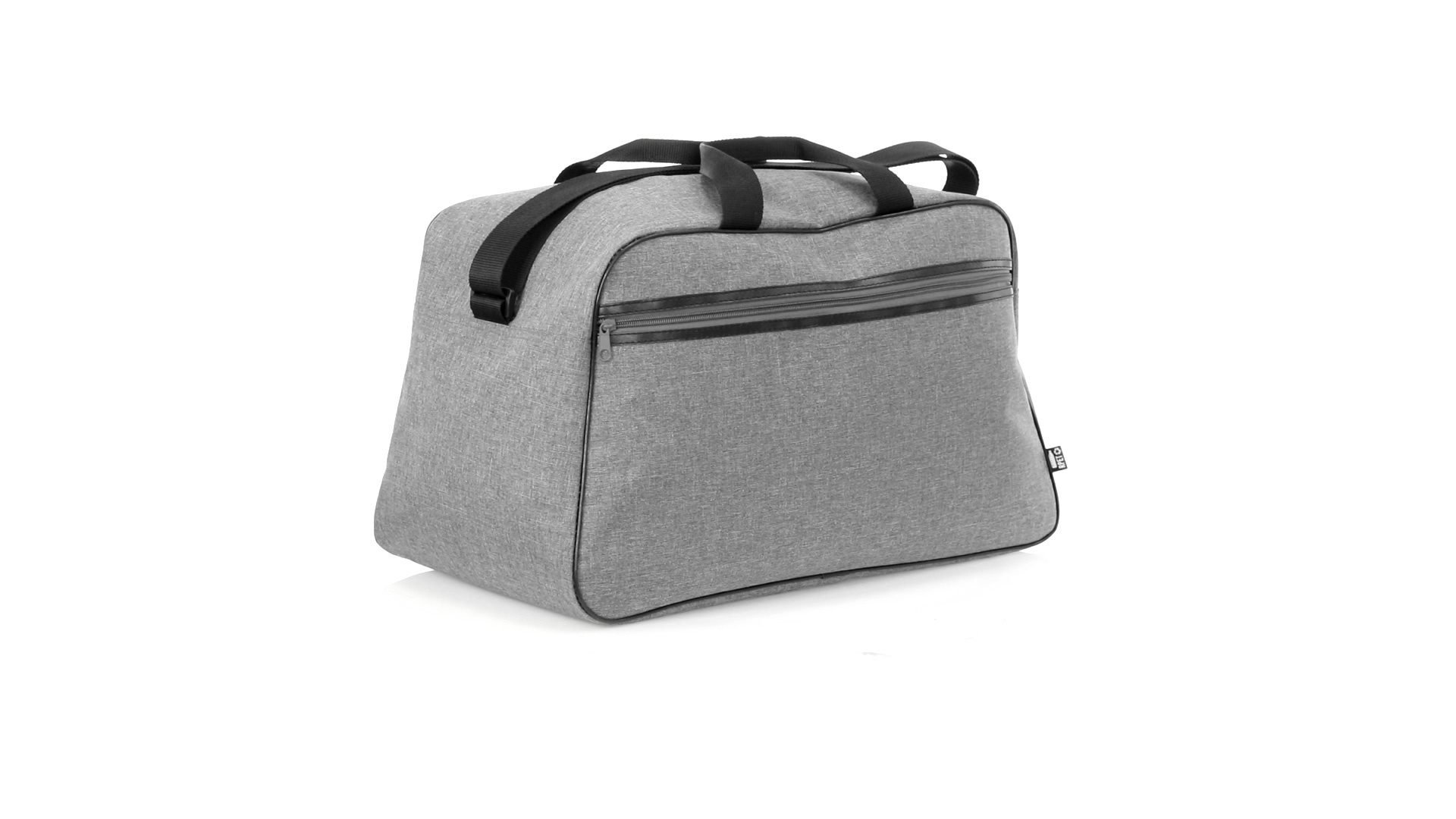 Mehrzwecktasche der Nature Line aus widerstandsfähigem 600D RPET mit Melange-Effekt. Hergestellt aus recyceltem Kunststoff, um die Wiederverwendung von Kunststoffabfällen zu fördern und einen Beitrag zur Nachhaltigkeit des Planeten zu leisten. Urbanes Design mit schwarzen Details, enthält 2 Reissverschlusstaschen mit Metallgriffen und gefüttertem Innenraum, verstärkt in PVC. Verstärkte Tragegriffe und verstellbarer Schultergurt, mit RPET-Plakette auf dem Aussenetikett.