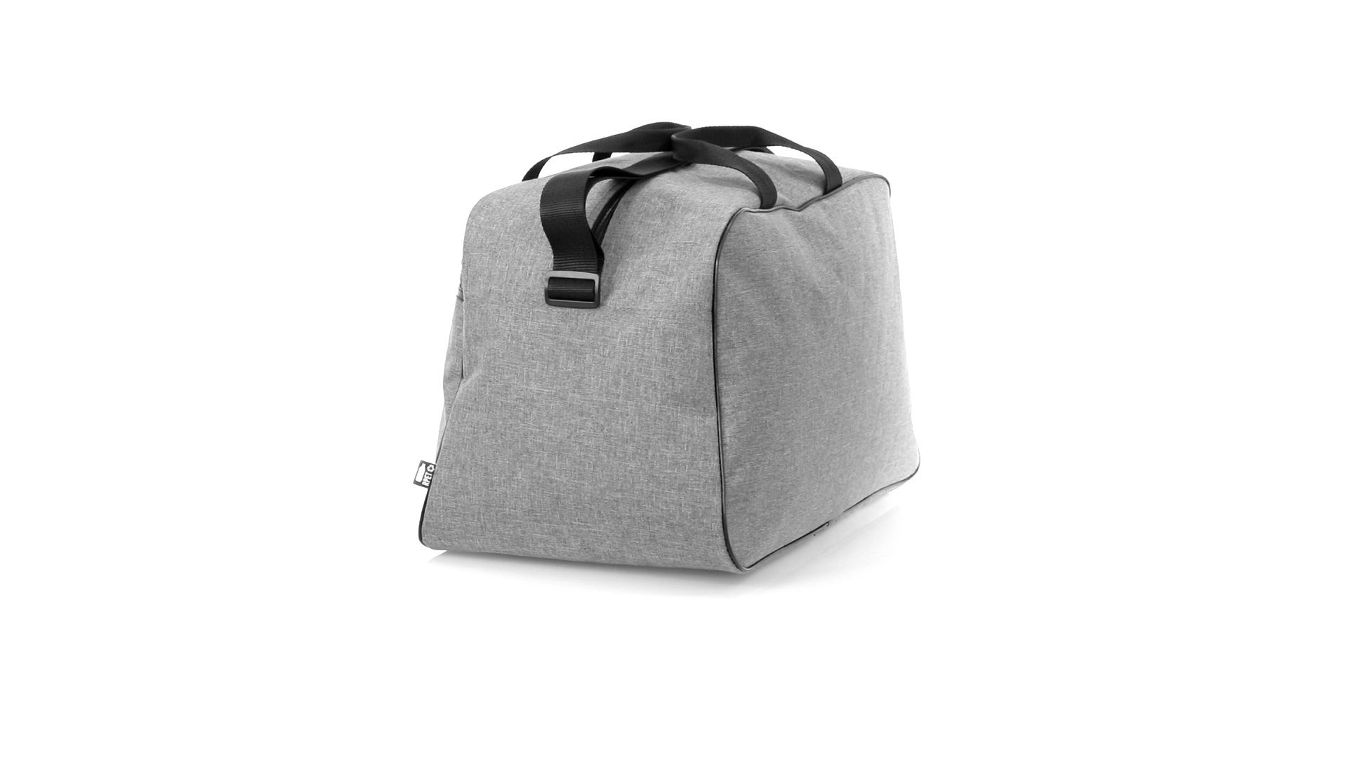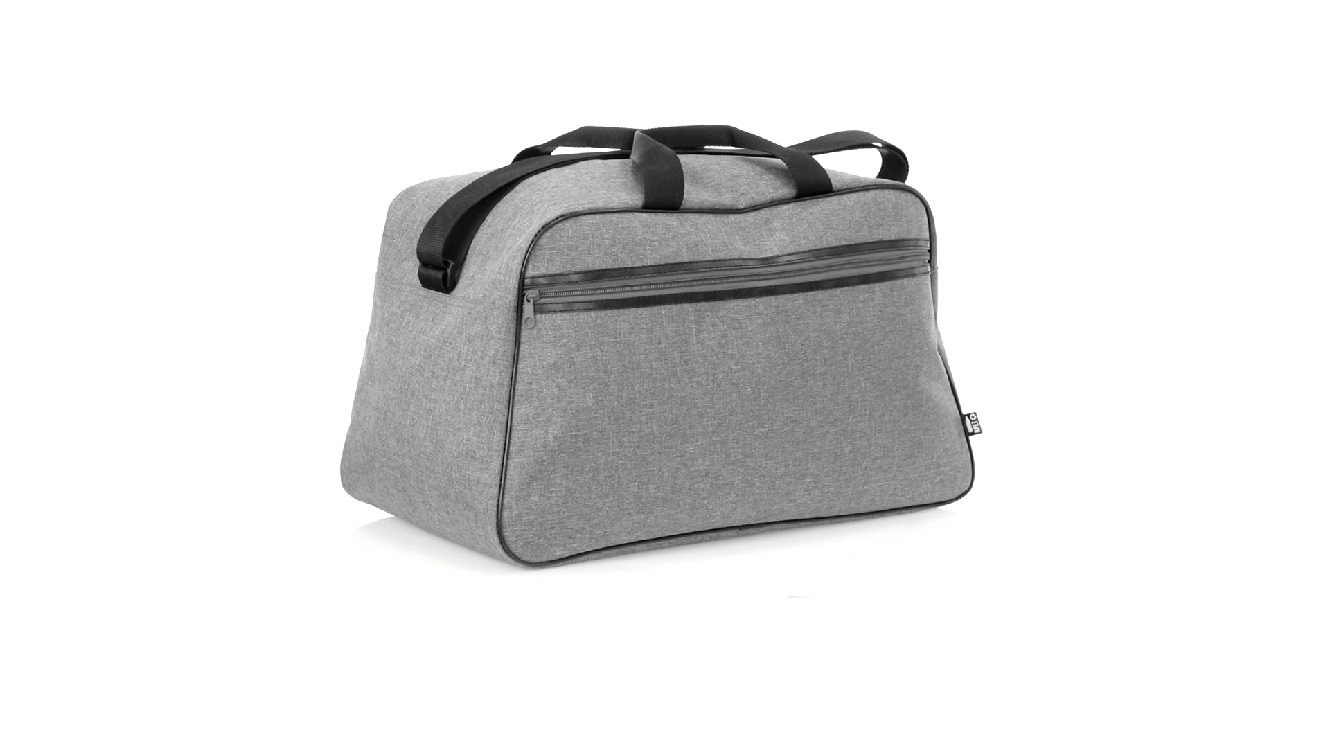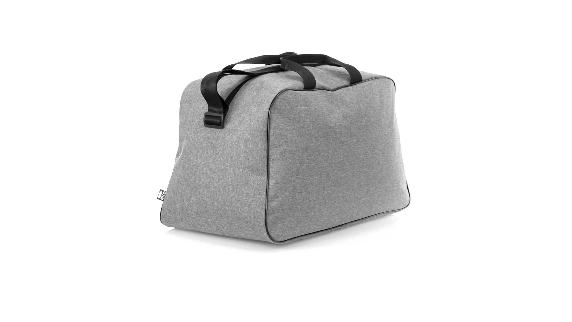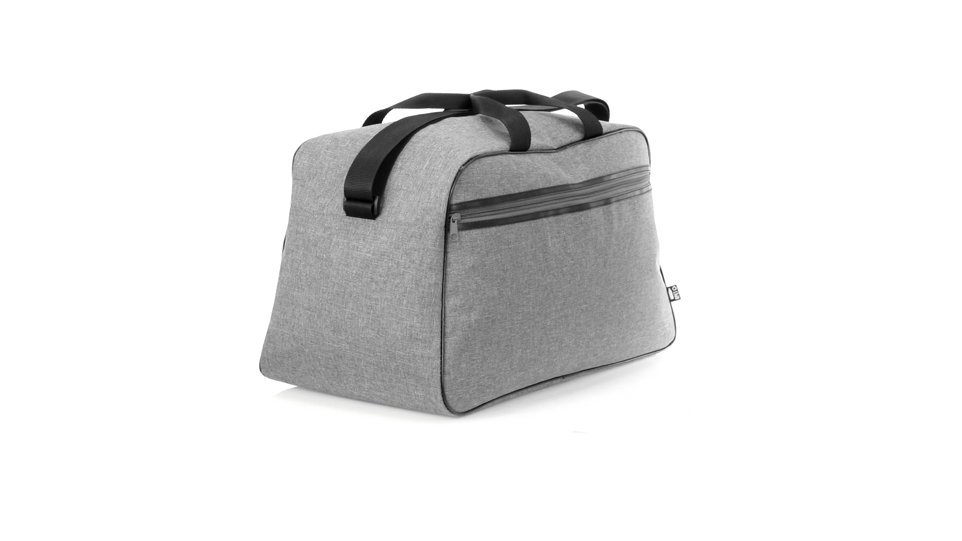 Mehrzwecktasche der Nature Line aus widerstandsfähigem 600D RPET mit Melange-Effekt. Hergestellt aus recyceltem Kunststoff, um die Wiederverwendung von Kunststoffabfällen zu fördern und einen Beitrag zur Nachhaltigkeit des Planeten zu leisten. Urbanes Design mit schwarzen Details, enthält 2 Reissverschlusstaschen mit Metallgriffen und gefüttertem Innenraum, verstärkt in PVC. Verstärkte Tragegriffe und verstellbarer Schultergurt, mit RPET-Plakette auf dem Aussenetikett.