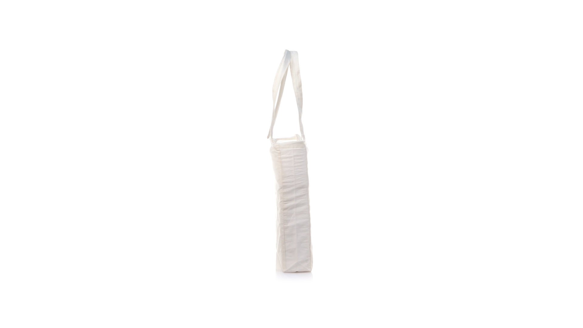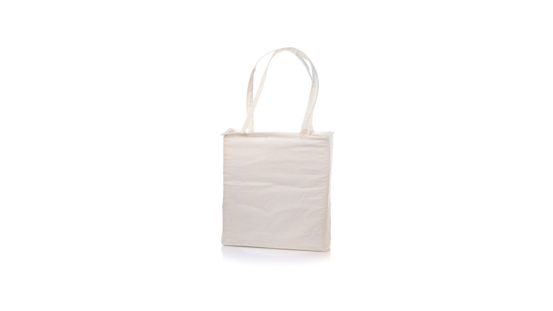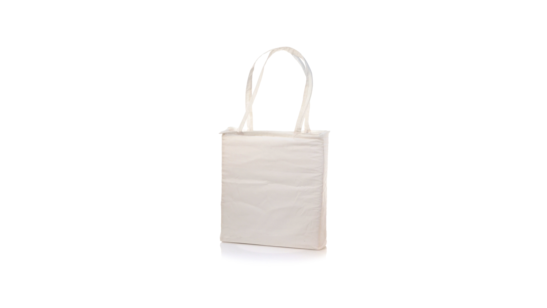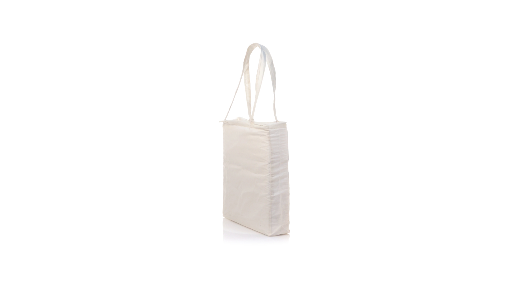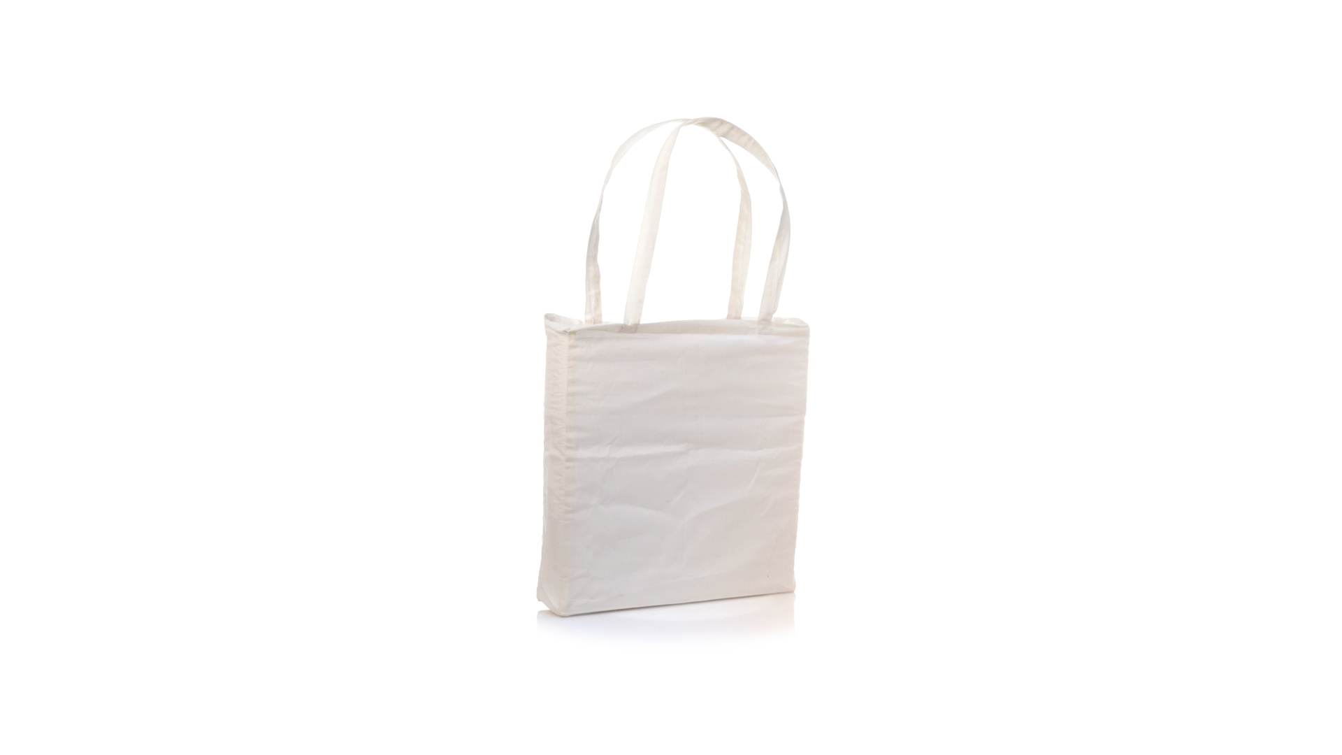 Tasche aus Baumwolle in Naturfarbe. Mit 70 cm langen, verstärkten Henkeln, Zwickel und Steppnähten. Belastbar mit bis zu 7 kg.