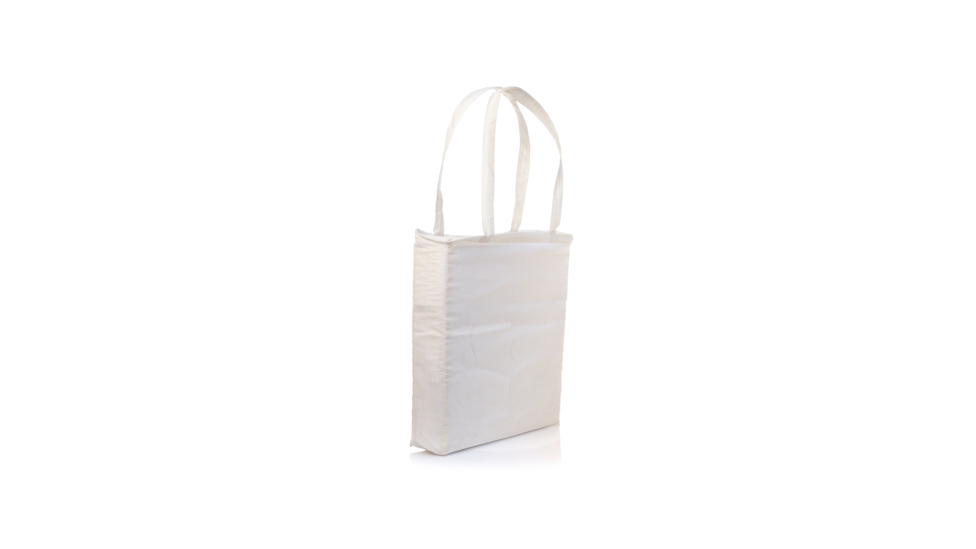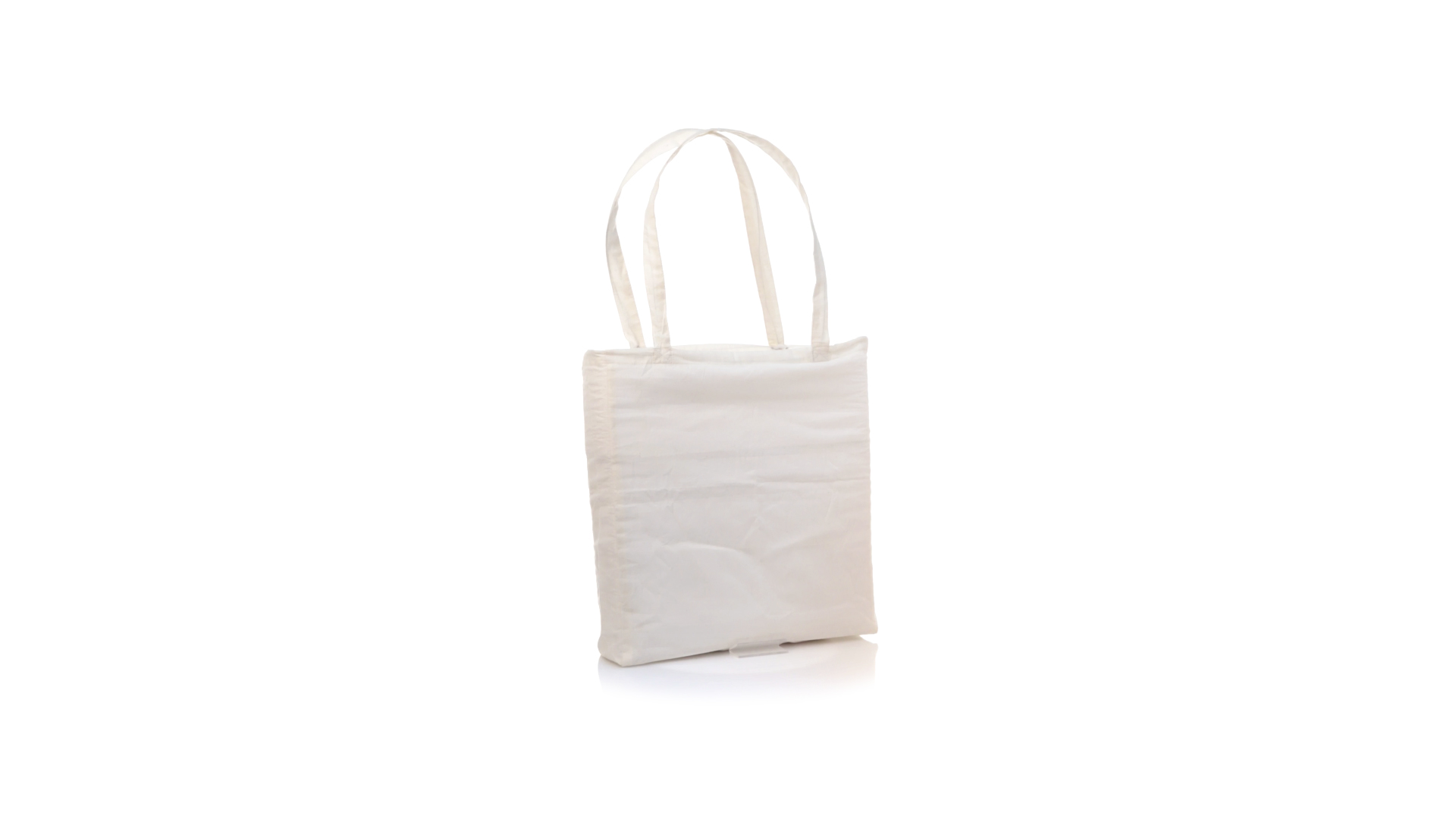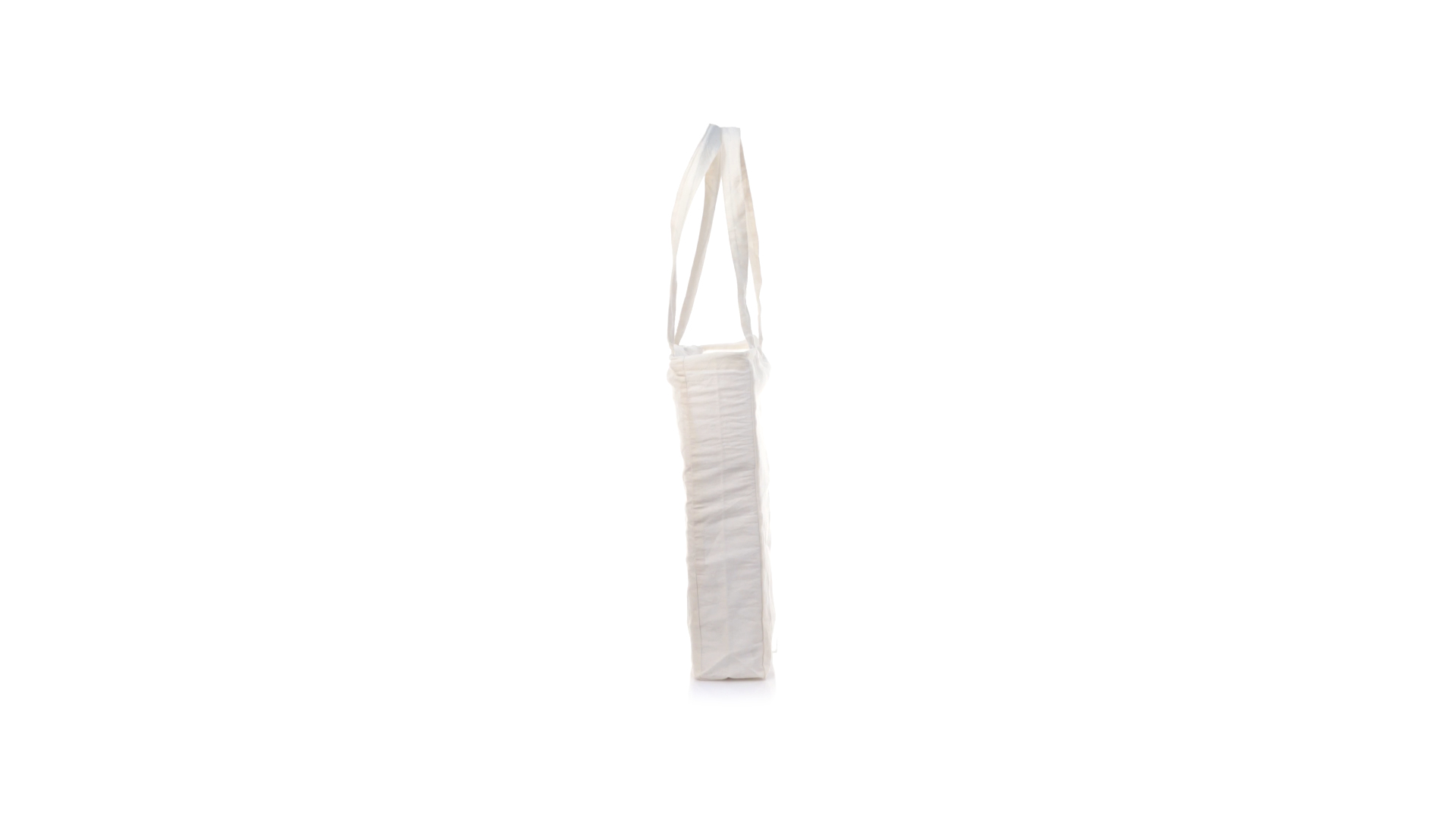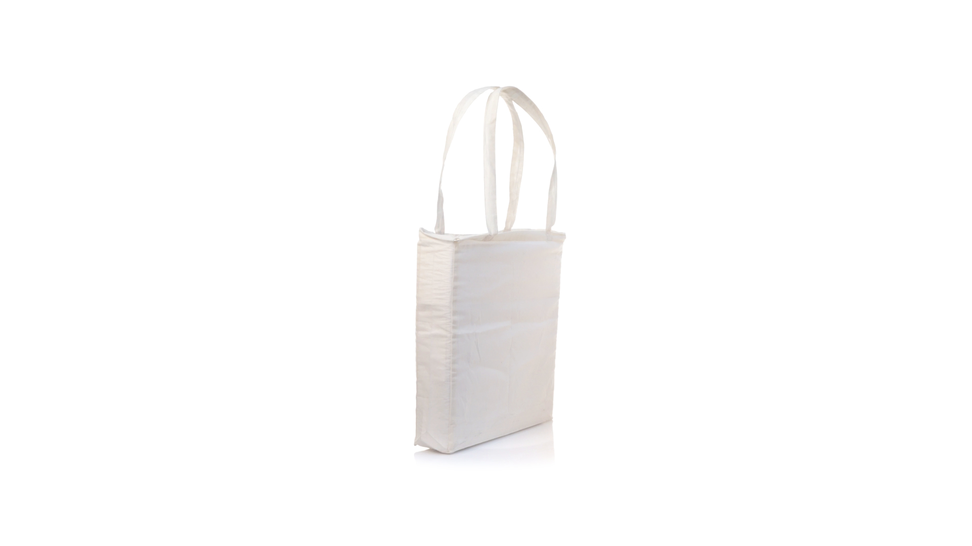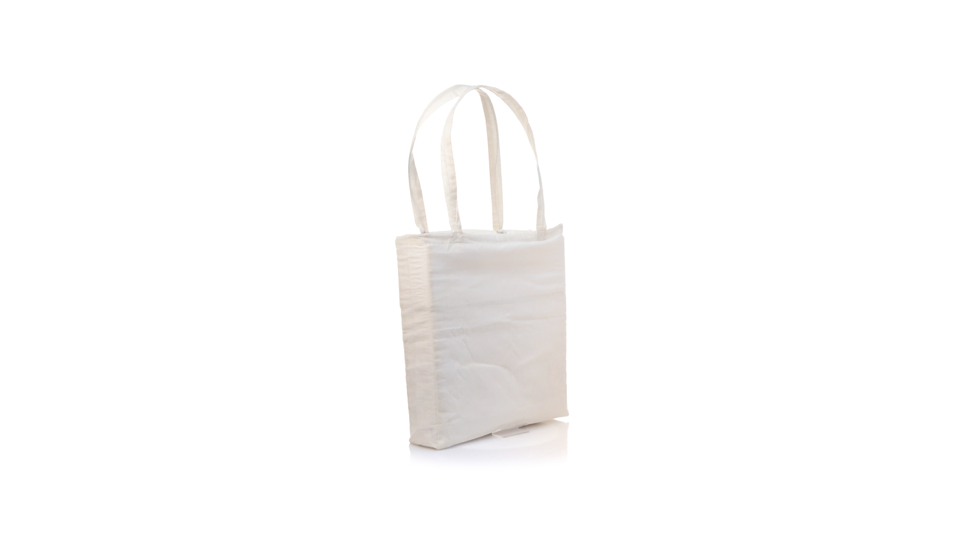 Tasche aus Baumwolle in Naturfarbe. Mit 70 cm langen, verstärkten Henkeln, Zwickel und Steppnähten. Belastbar mit bis zu 7 kg.