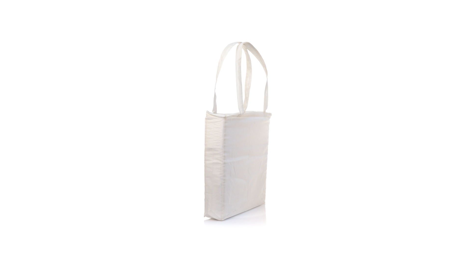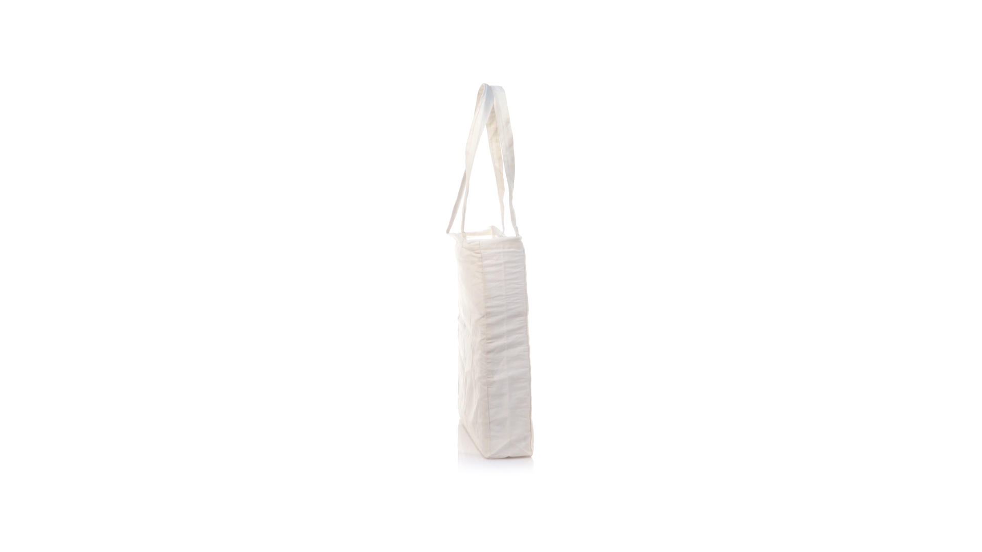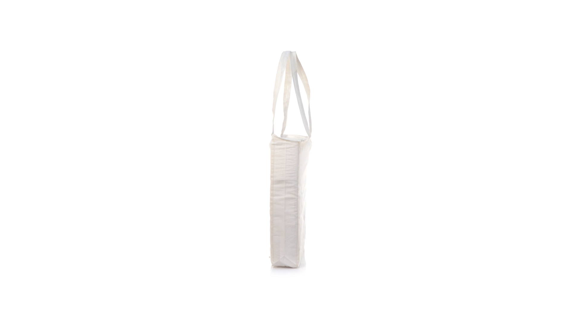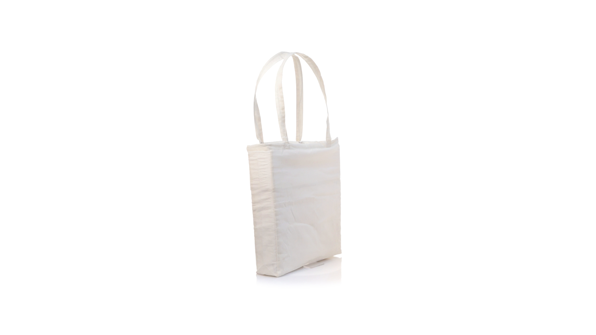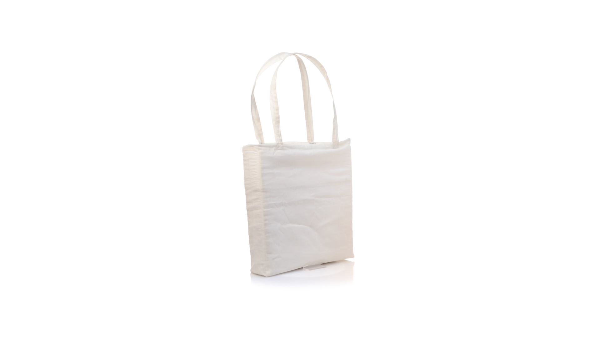 Tasche aus Baumwolle in Naturfarbe. Mit 70 cm langen, verstärkten Henkeln, Zwickel und Steppnähten. Belastbar mit bis zu 7 kg.