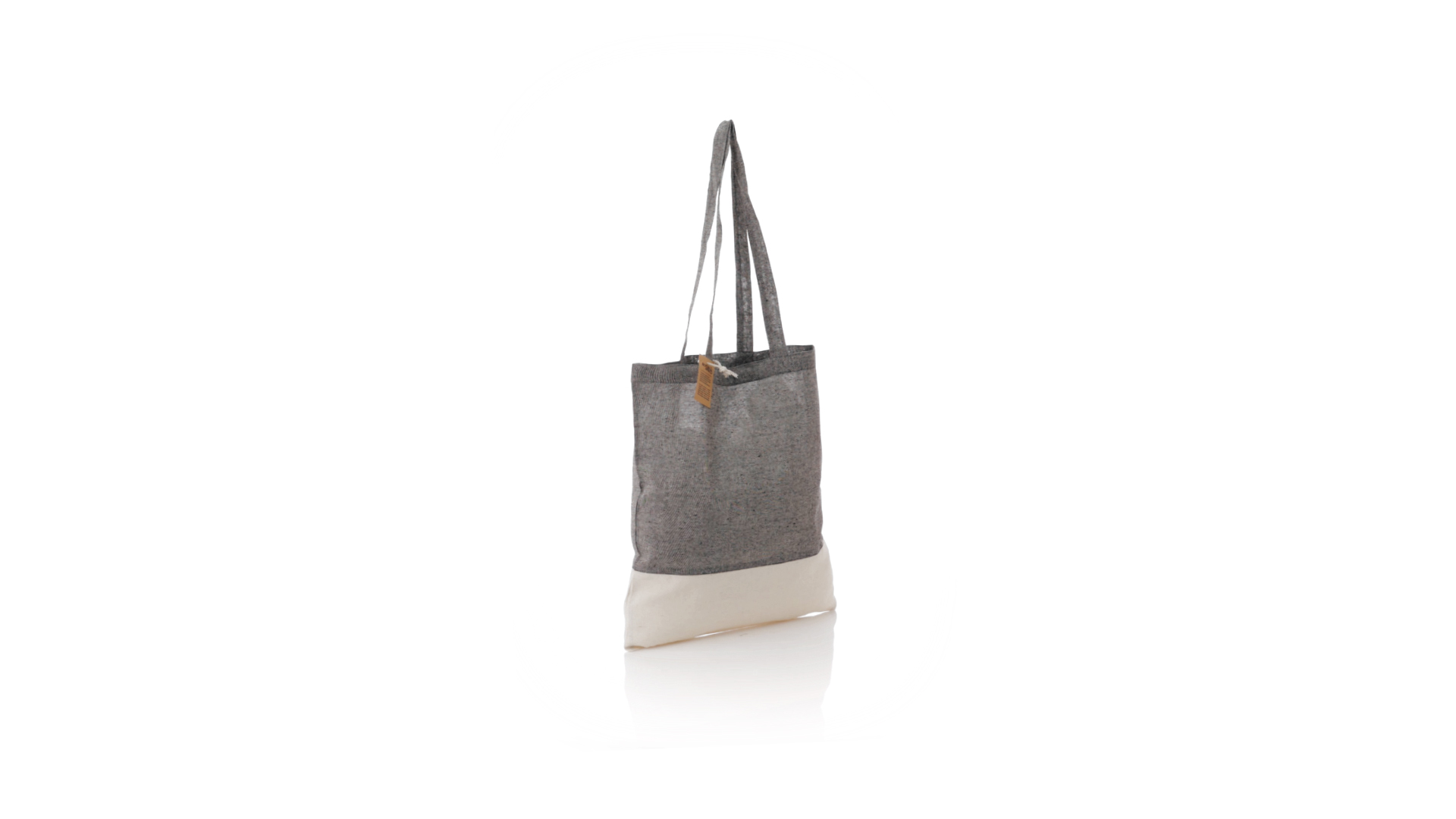 Tasche aus recycelter Baumwolle 120 g/m2. 70 cm lange Griffe mit Verstärkung und genähtem Finish. Recycelte Baumwolle-Logo und Belastbar bis zu 8 kg Gewicht. Erhältlich in einer breiten Palette von Öko-Farben, kombiniert mit einem natürlichen Boden.