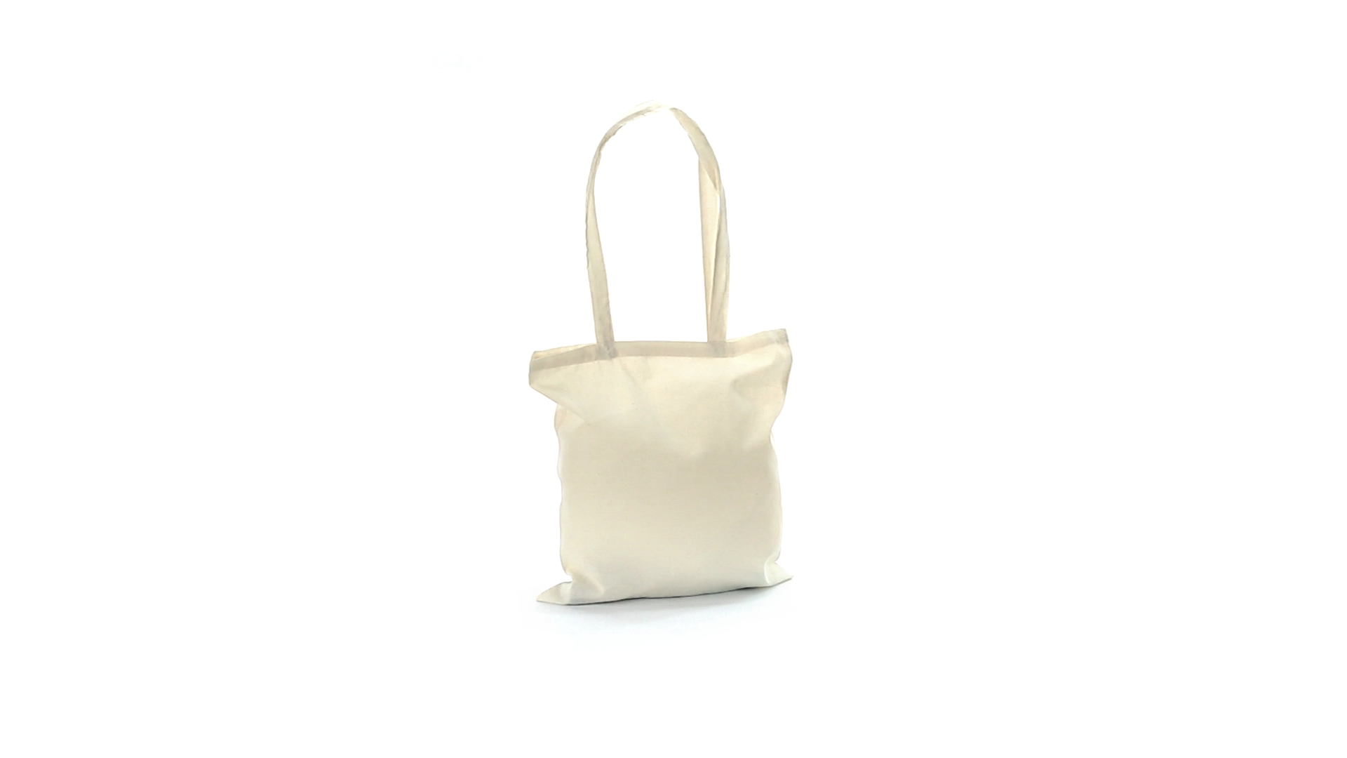 Tasche aus Baumwolle mit naturfarbener Oberfläche. Mit 70 cm langen Henkeln und Steppnähten. Belastbar bis zu einem Gewicht von 7 kg.