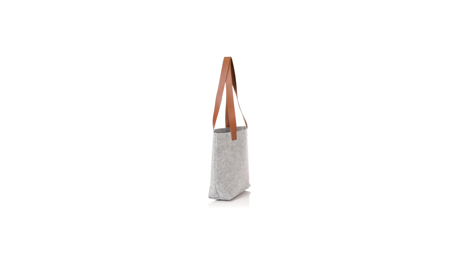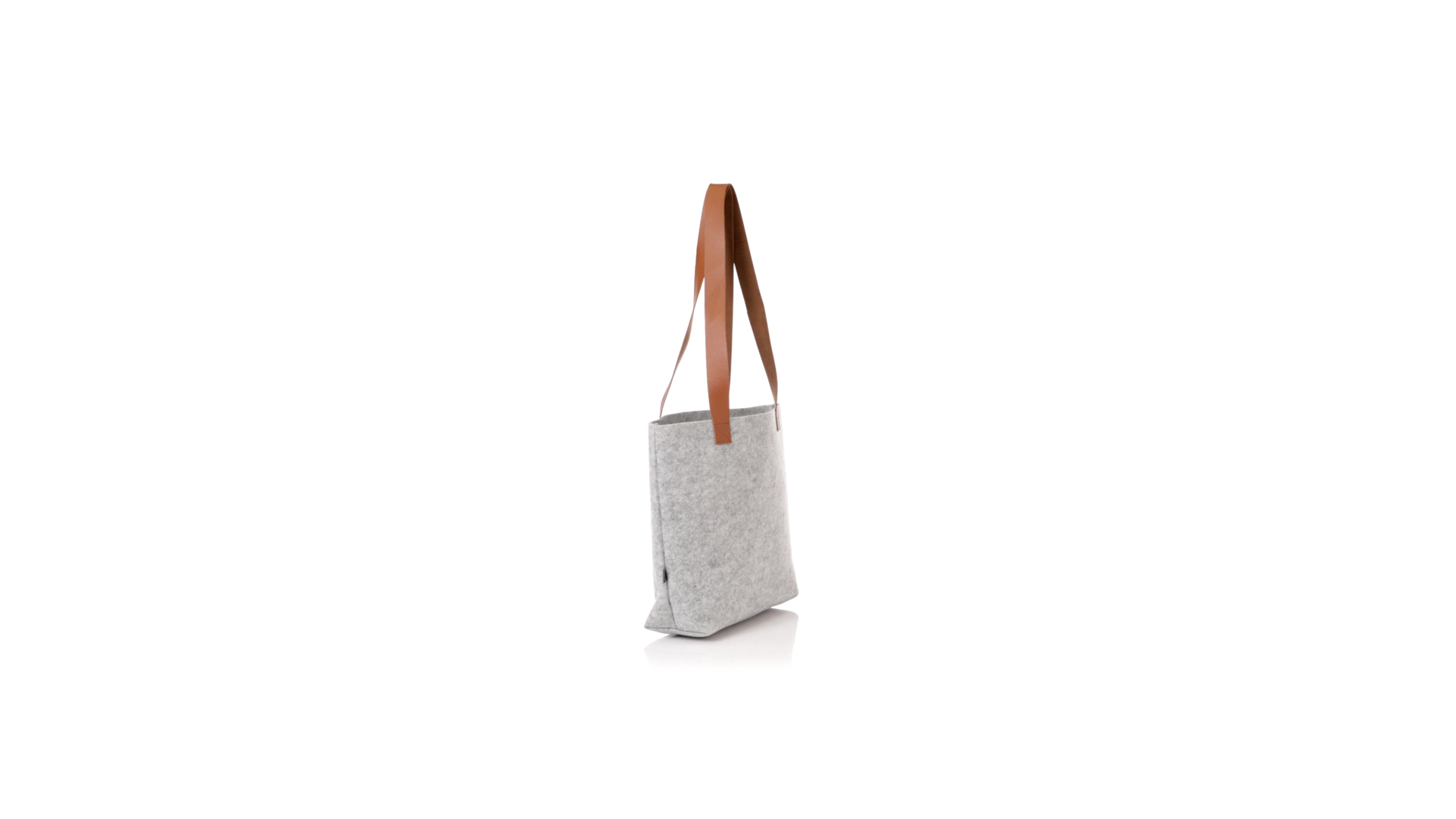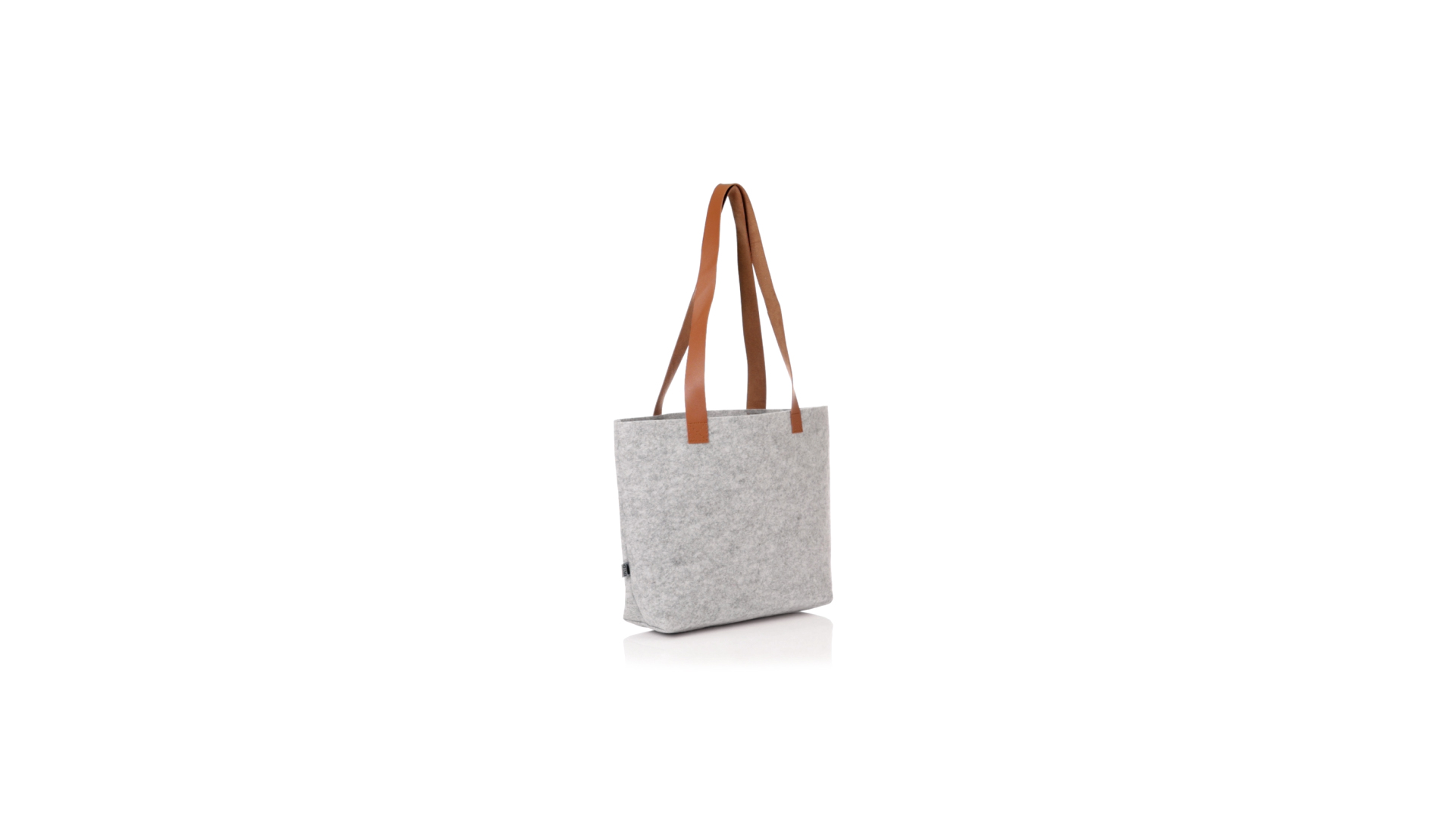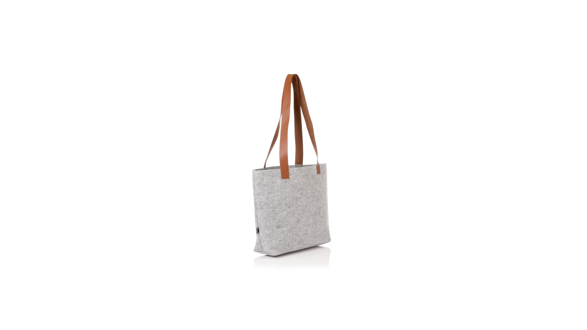 Natur Linie Tasche aus RPET-Filz, mit langen, verstärkten Griffen (70 x 3 cm) aus braunem PU-Leder. Abgenäht, mit Bodenfalte und Korpus in Grau und Naturfarben erhältlich. Aussenetikett mit RPET-Logo. Widerstandsfähigkeit bis zu 6 kg Gewicht.Filz RPET ist das Ergebnis der Kombination der Recyclingprozesse von Kunststoffen mit der jahrtausendealten Technik der Filzherstellung. Das Ergebnis ist ein Öko-Trend-Material, das nicht nur aus recyceltem Material besteht, sondern auch wiederverwertbar ist.