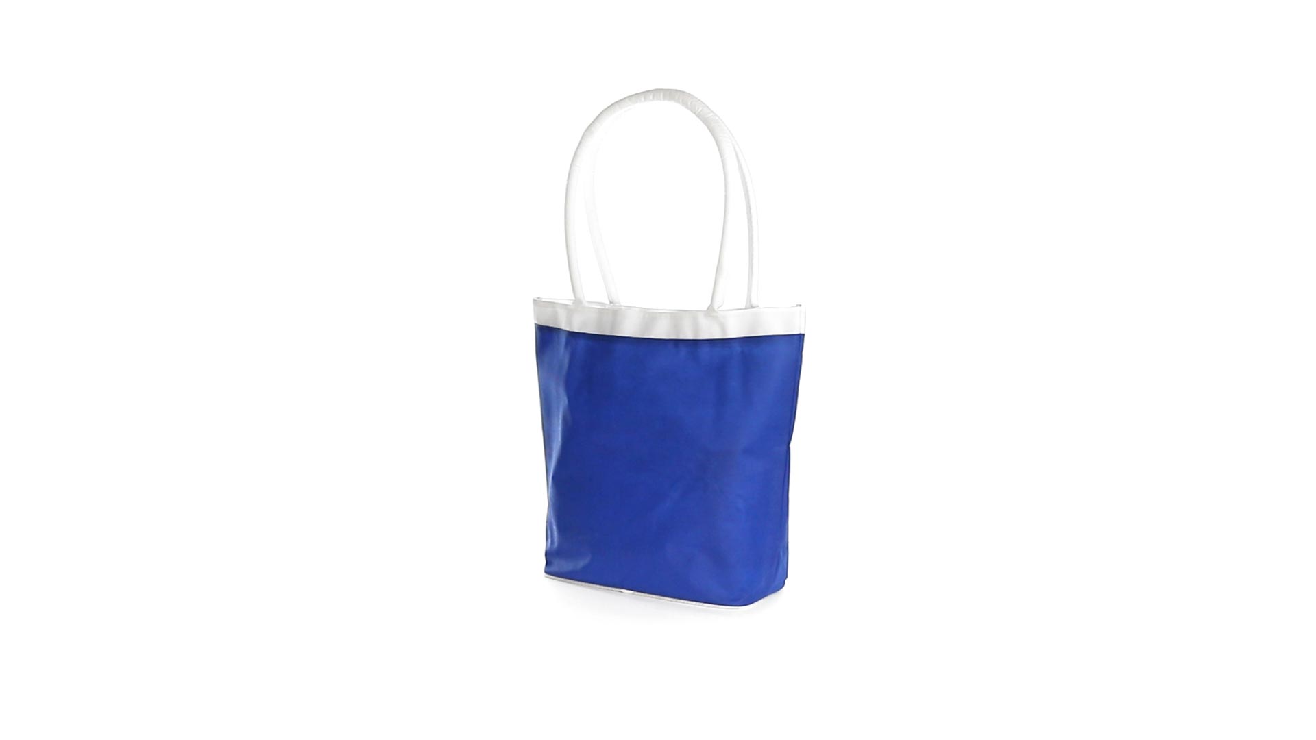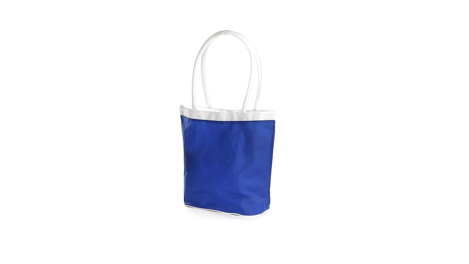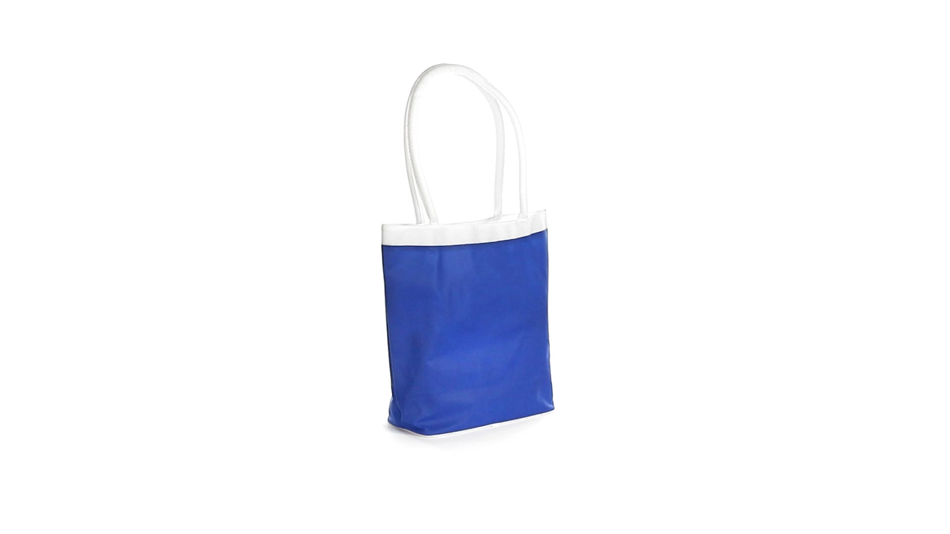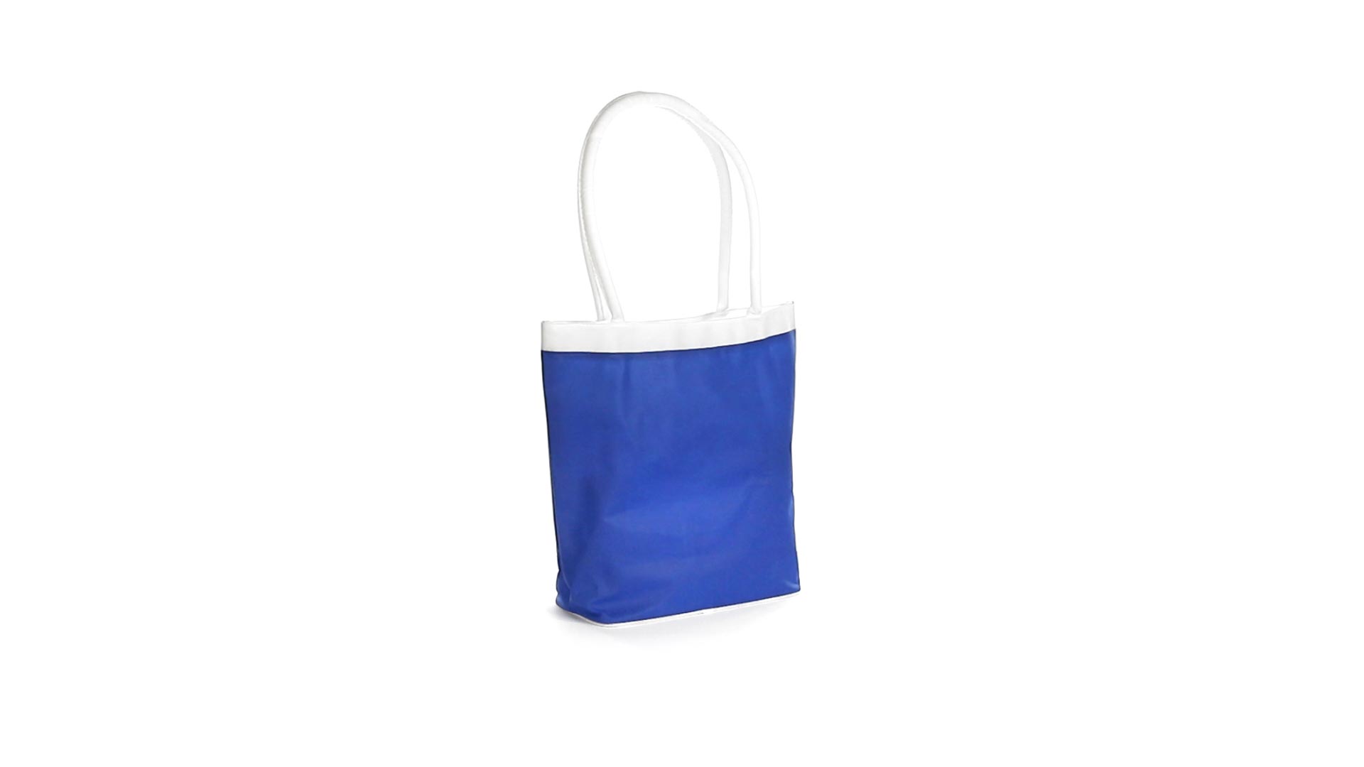 Non-Woven-Tasche aus Faservlies (100 g/m2) mit Körper in einer Vielzahl von lebendigen Farben und Rand und Henkel in Weiss. Mit 66 cm langen, gepolsterten und verstärkten Henkeln sowie Zwickel und Steppnähten. Belastbar mit bis zu 10 kg.