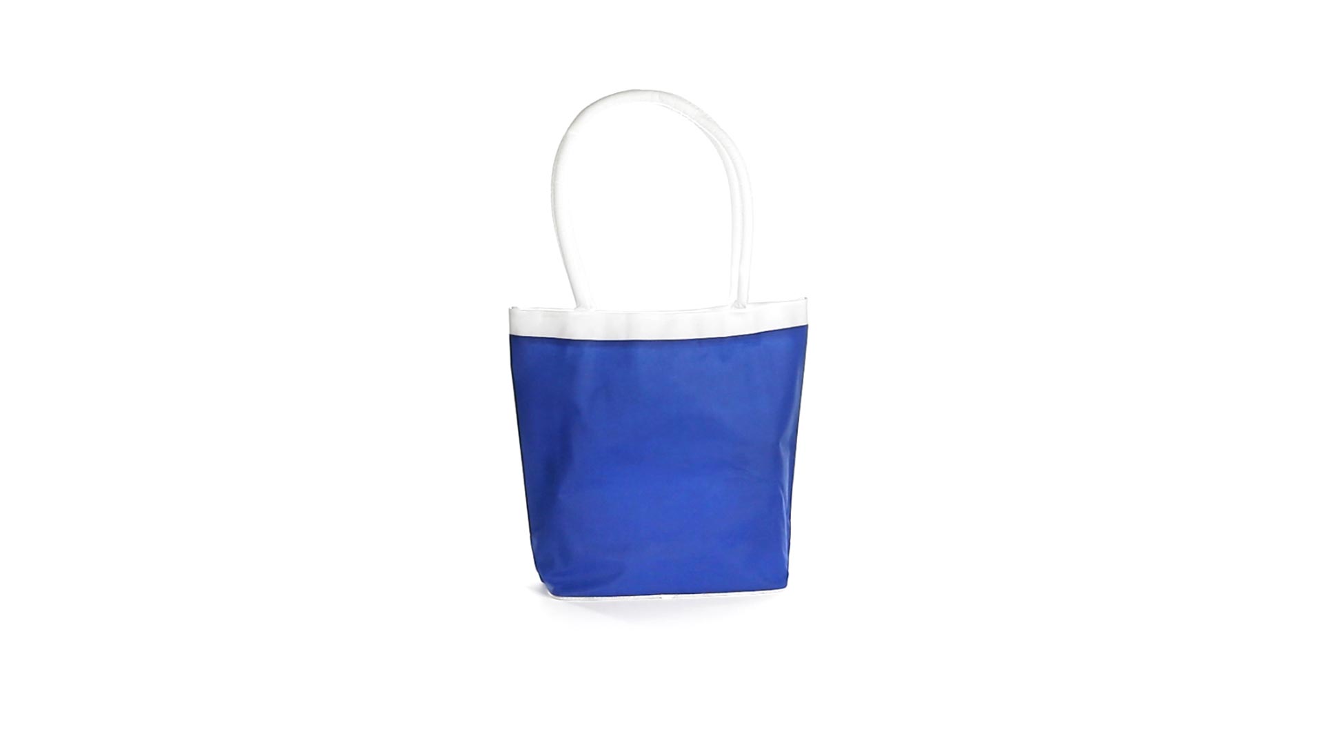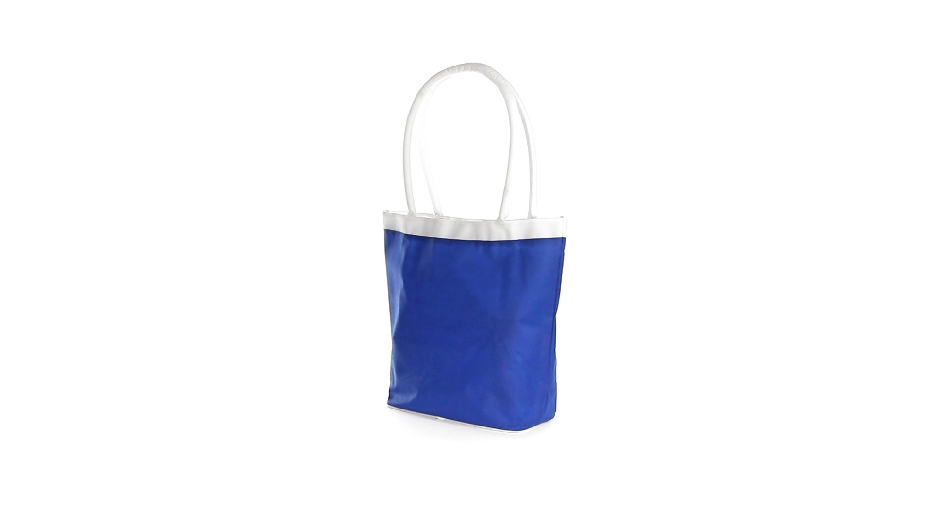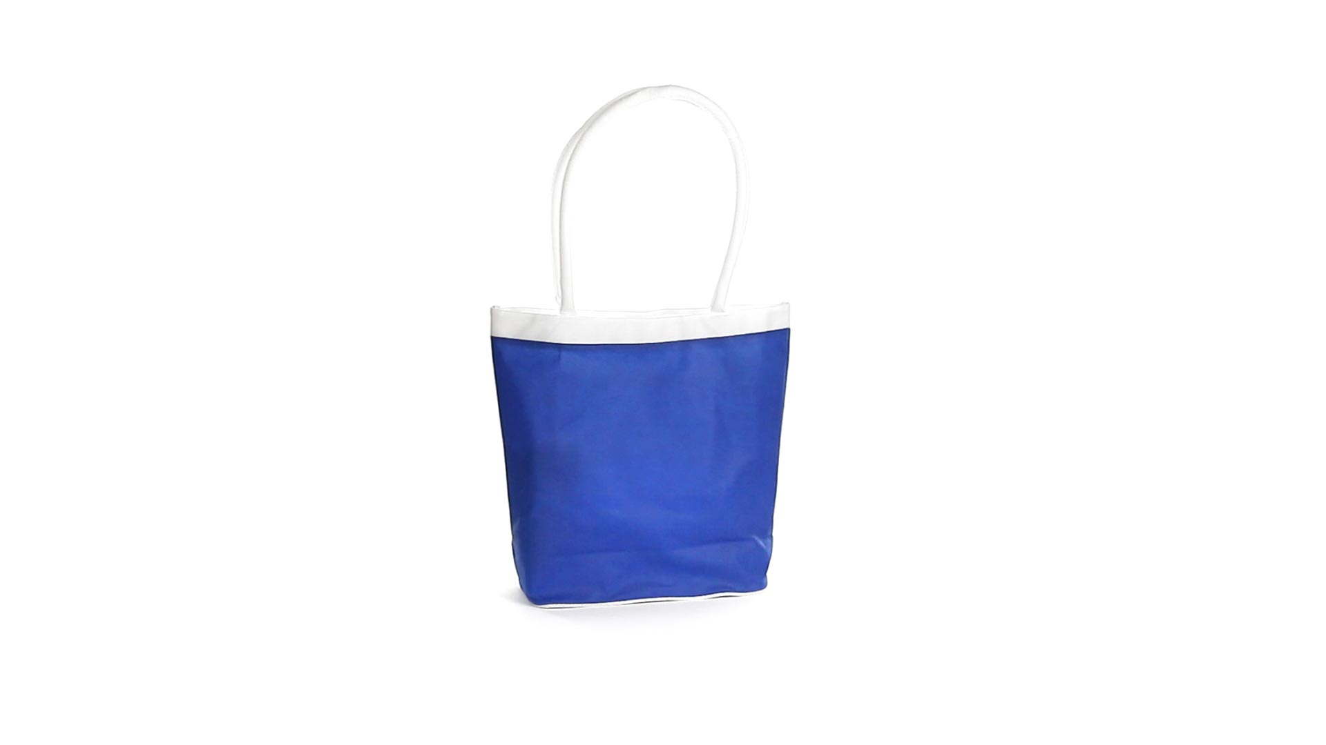 Non-Woven-Tasche aus Faservlies (100 g/m2) mit Körper in einer Vielzahl von lebendigen Farben und Rand und Henkel in Weiss. Mit 66 cm langen, gepolsterten und verstärkten Henkeln sowie Zwickel und Steppnähten. Belastbar mit bis zu 10 kg.
