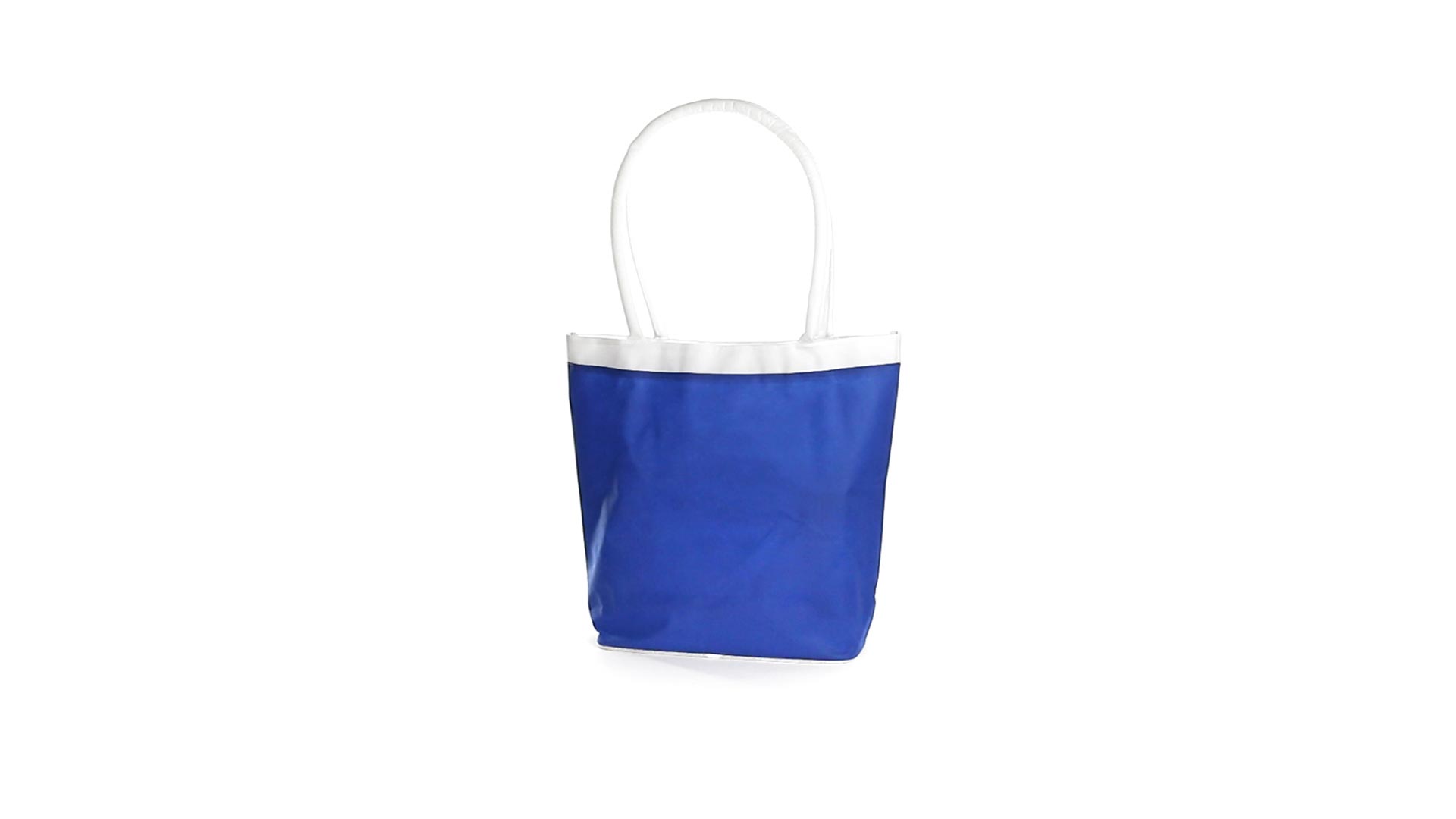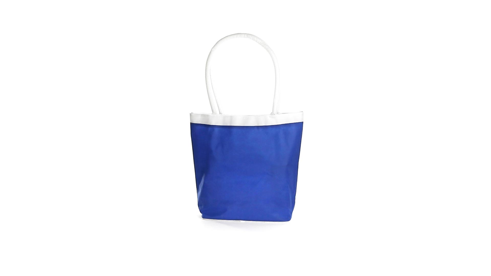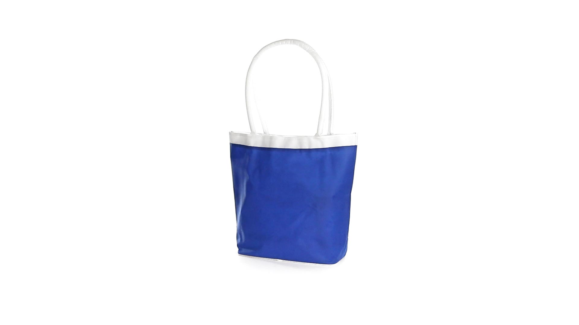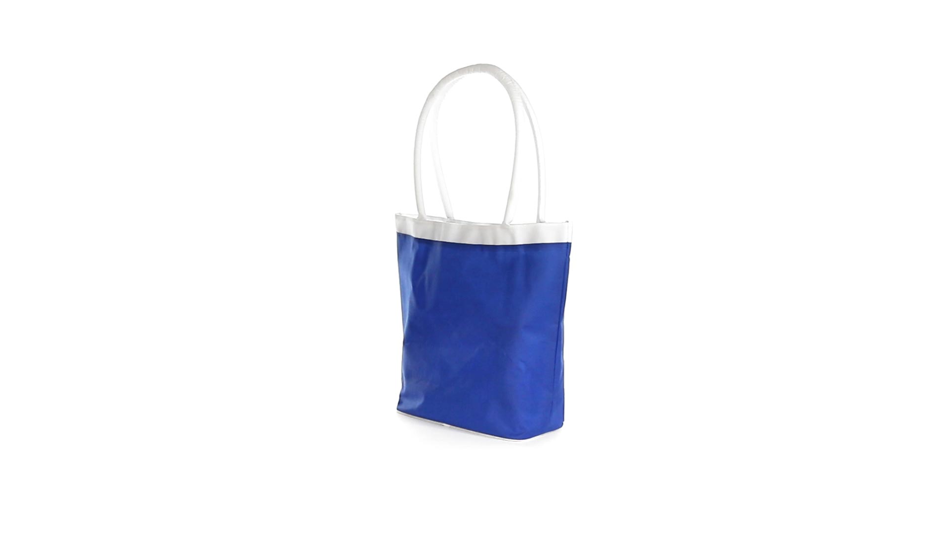 Non-Woven-Tasche aus Faservlies (100 g/m2) mit Körper in einer Vielzahl von lebendigen Farben und Rand und Henkel in Weiss. Mit 66 cm langen, gepolsterten und verstärkten Henkeln sowie Zwickel und Steppnähten. Belastbar mit bis zu 10 kg.