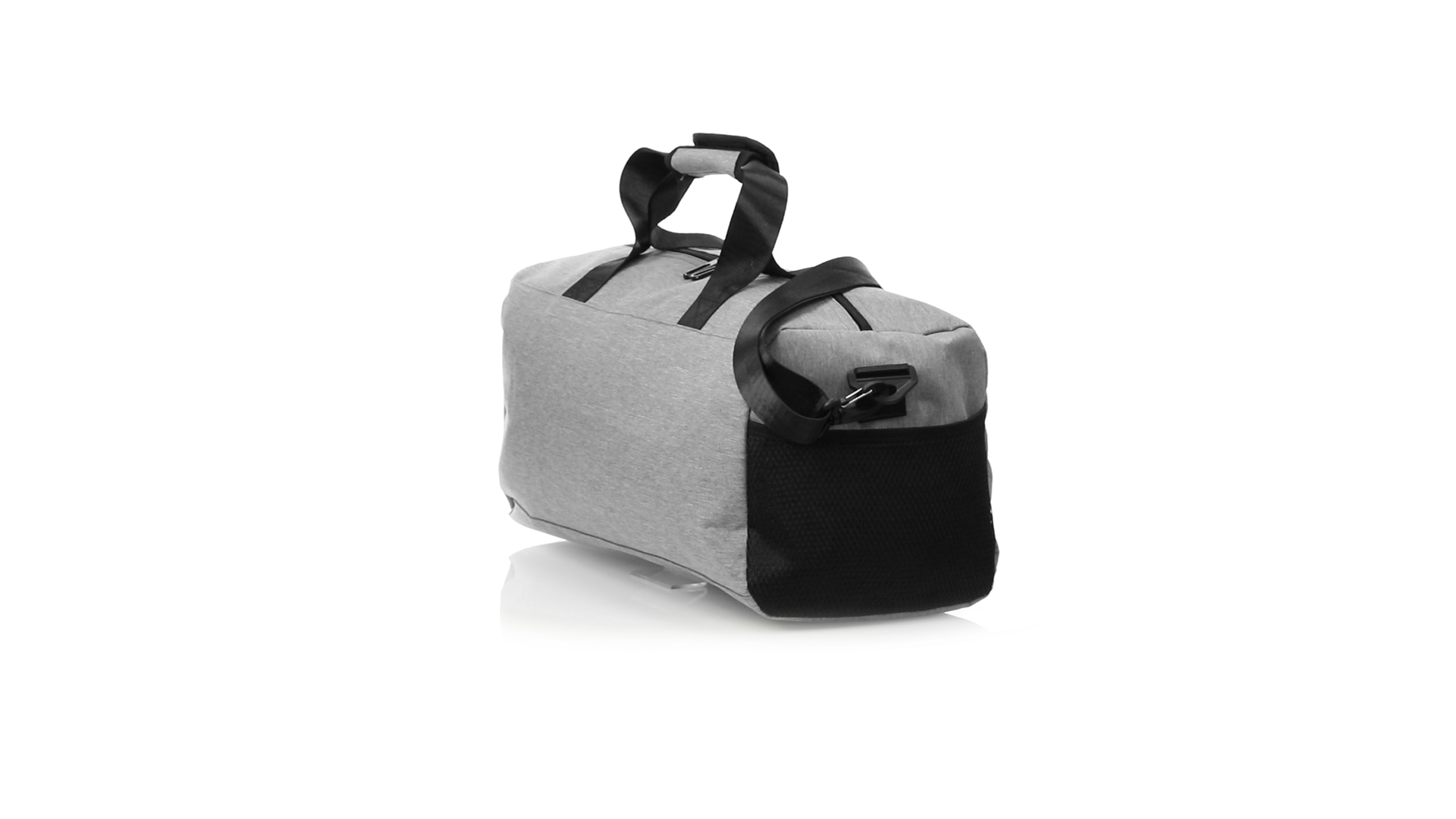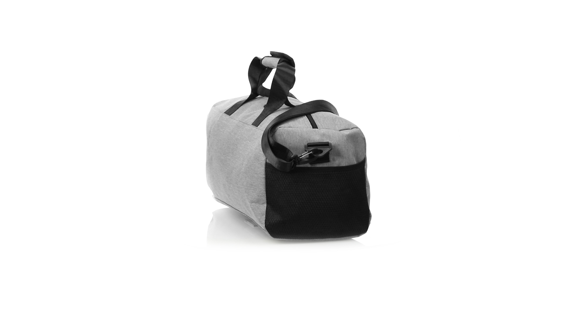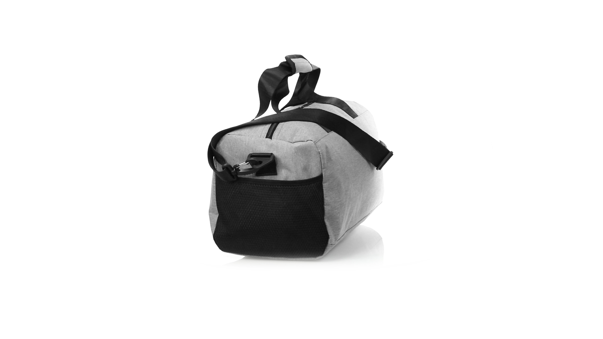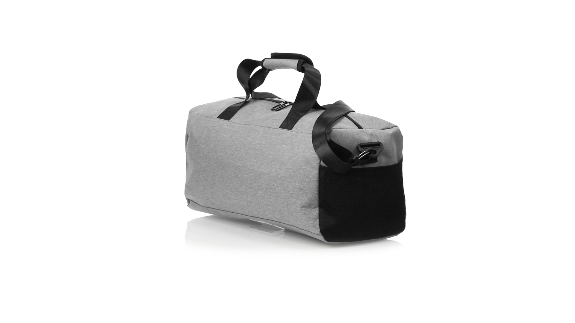 Mehrzwecktasche aus widerstandsfähigem Polyester 600D Material und zweifarbigem Design, Körper in grauer Farbe und Details in schwarz. Hauptfach mit doppelten Reissverschlusszügen, strapazierfähigen, nylonverstärkten Griffen und einer seitlichen Netztasche. Mit verstellbarem Schulterriemen.