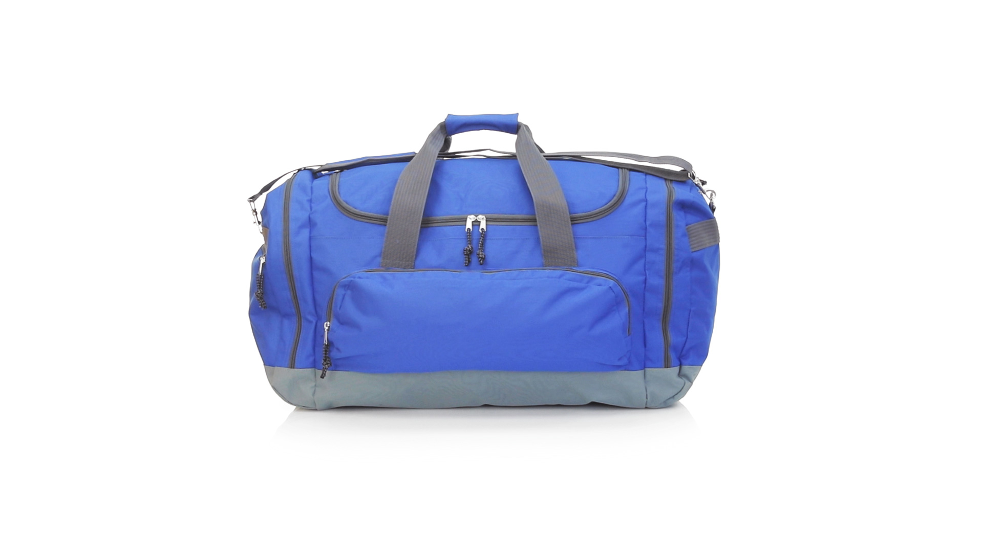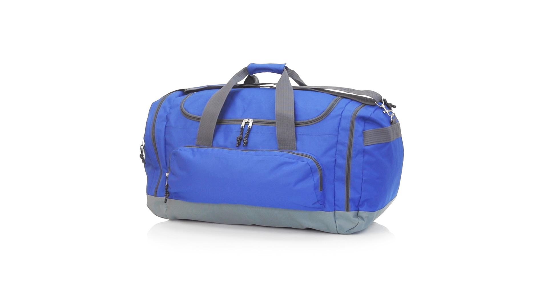 Mehrzwecktasche mit grossem Fassungsvermögen aus strapazierfähigem 600D-Polyester. Zweifarbiges Design, mit grauer Basis und Details. Hauptfach und Seitentaschen mit Reissverschluss. Strapazierfähige Tragegriffe aus Nylon mit passendem Klettverschluss. Inklusive verstellbarem Schultergurt mit Karabinerverschluss und passendem Schulterpolster. Verstärkte Basis.
