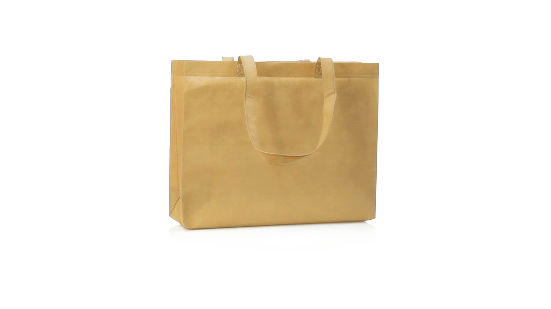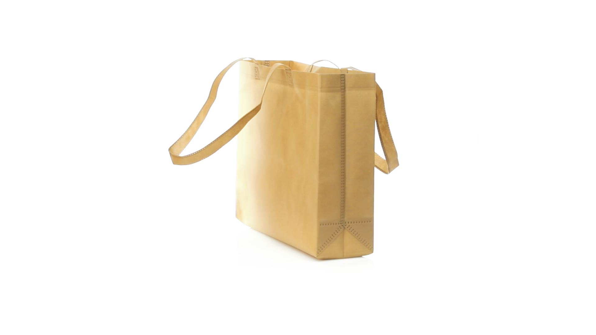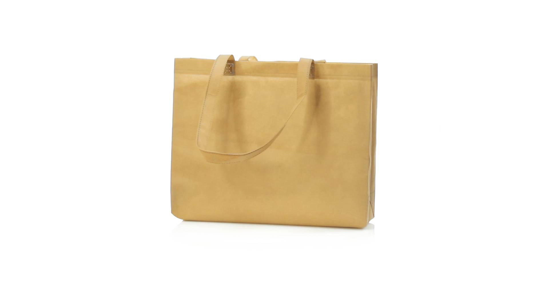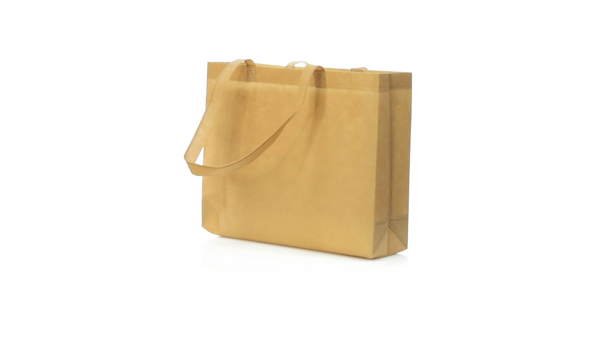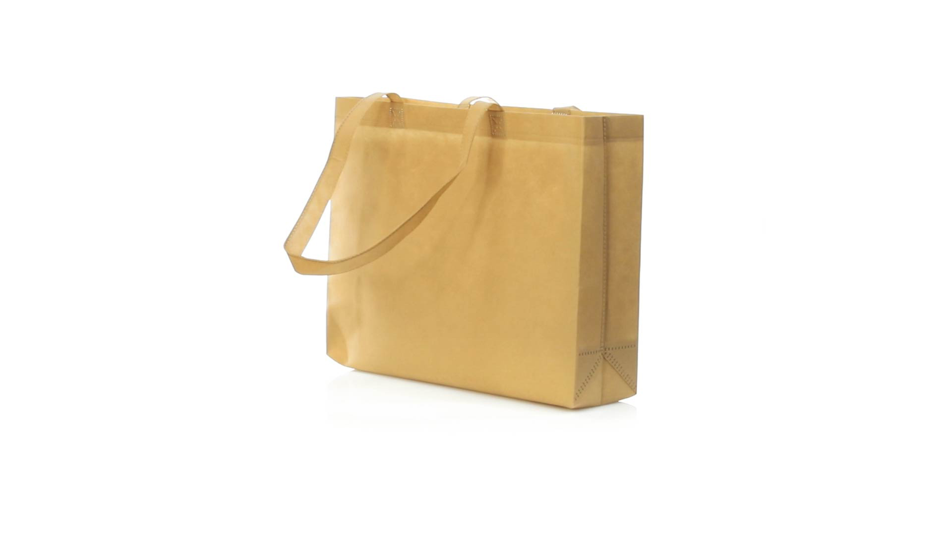 Wiederverwendbare Tasche Natur inspiriert in 80g/m2 Vliesmaterial. Grösse 42x30+11 cm, mit genähter Verarbeitung und verstärkten, 70 cm langen Henkeln. Widerstandsfähig bis zu 8 kg Gewicht.