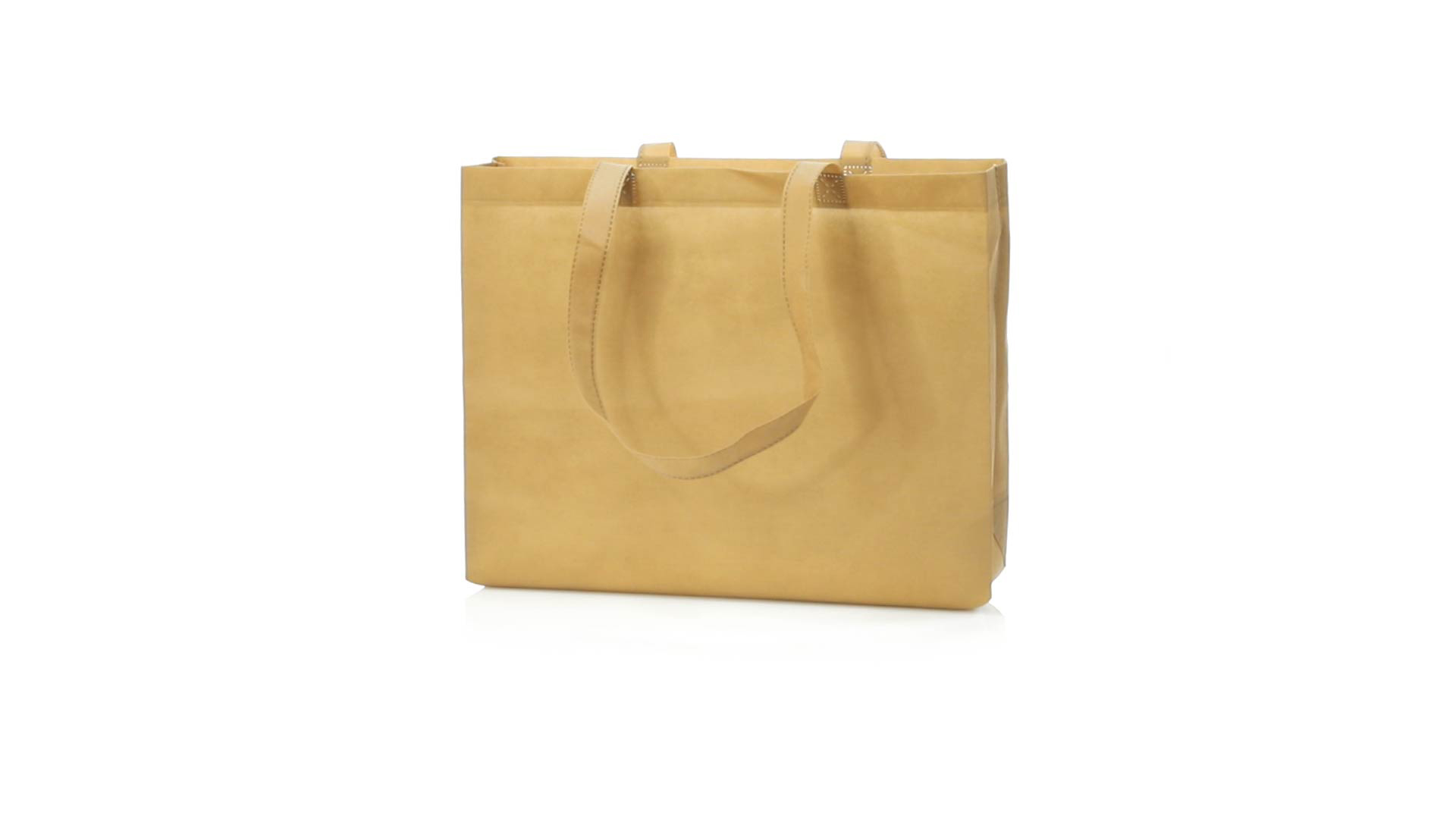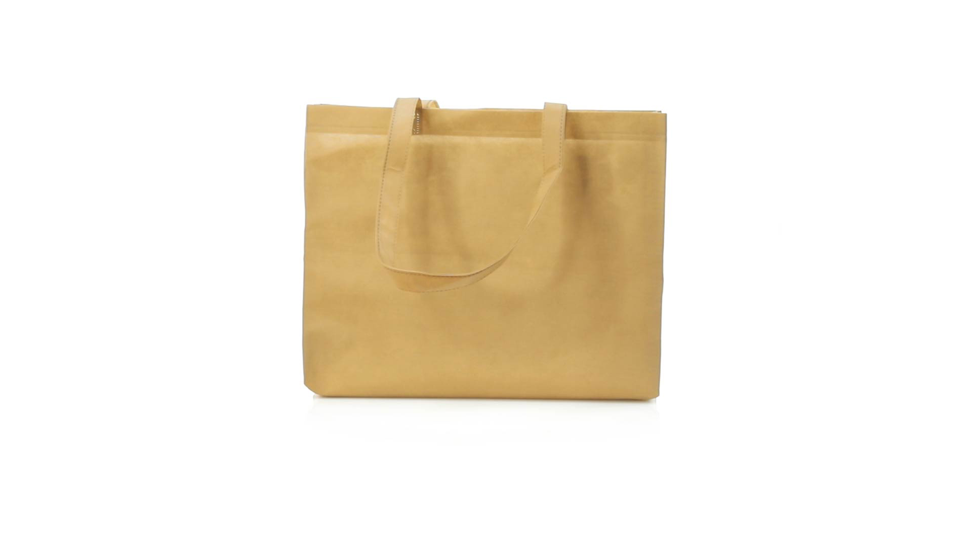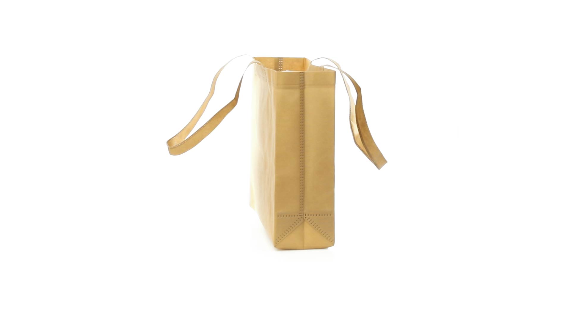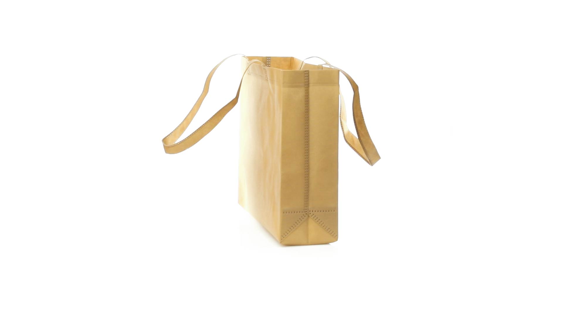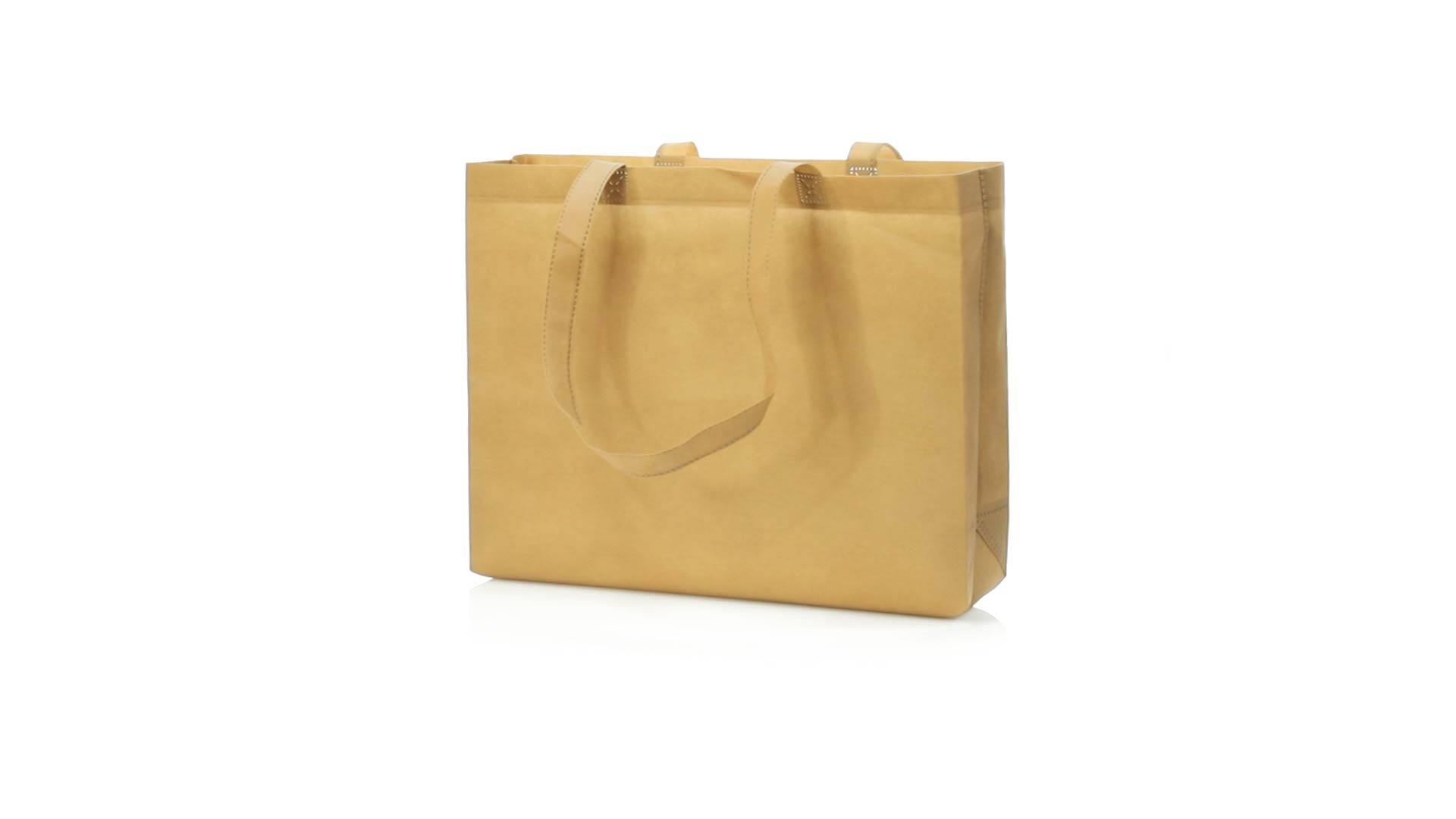 Wiederverwendbare Tasche Natur inspiriert in 80g/m2 Vliesmaterial. Grösse 42x30+11 cm, mit genähter Verarbeitung und verstärkten, 70 cm langen Henkeln. Widerstandsfähig bis zu 8 kg Gewicht.