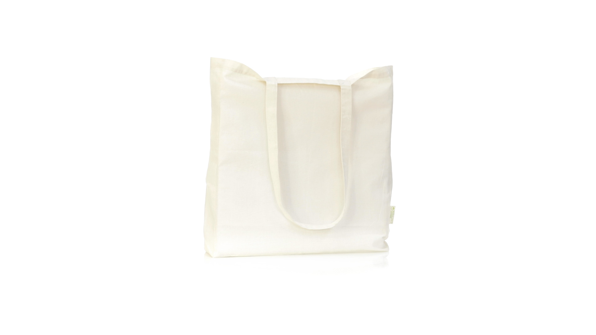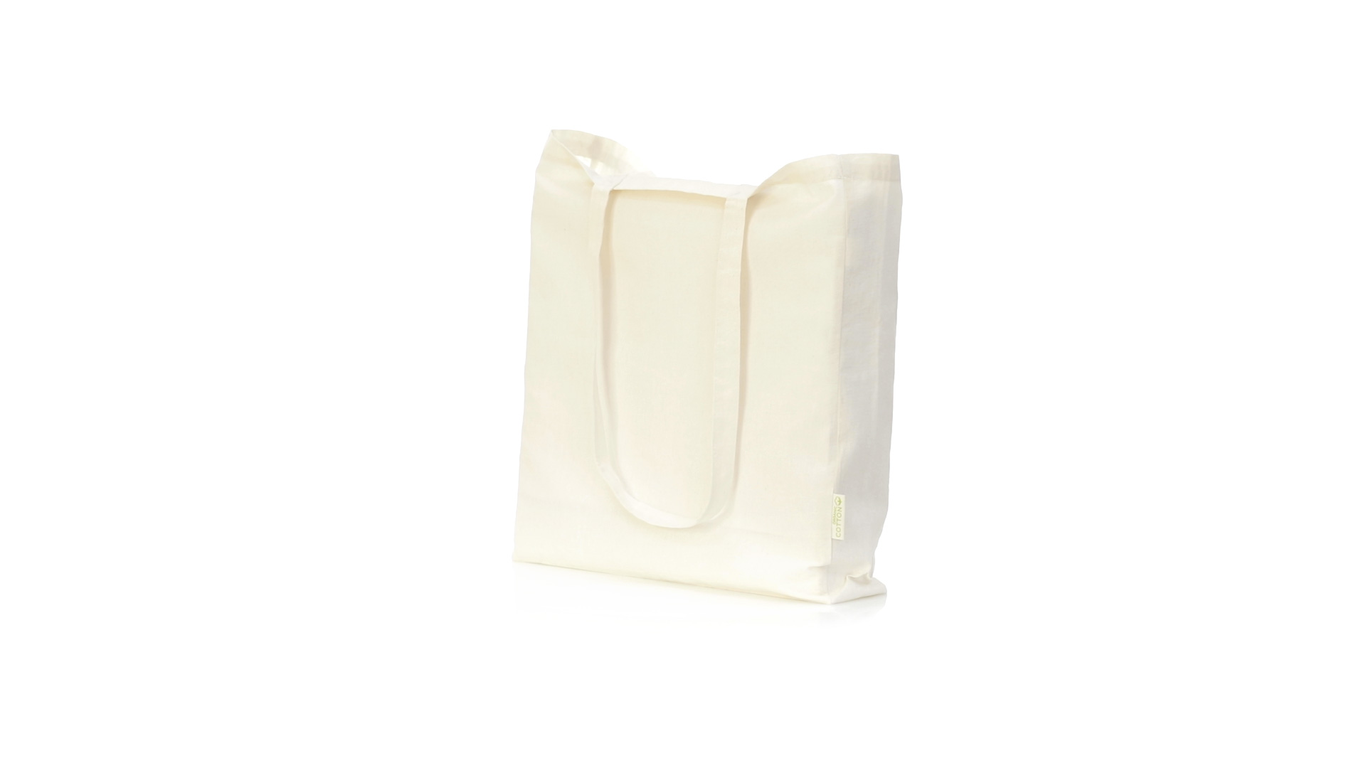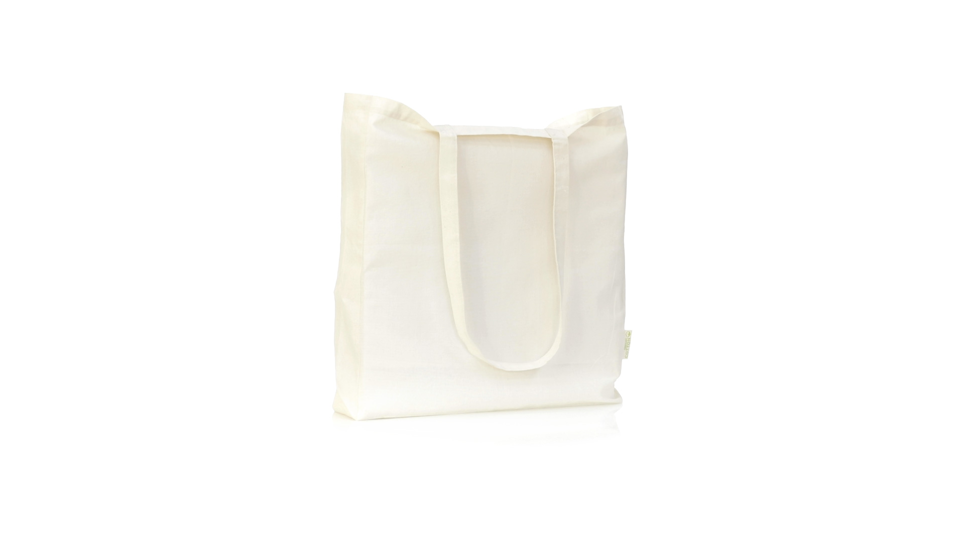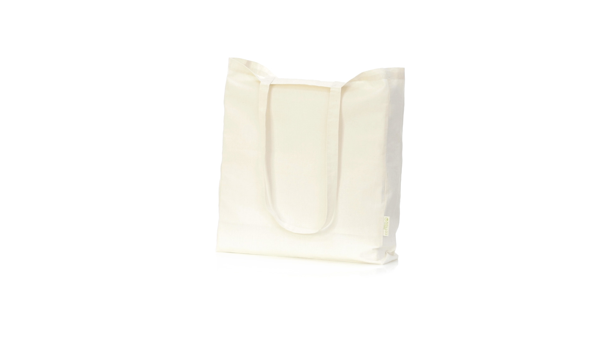 Nature Line Beutel aus Bio-Baumwolle 140g/m2. Lange Griffe aus Bio-Baumwolle, 70 cm und verstärkt. Genähtes Finish und Widerstandsfähigkeit bis zu 8 kg Gewicht, mit unverkennbarer Bio-Baumwolle auf dem Etikett.