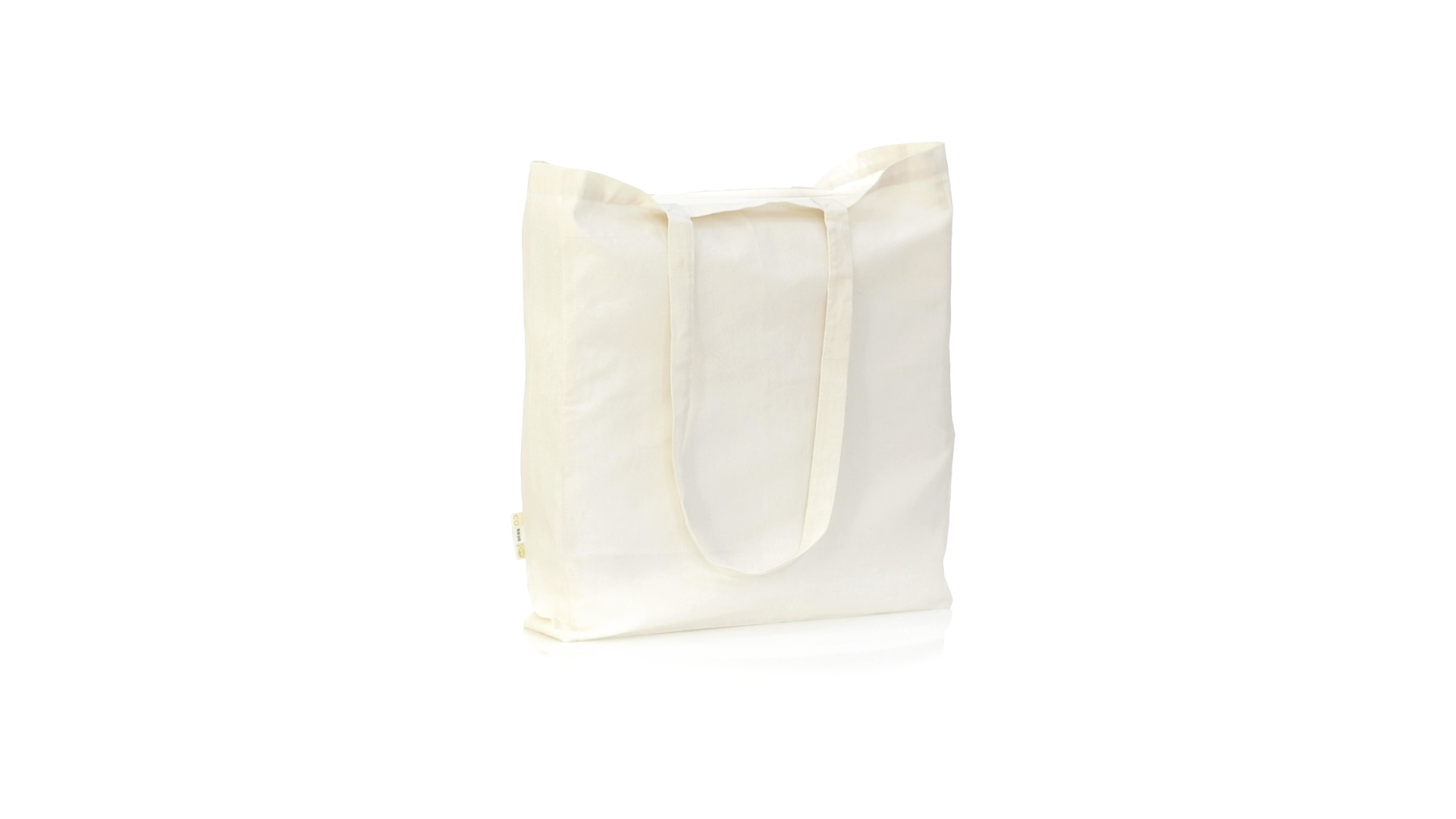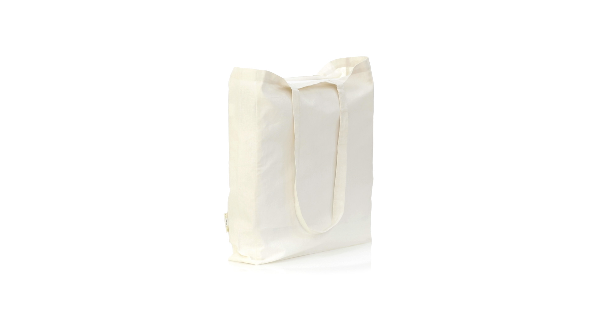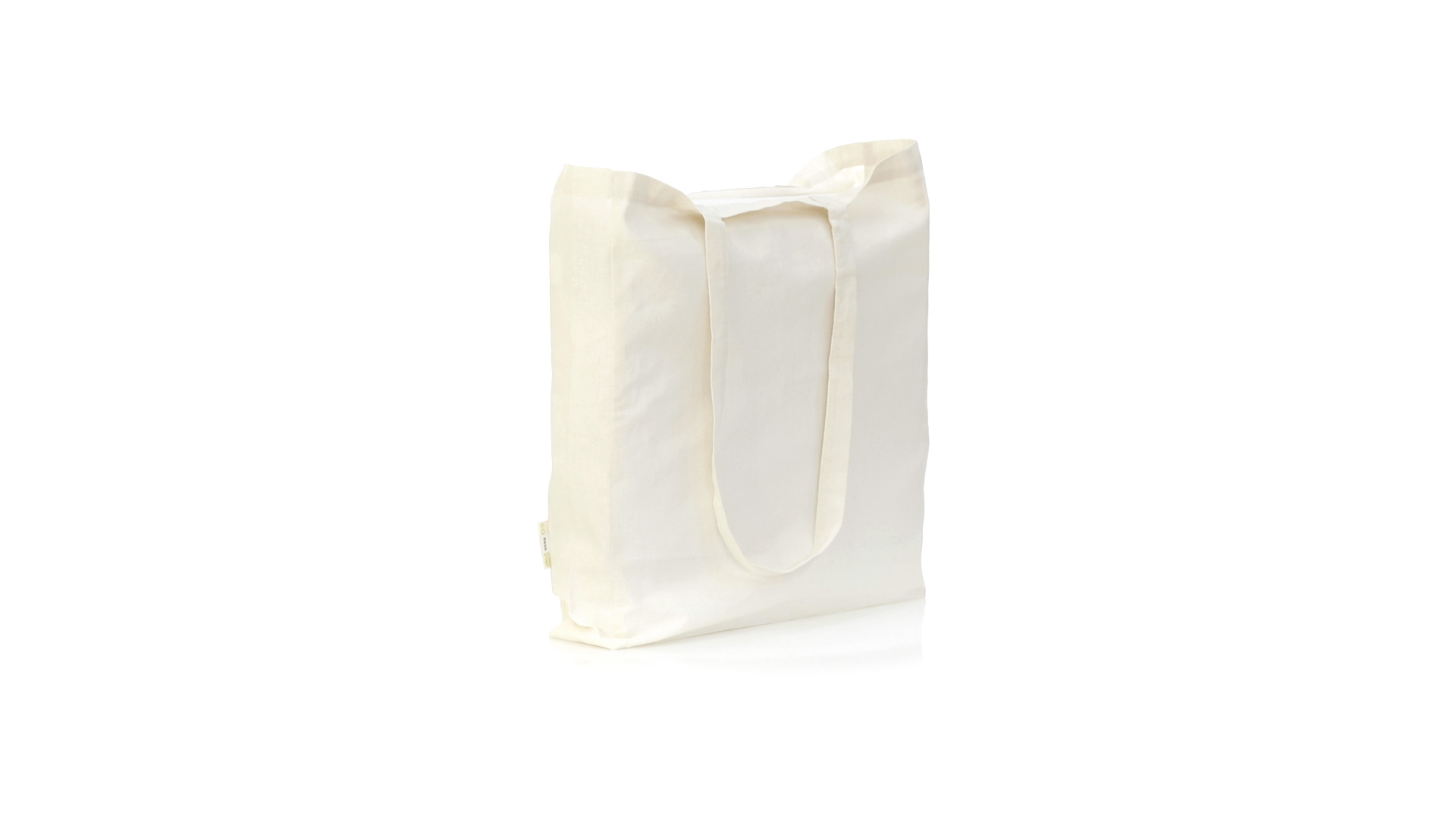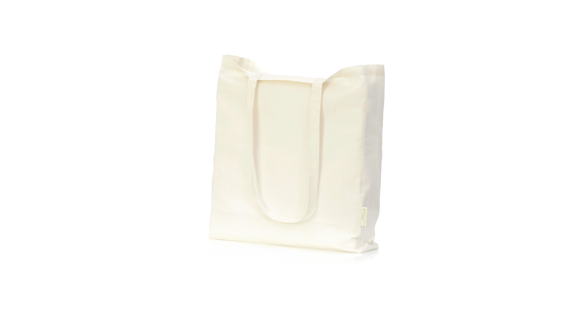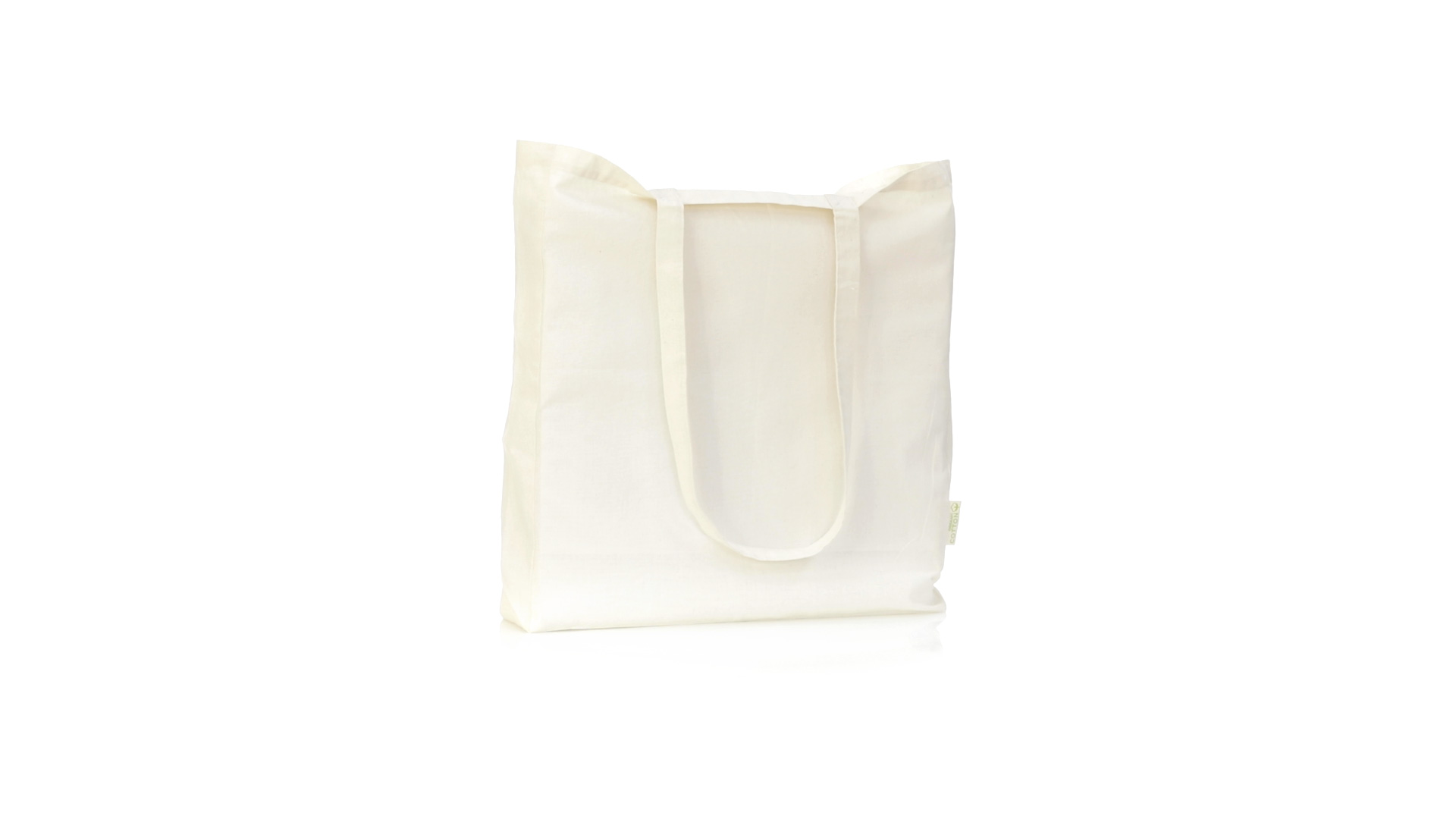 Nature Line Beutel aus Bio-Baumwolle 140g/m2. Lange Griffe aus Bio-Baumwolle, 70 cm und verstärkt. Genähtes Finish und Widerstandsfähigkeit bis zu 8 kg Gewicht, mit unverkennbarer Bio-Baumwolle auf dem Etikett.