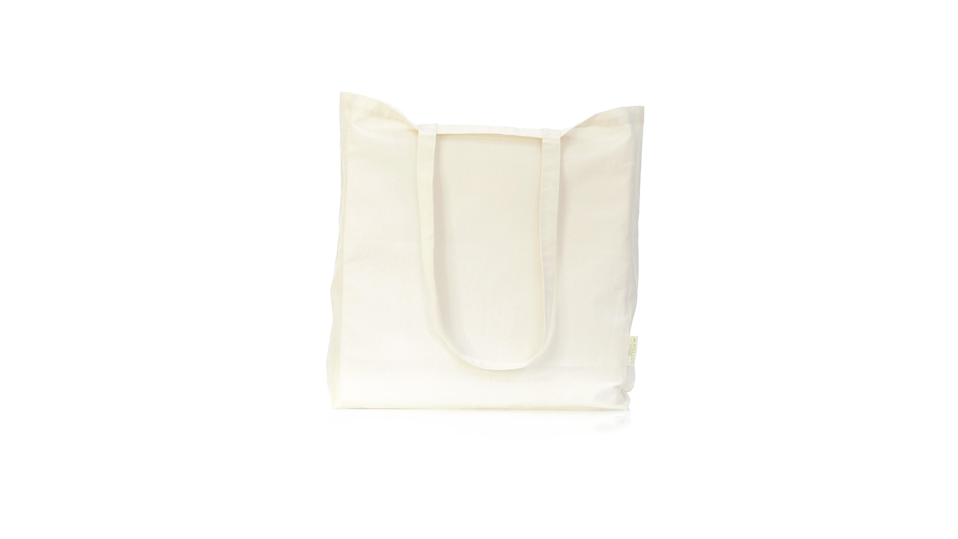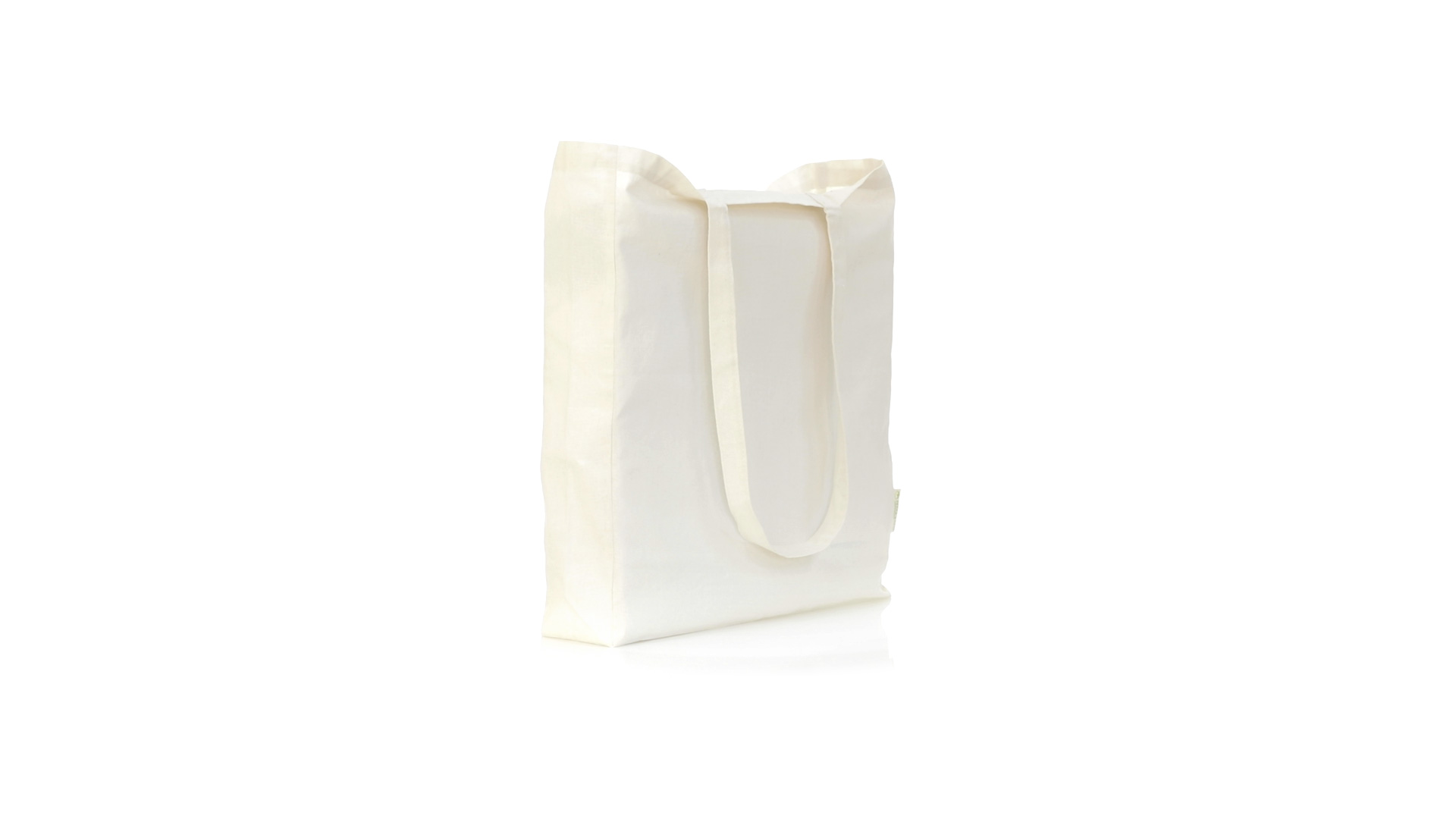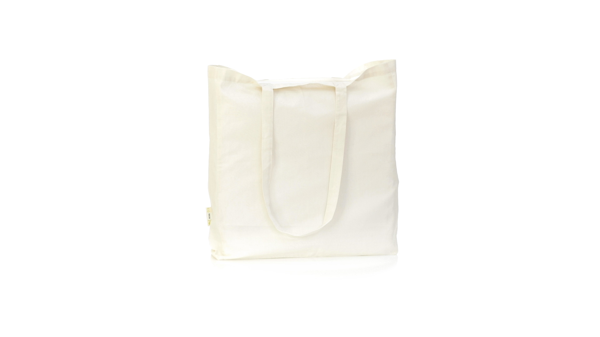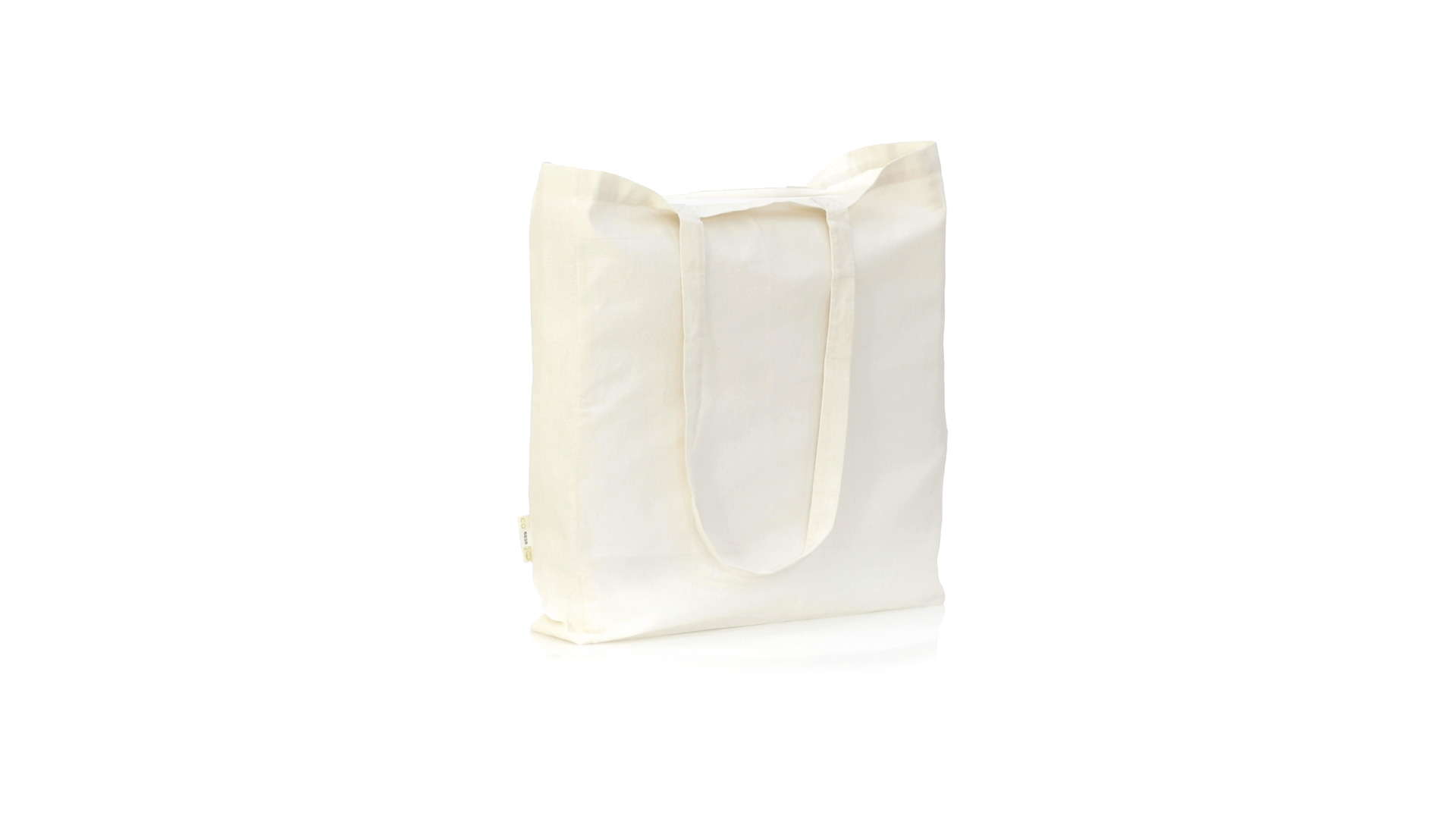 Nature Line Beutel aus Bio-Baumwolle 140g/m2. Lange Griffe aus Bio-Baumwolle, 70 cm und verstärkt. Genähtes Finish und Widerstandsfähigkeit bis zu 8 kg Gewicht, mit unverkennbarer Bio-Baumwolle auf dem Etikett.