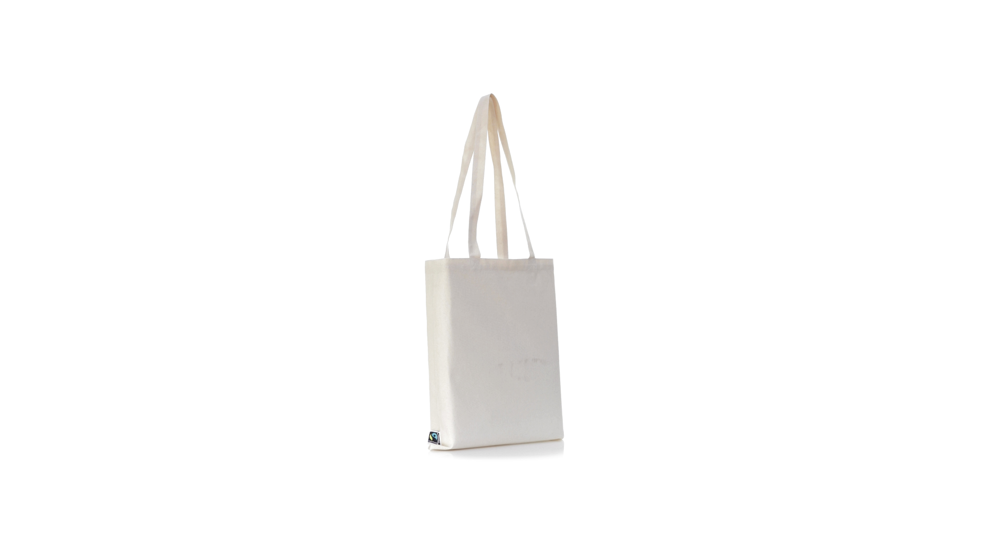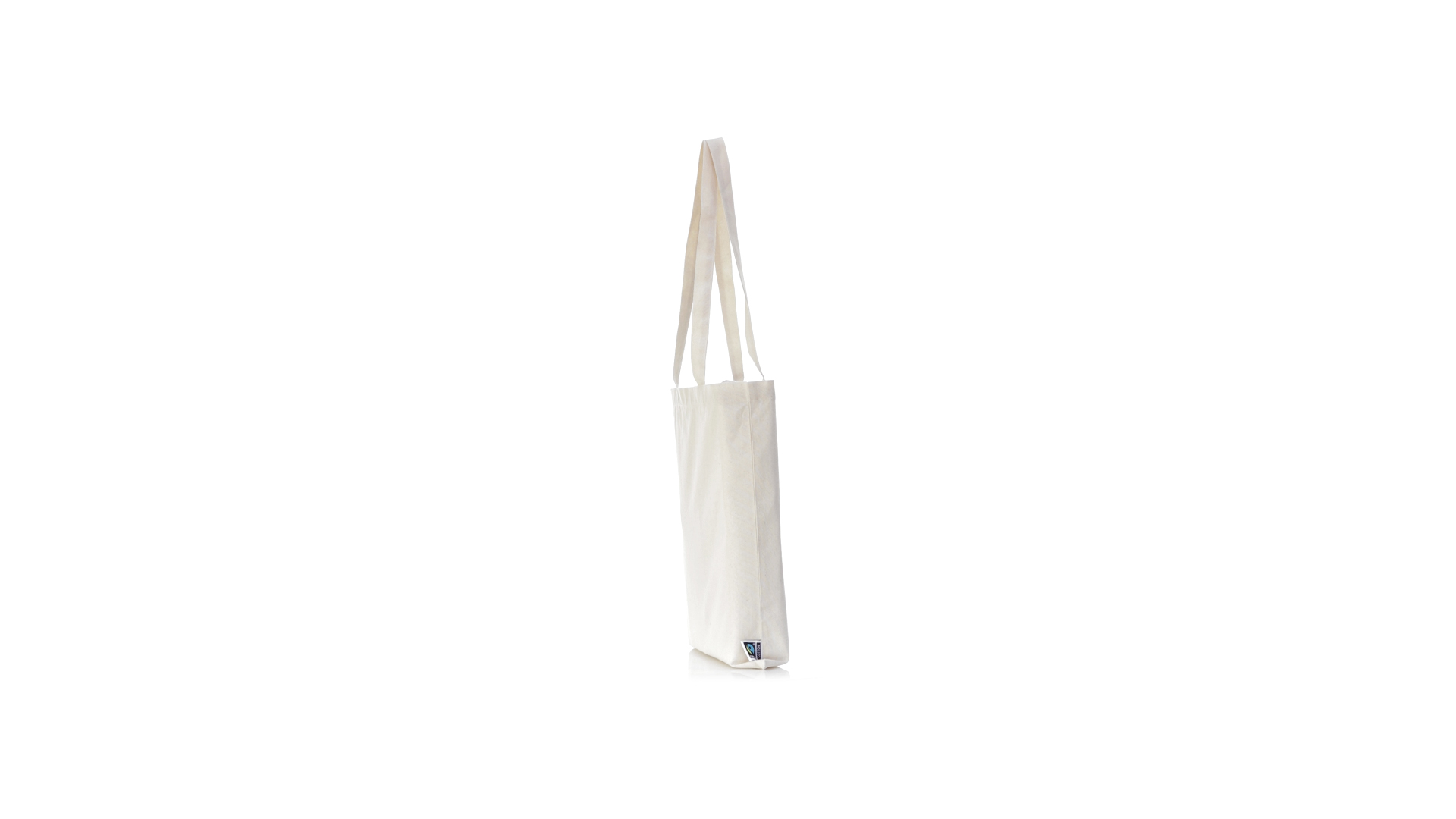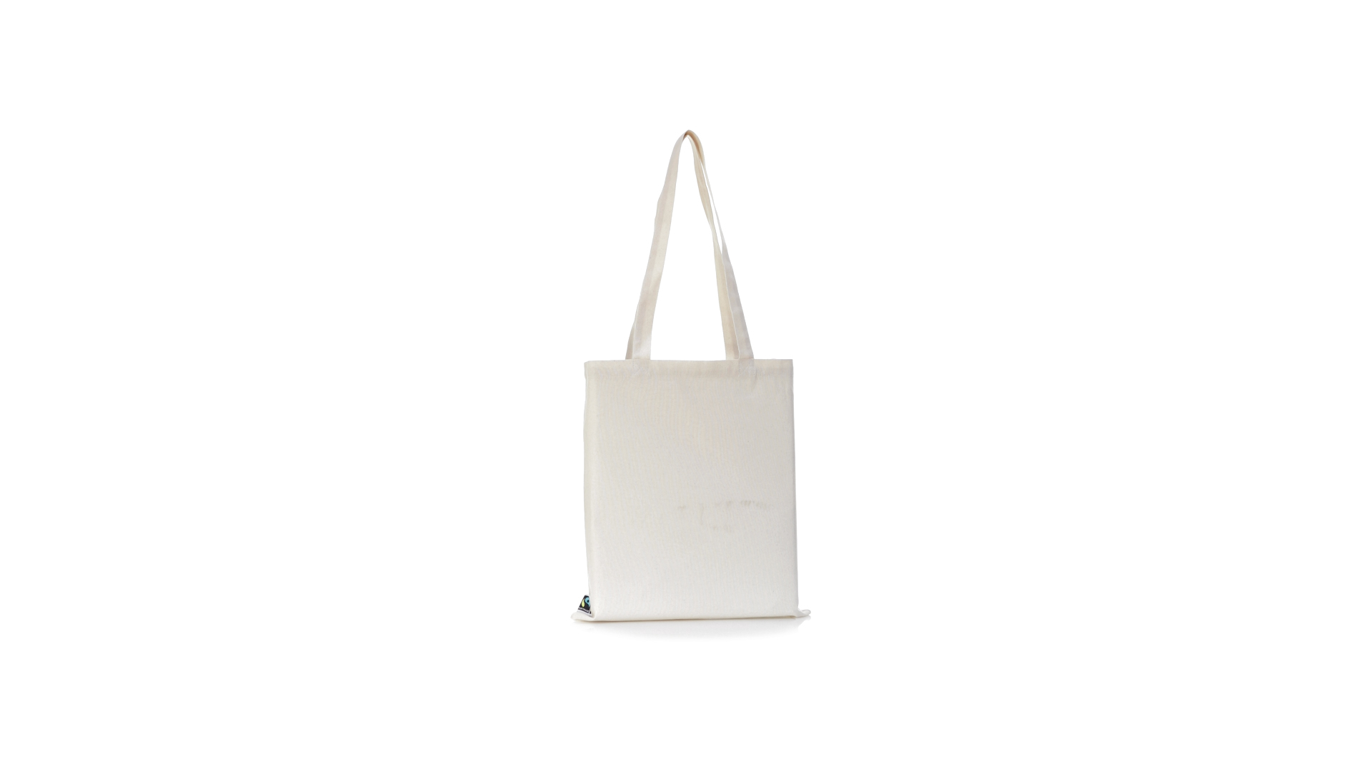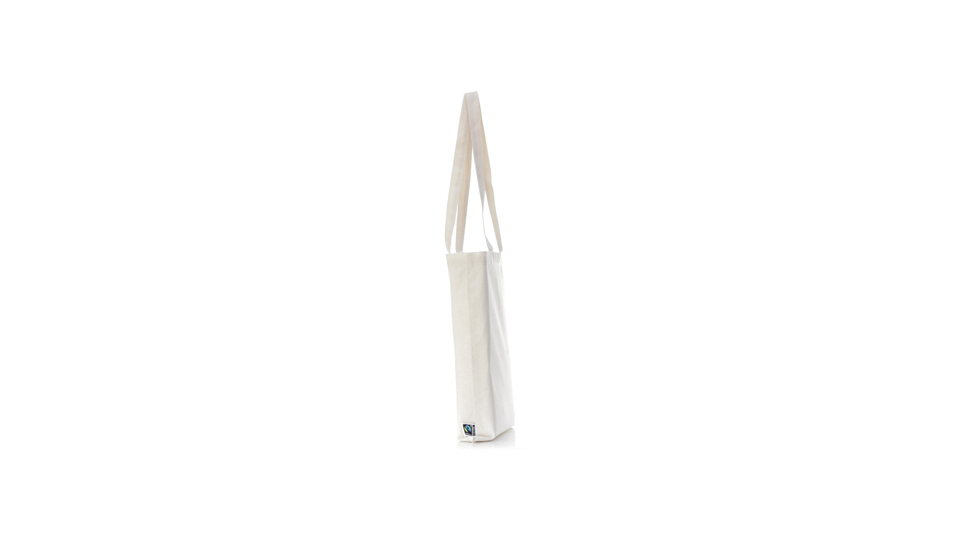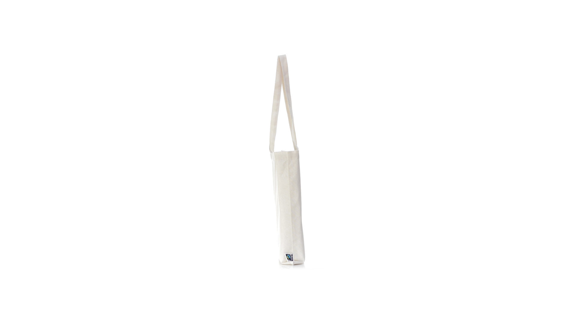 Linie "Natur" Tasche aus Baumwolle 180g/m2 in einem natürlichen Farbton. Mit Fairtrade-Zertifizierung, eine Alternative zum konventionellen Handelssystem, die die Entwicklung der Völker und den Kampf gegen die Armut verfolgt. Genäht, mit 70 cm langen Griffen und bis zu 7 kg belastbar. Inklusive Fairtrade-Label and der Tasche und Anhänger aus recyceltem Karton.