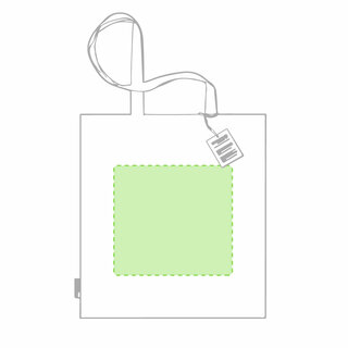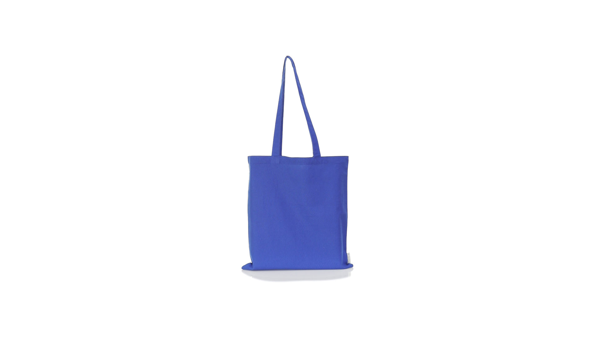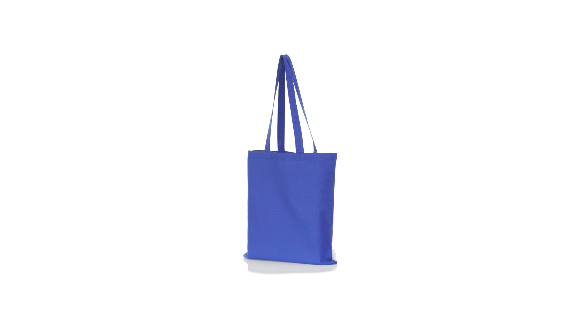 Tasche aus Bio-Baumwolle, 140g/m2. Genäht mit langen, verstärkten Griffen von 70 cm und in einer breiten Farbpalette erhältlich. Widerstandsfähigkeit bis zu 8 kg, einschliesslich Bio-Baumwolle Etikett und Hangtag aus recyceltem Karton.