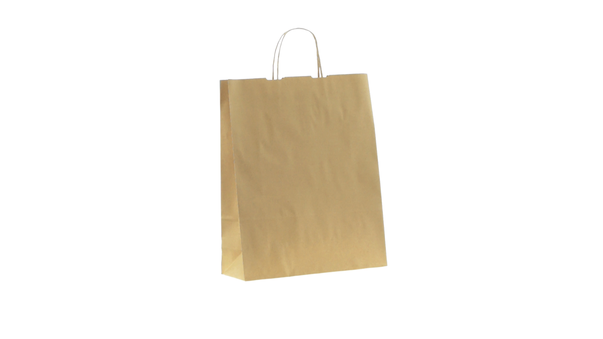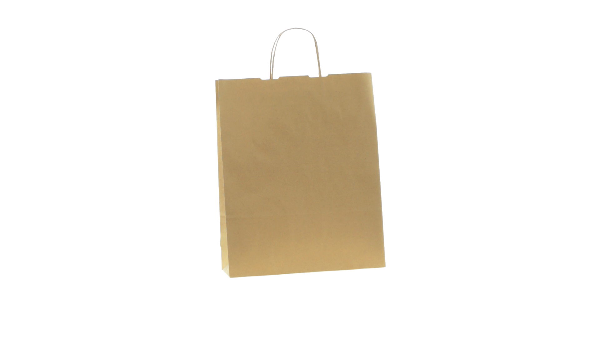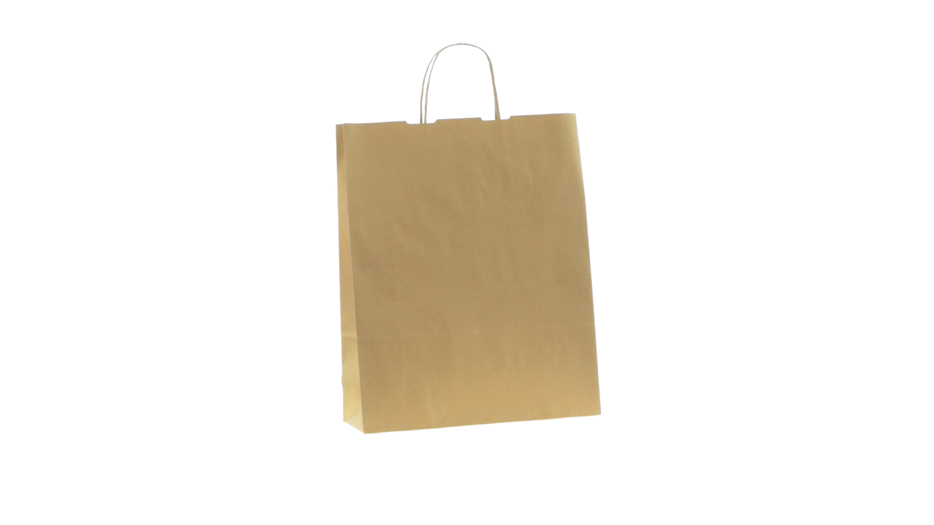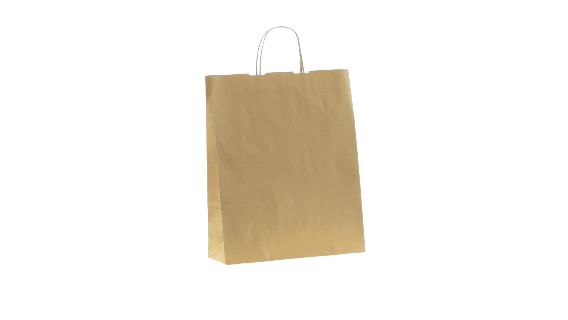 Tüte aus Papier (100 g/m2) in Naturfarbe mit kurzen, verstärkten Griffen und Zwickel. Belastbar mit bis zu 7 kg.
