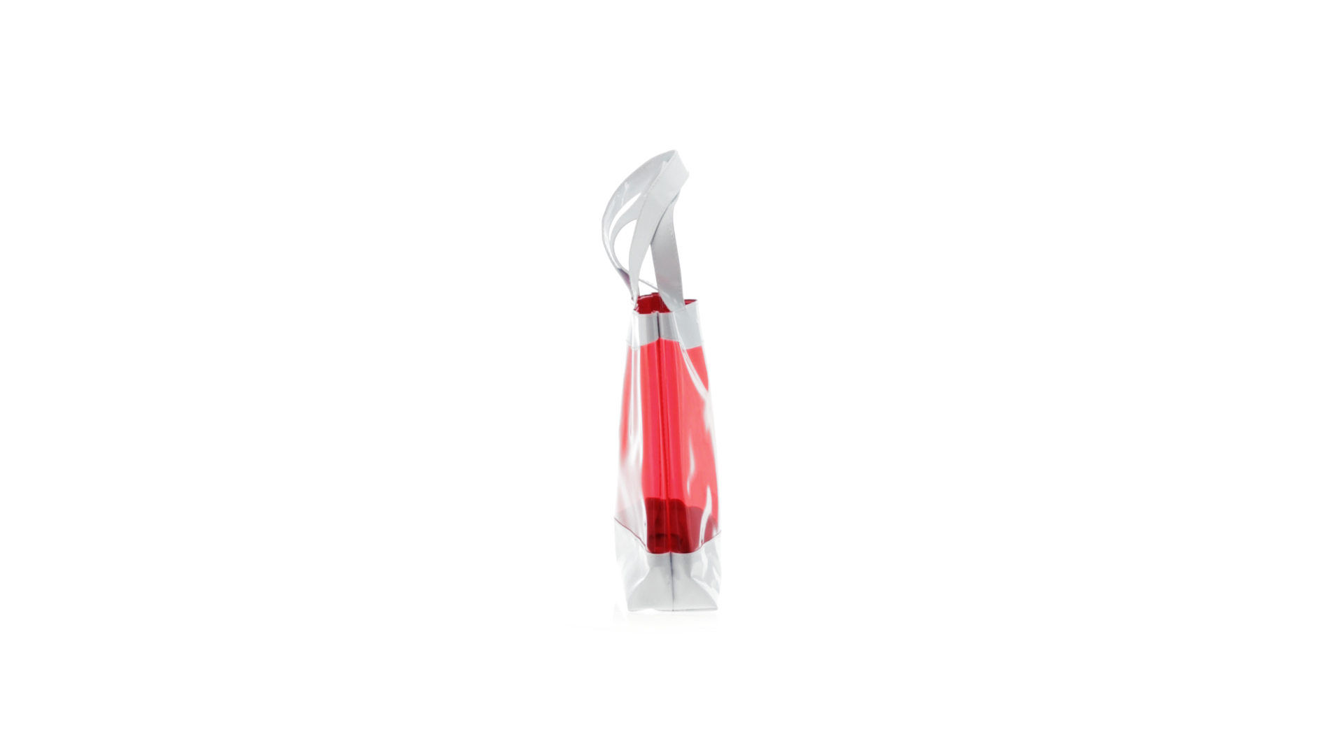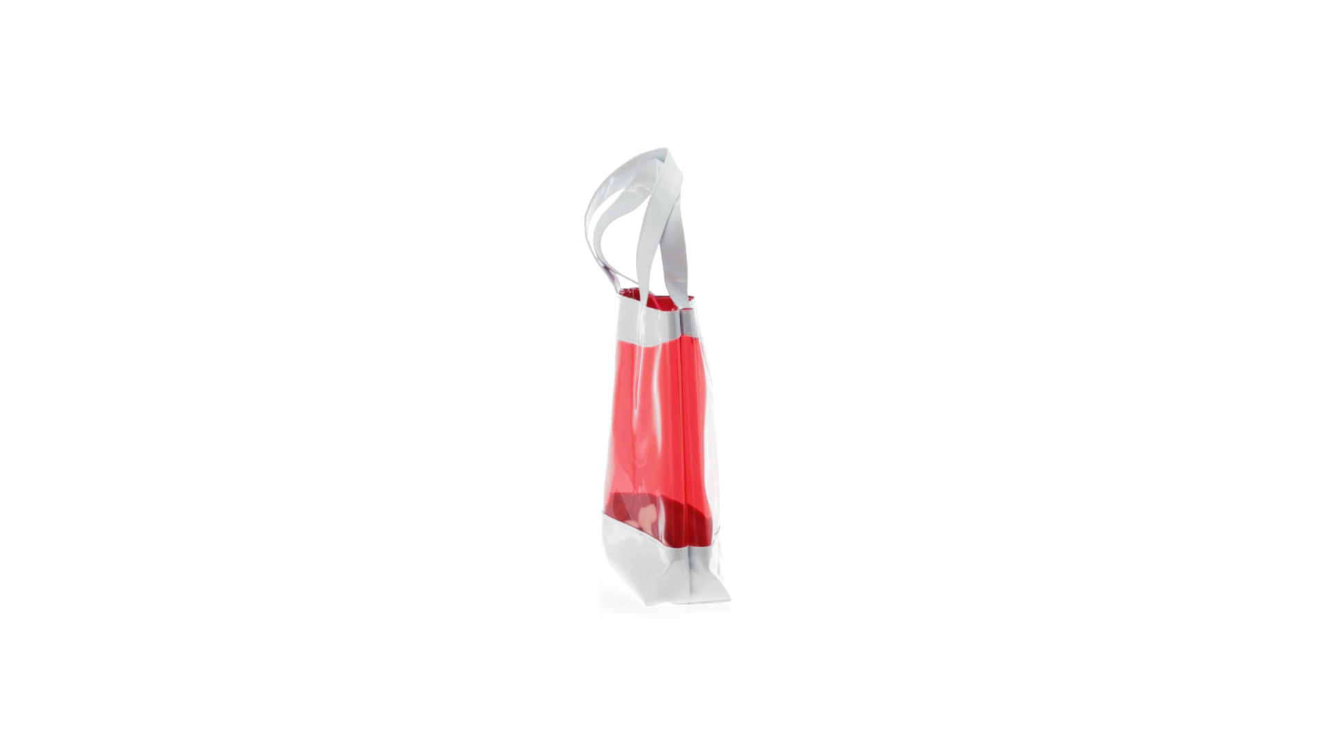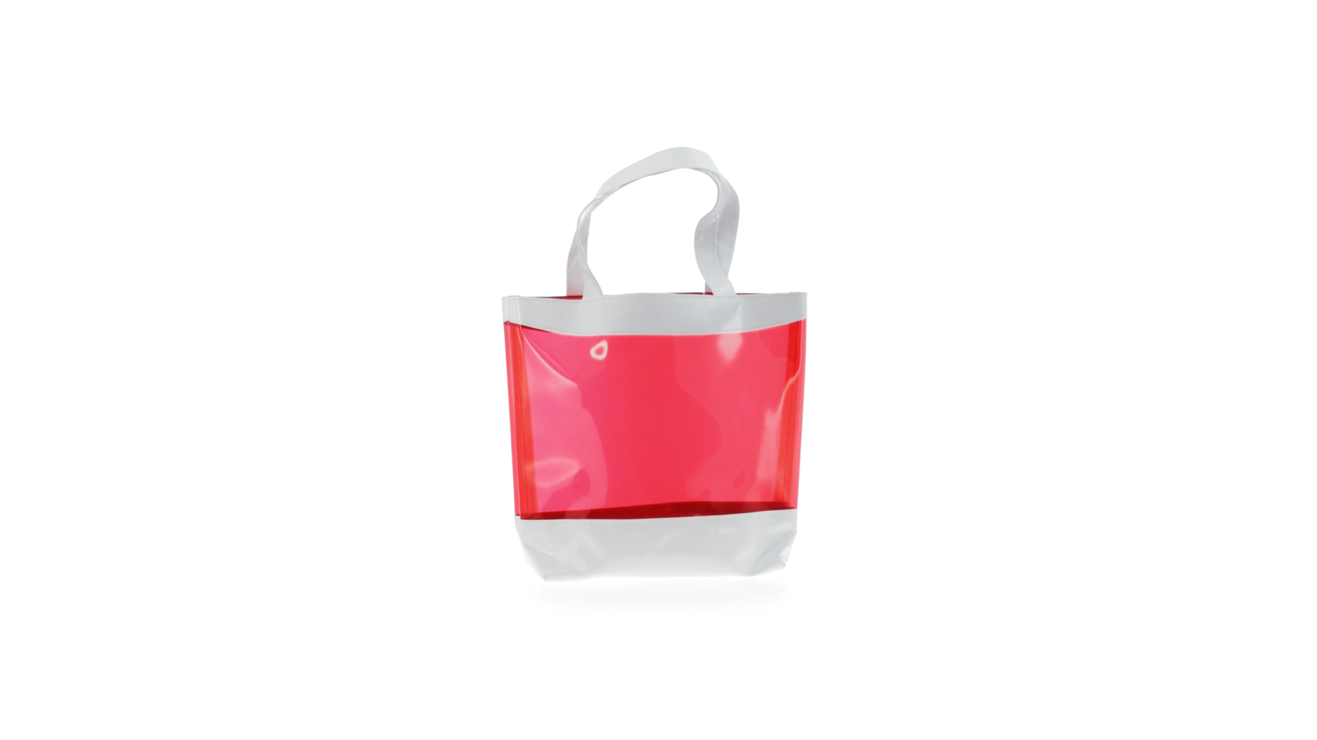 Originelle Tasche aus robustem PVC in kräftigen Farben, mit Boden und Henkeln in Weiss. Mit 41 cm langen Griffen, verstärktem Zwickel und Steppnähten. Belastbar mit bis zu 9 kg.