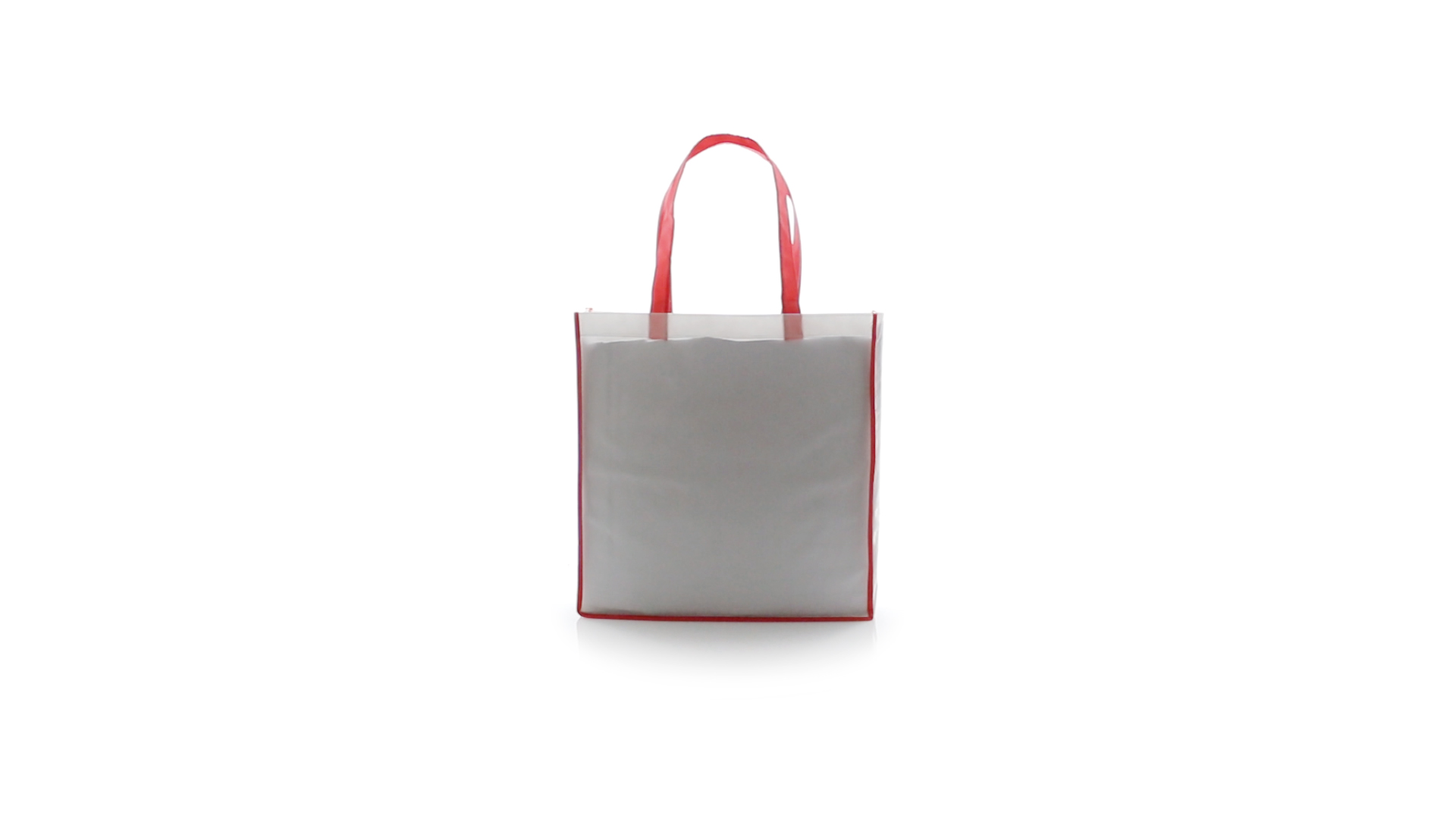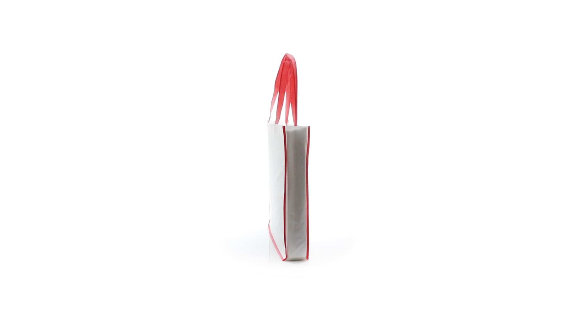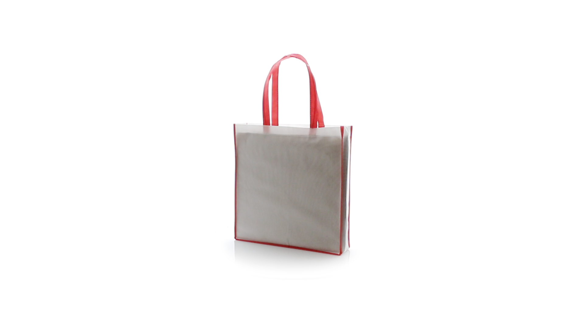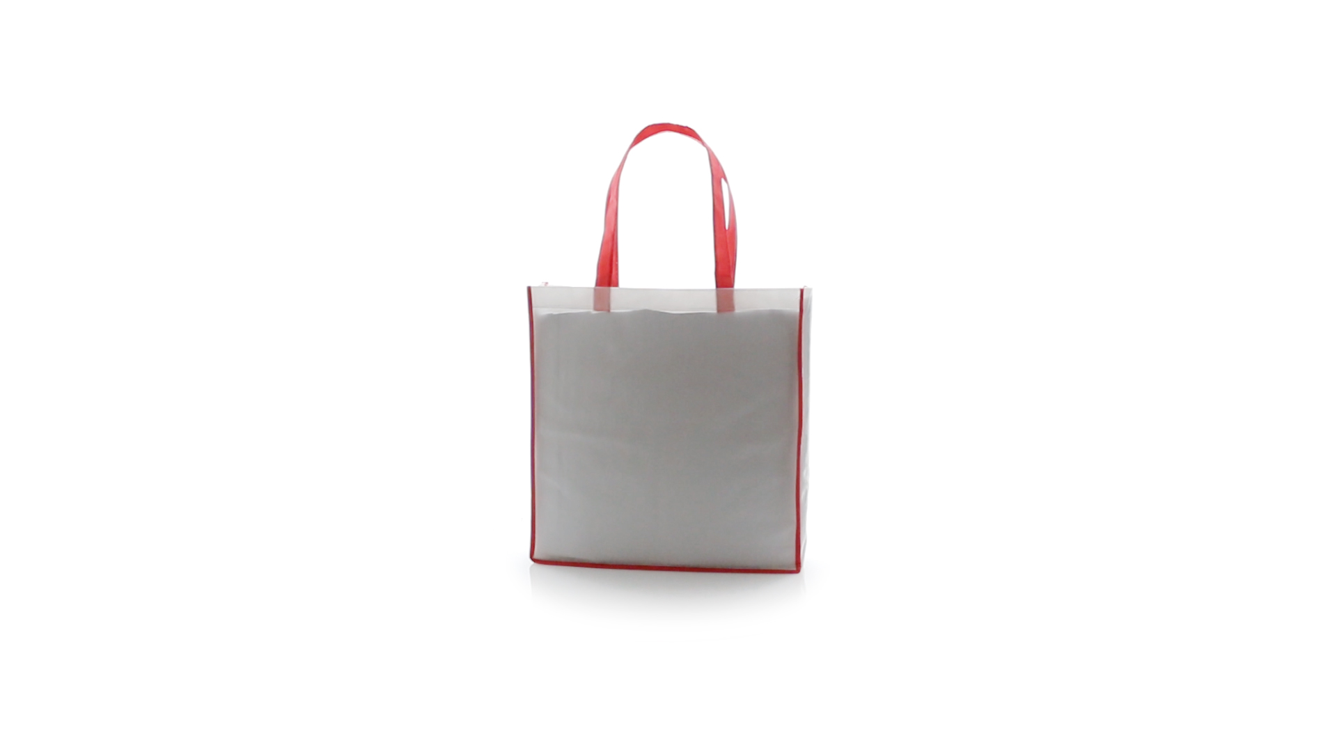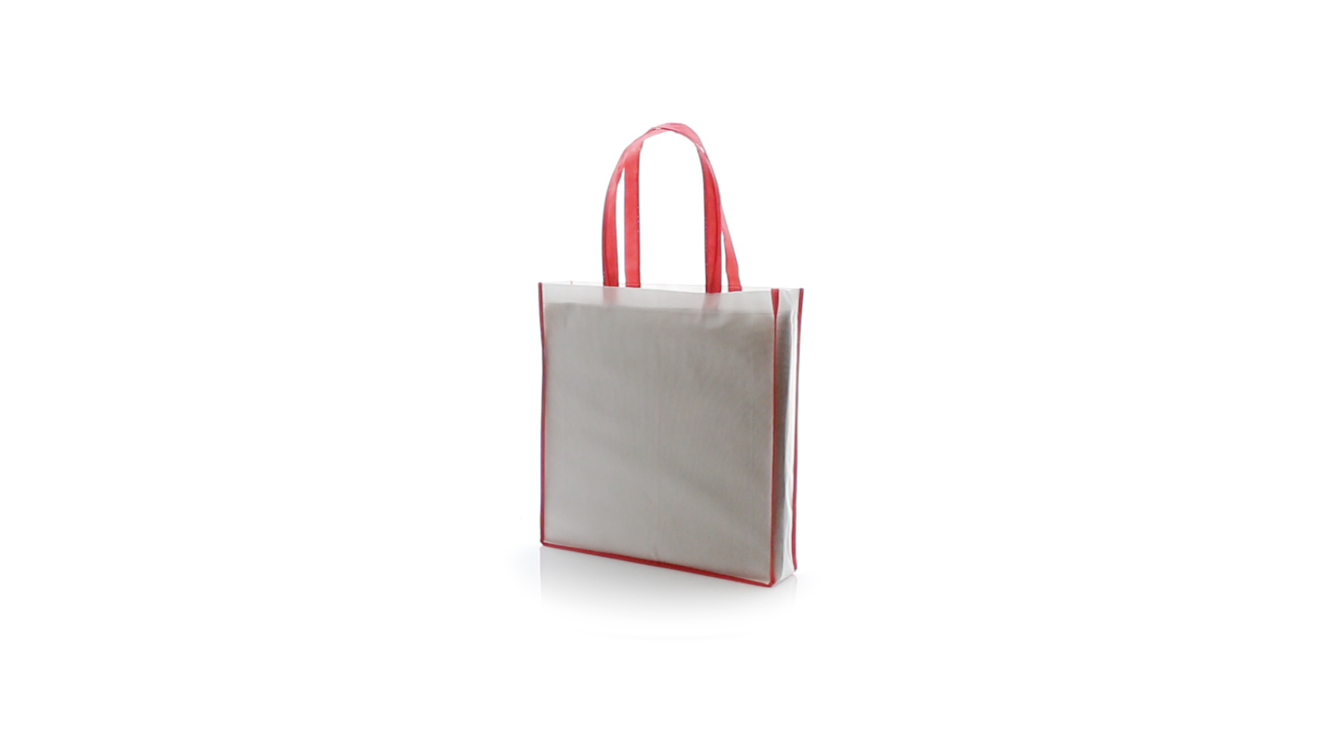 Non-Woven-Tasche aus Faservlies (90 g/m2) in Weiss mit Paspel und Griffen in verschiedenen kräftigen Farben. Mit mittellangen, verstärkten Henkeln von 53 cm Länge, verstärktem Zwickel sowie farblich passender Paspel und Steppnähten. Belastbar mit bis zu 9 kg.