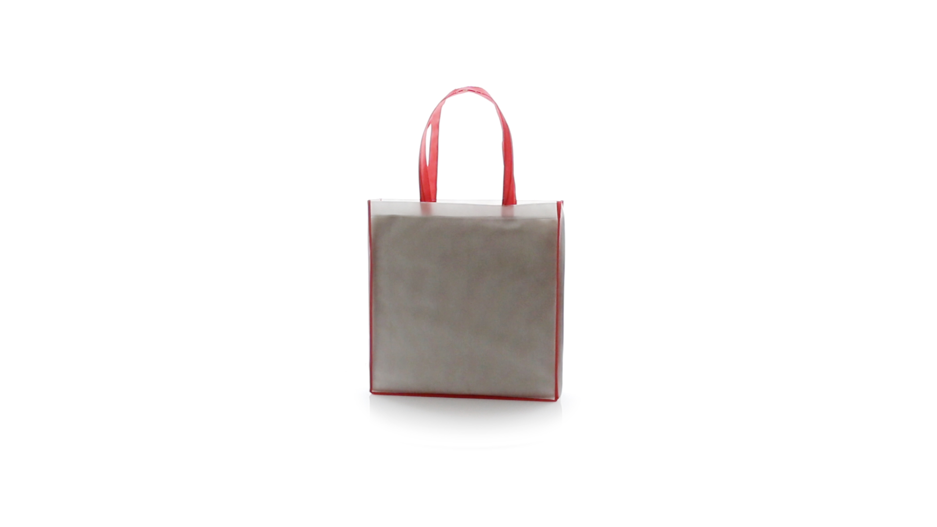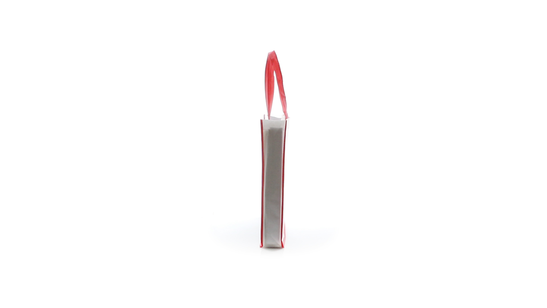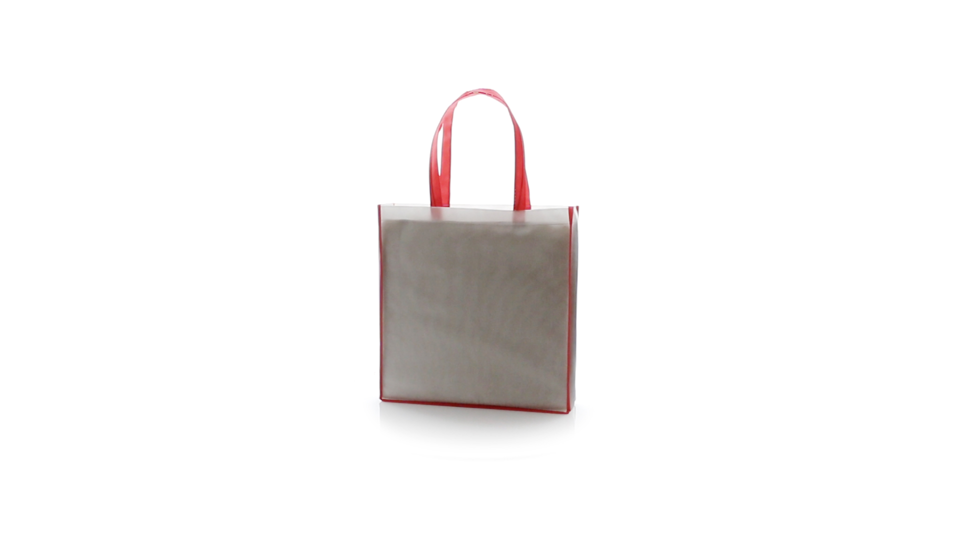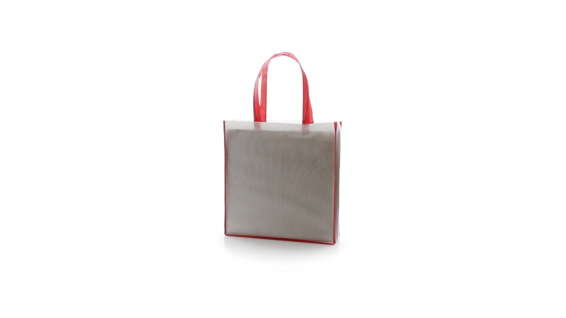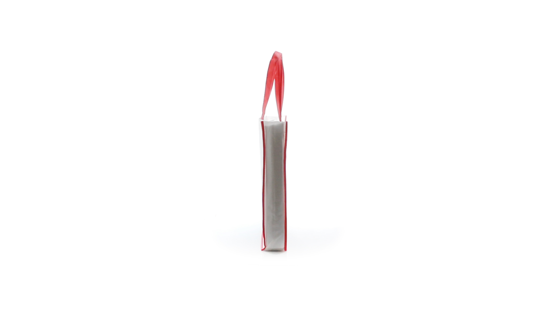 Non-Woven-Tasche aus Faservlies (90 g/m2) in Weiss mit Paspel und Griffen in verschiedenen kräftigen Farben. Mit mittellangen, verstärkten Henkeln von 53 cm Länge, verstärktem Zwickel sowie farblich passender Paspel und Steppnähten. Belastbar mit bis zu 9 kg.