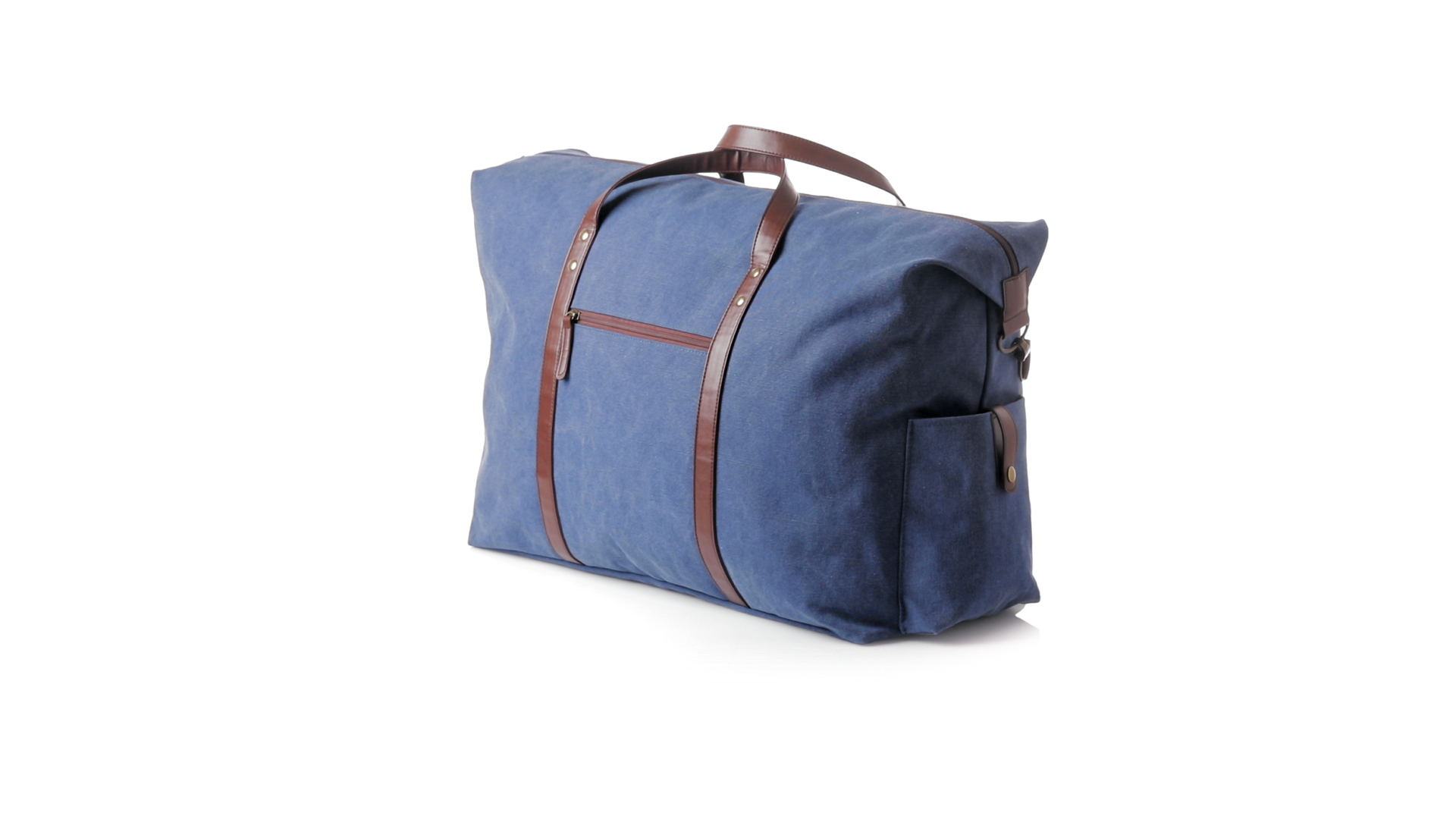 Elegante Tasche aus widerstandsfähigem 480g/m2 Canvas, mit praktischen und widerstandsfähigen PU-Ledergriffen rund um die Tasche. Hauptfach mit Reissverschluss, passende Griffe und verstellbarer Schultergurt mit Karabiner. Leicht zugängliche Aussentasche inklusive.