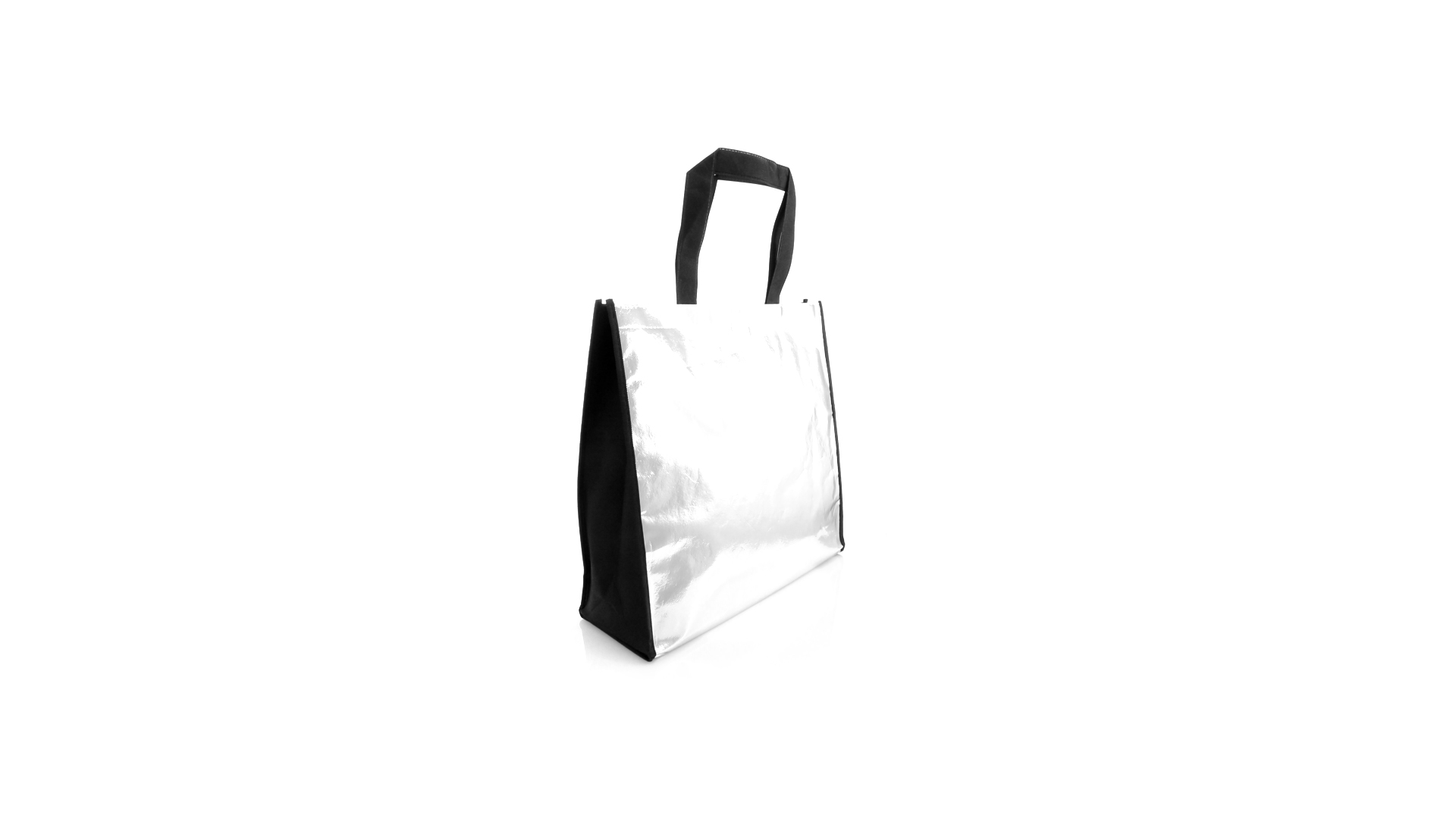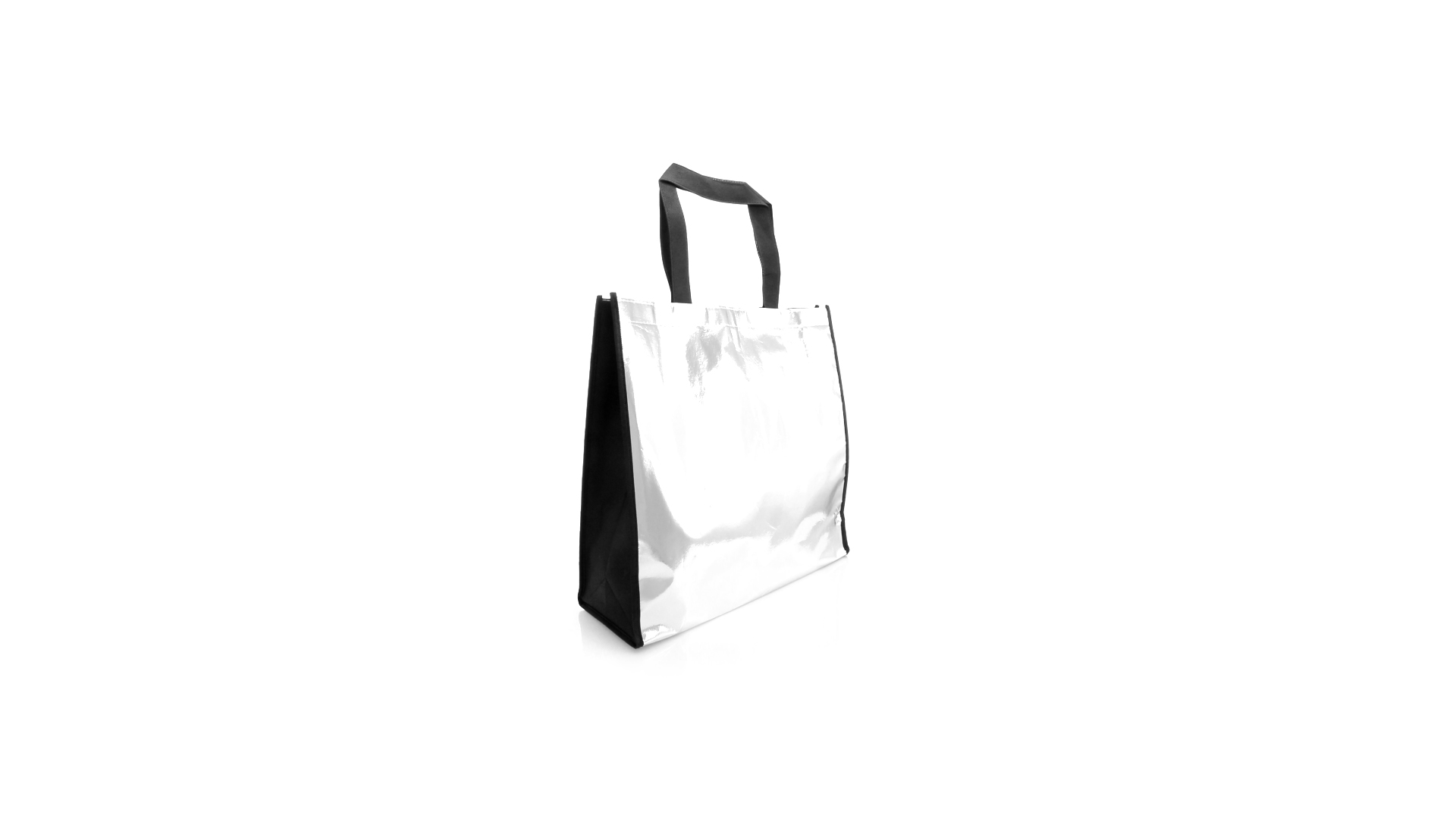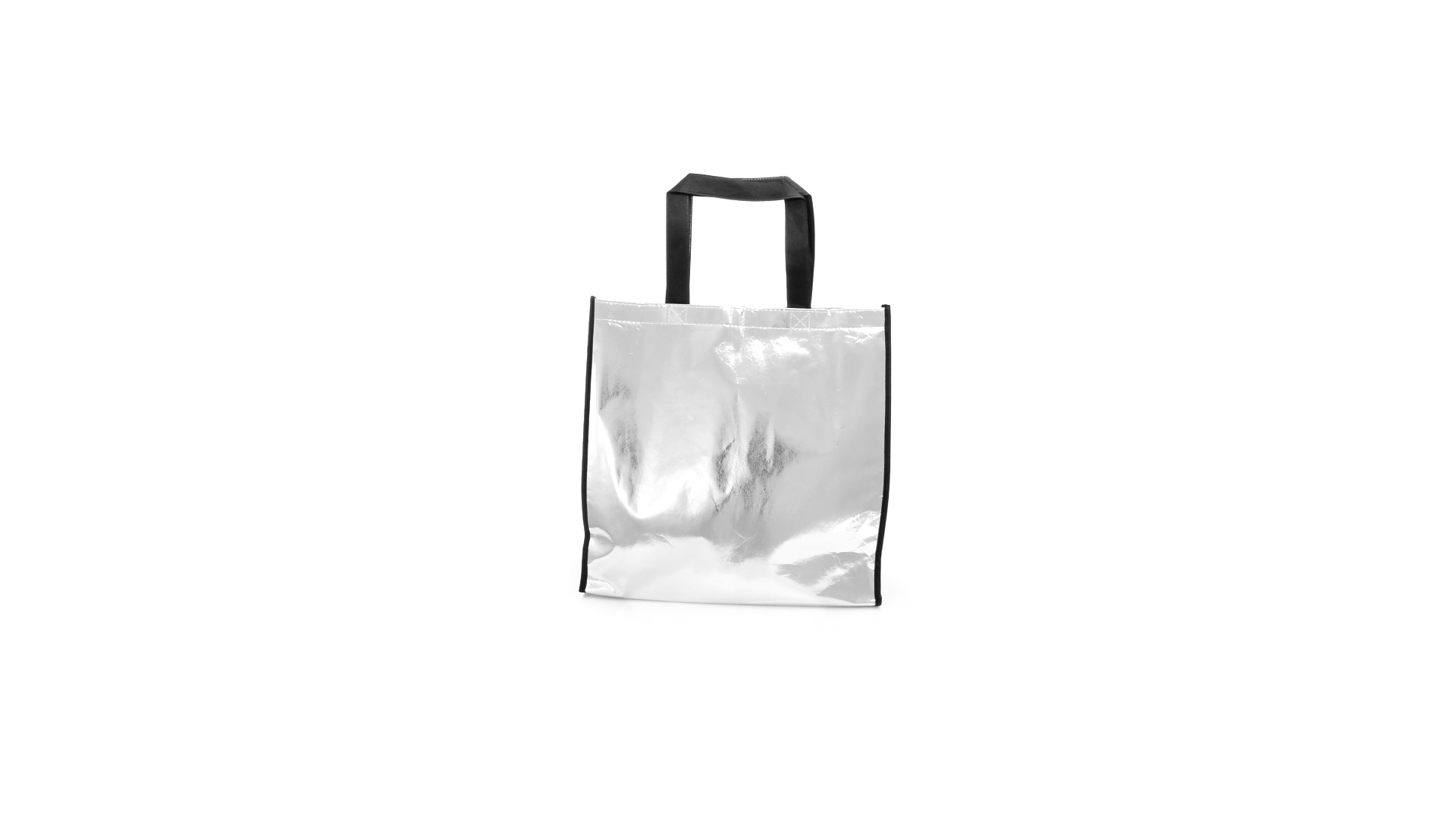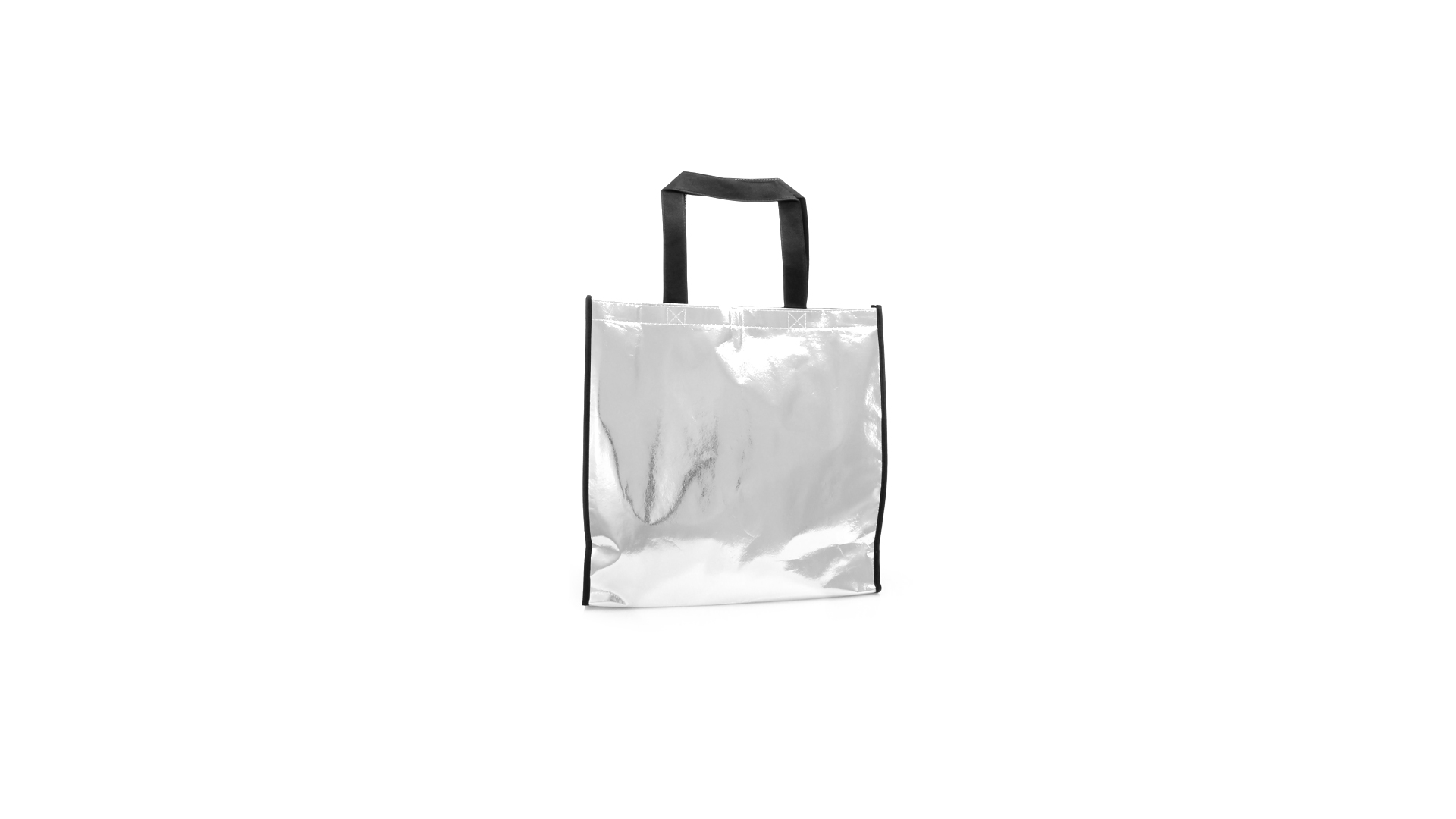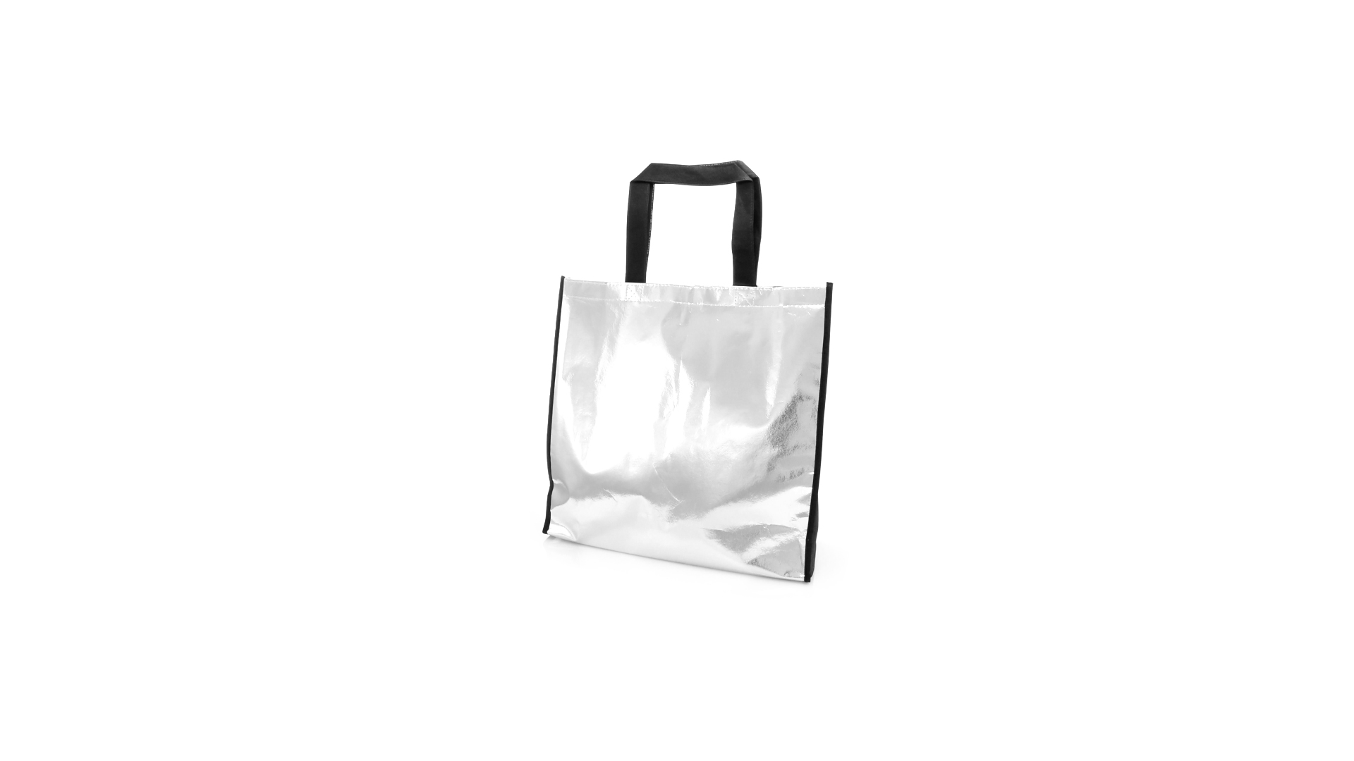 Non-Woven-Tasche aus laminiertem Faservlies (120 g/m2) in Metallic-Ausführung. Tasche in Silber mit Henkeln und Zwickel in einer Vielzahl von kräftigen Farben. Mit 55 cm langen, verstärkten Henkeln sowie verstärktem Zwickel und Steppnähten. Belastbar mit bis zu 9 kg.