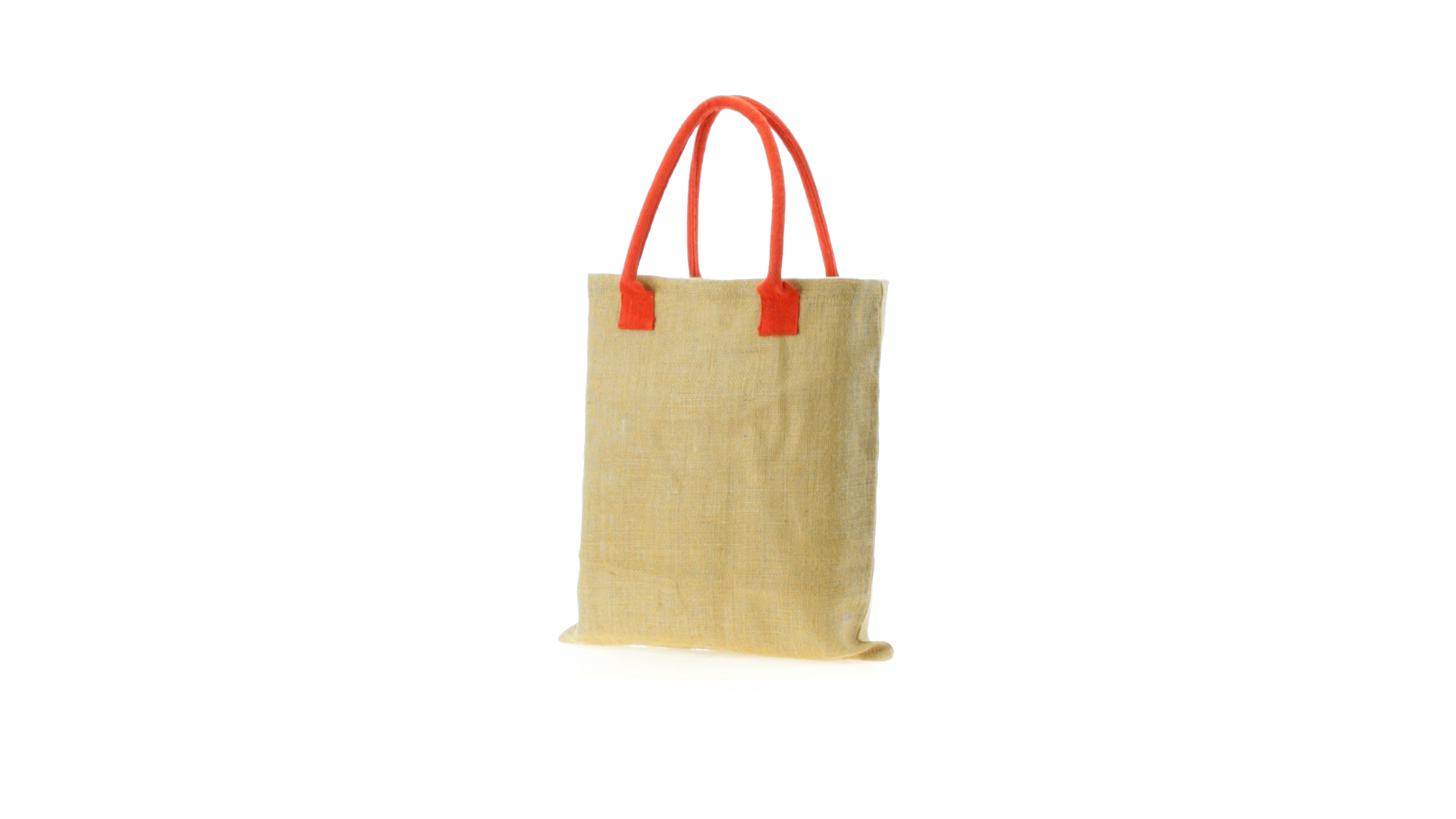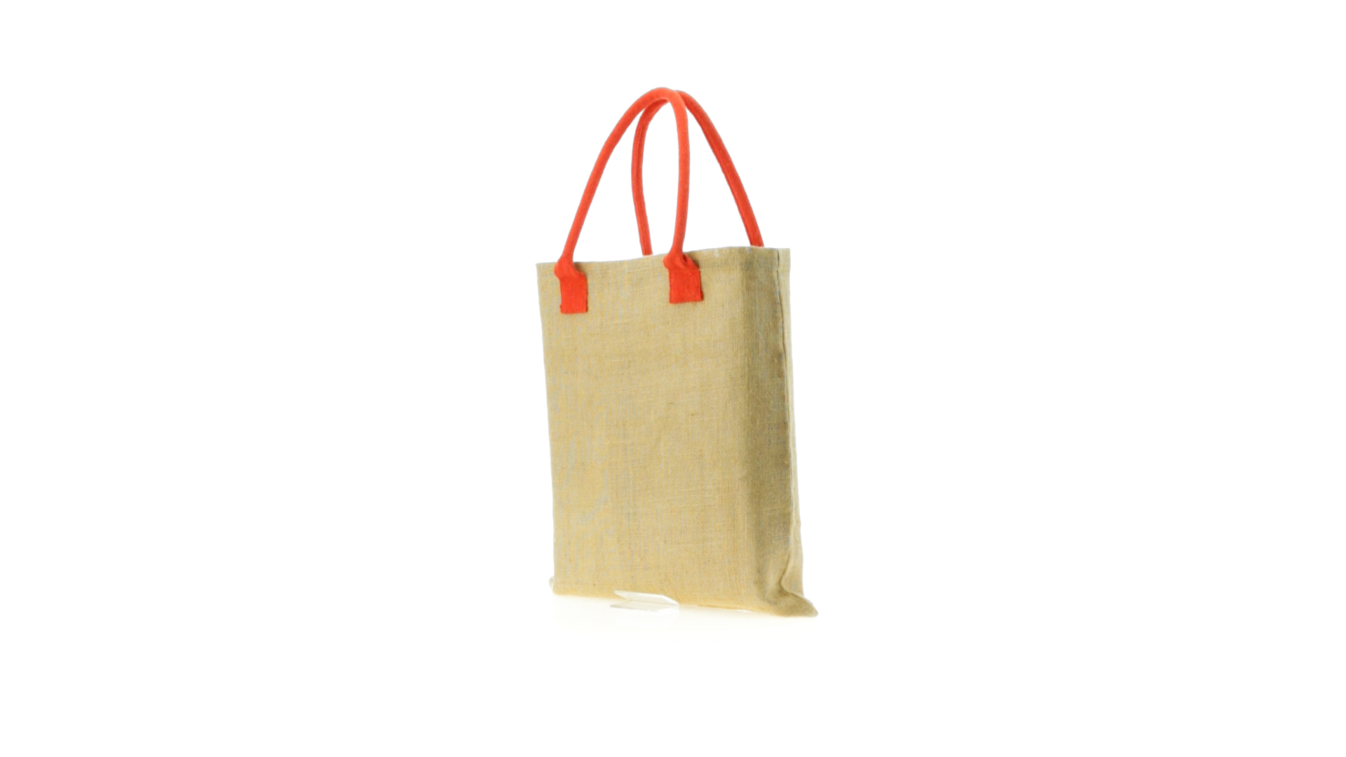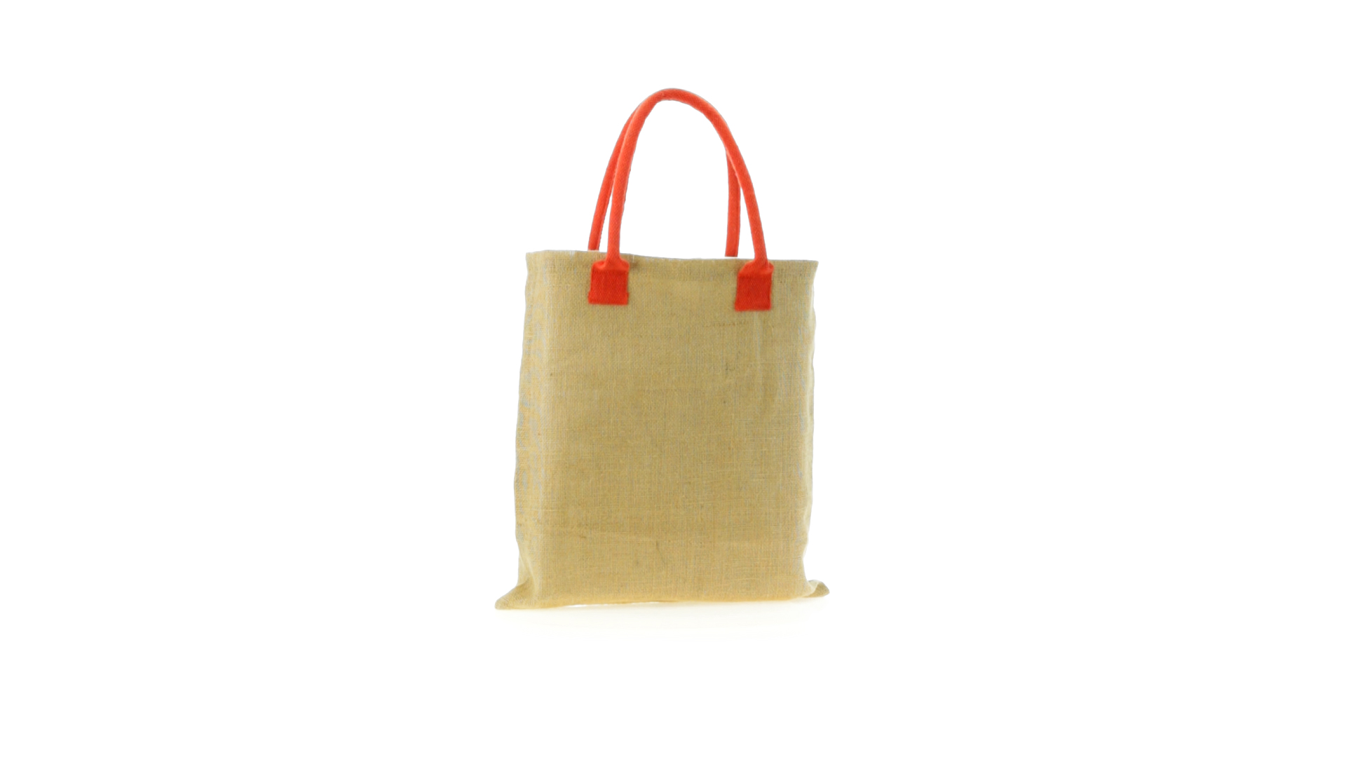 Jutetasche mit mittellangen, verstärkten Griffen aus Baumwolle in verschiedenen lebendigen Farben. Belastbar mit bis zu 9 kg.