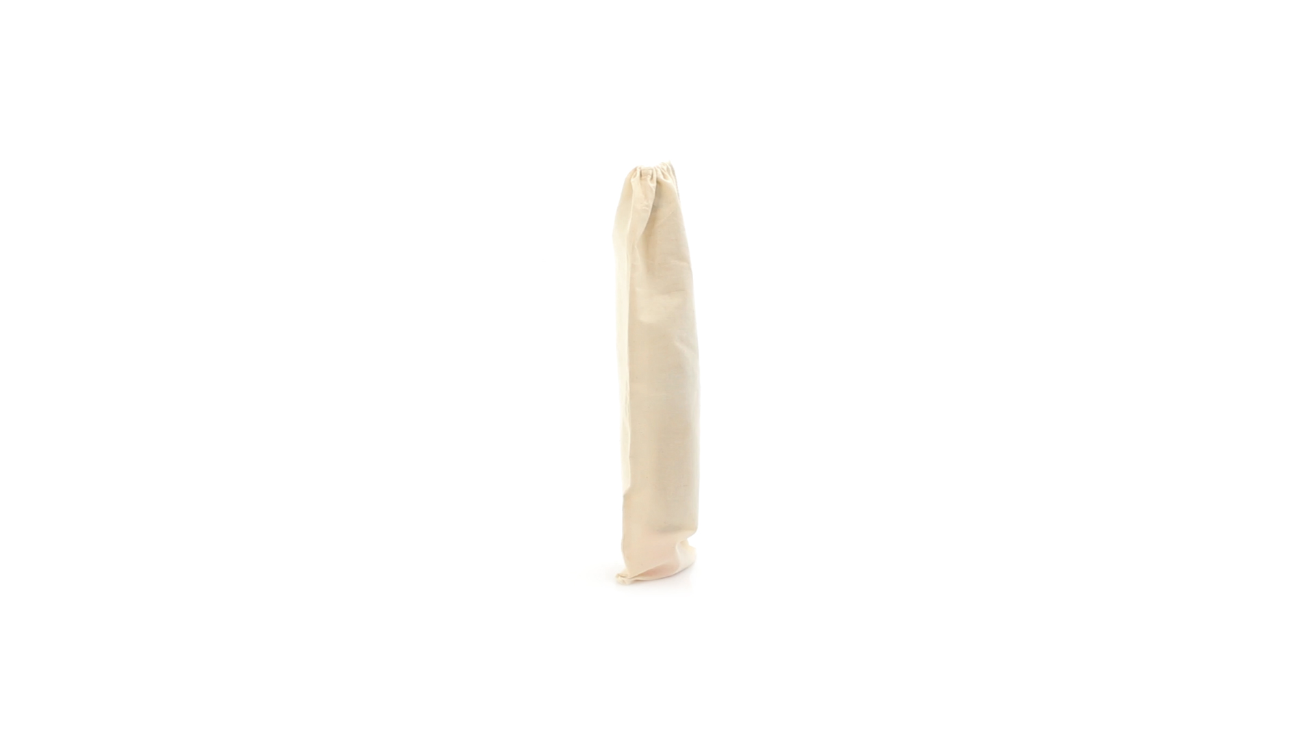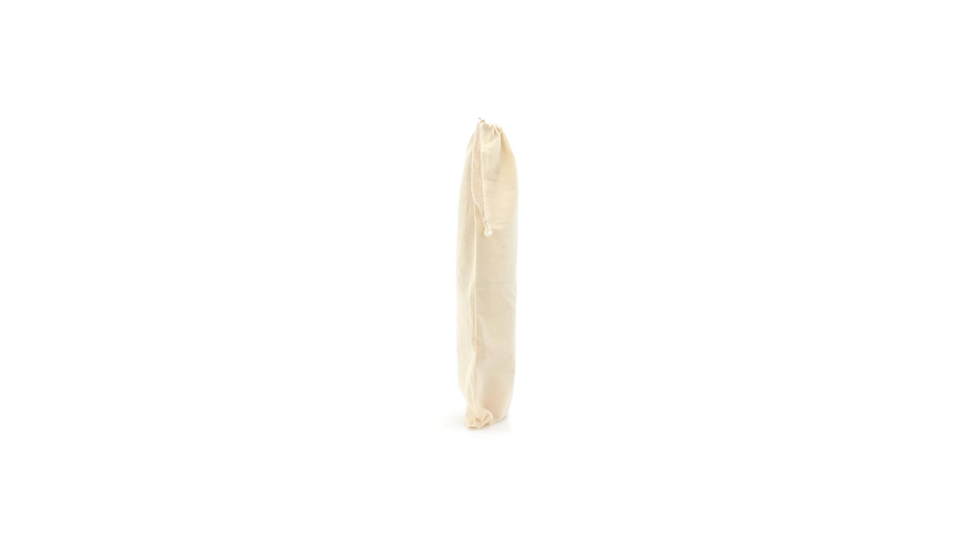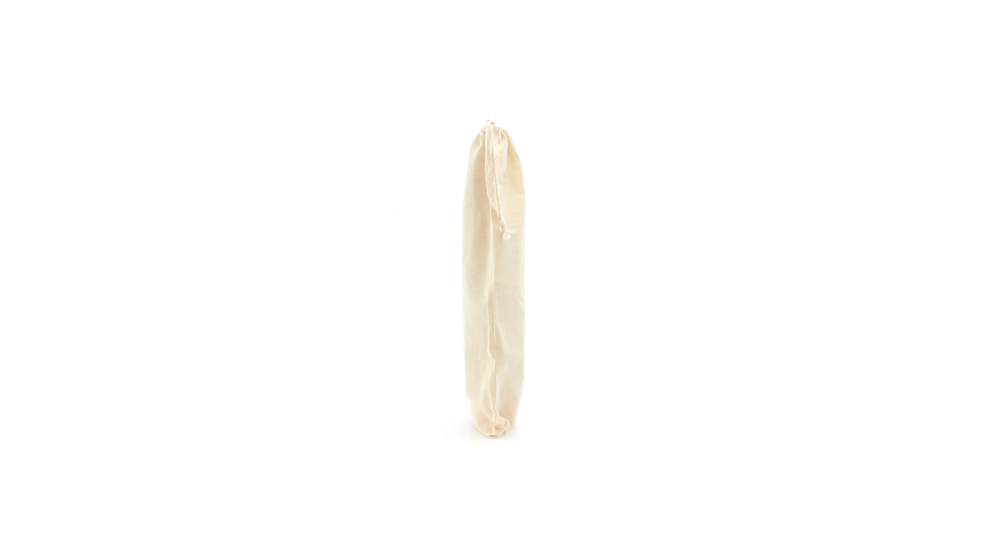 Brotbeutel aus natürlicher Baumwolle mit farblich passendem Kordelzug und Steppnähten.