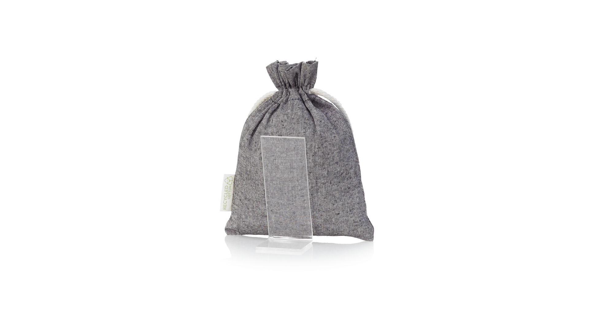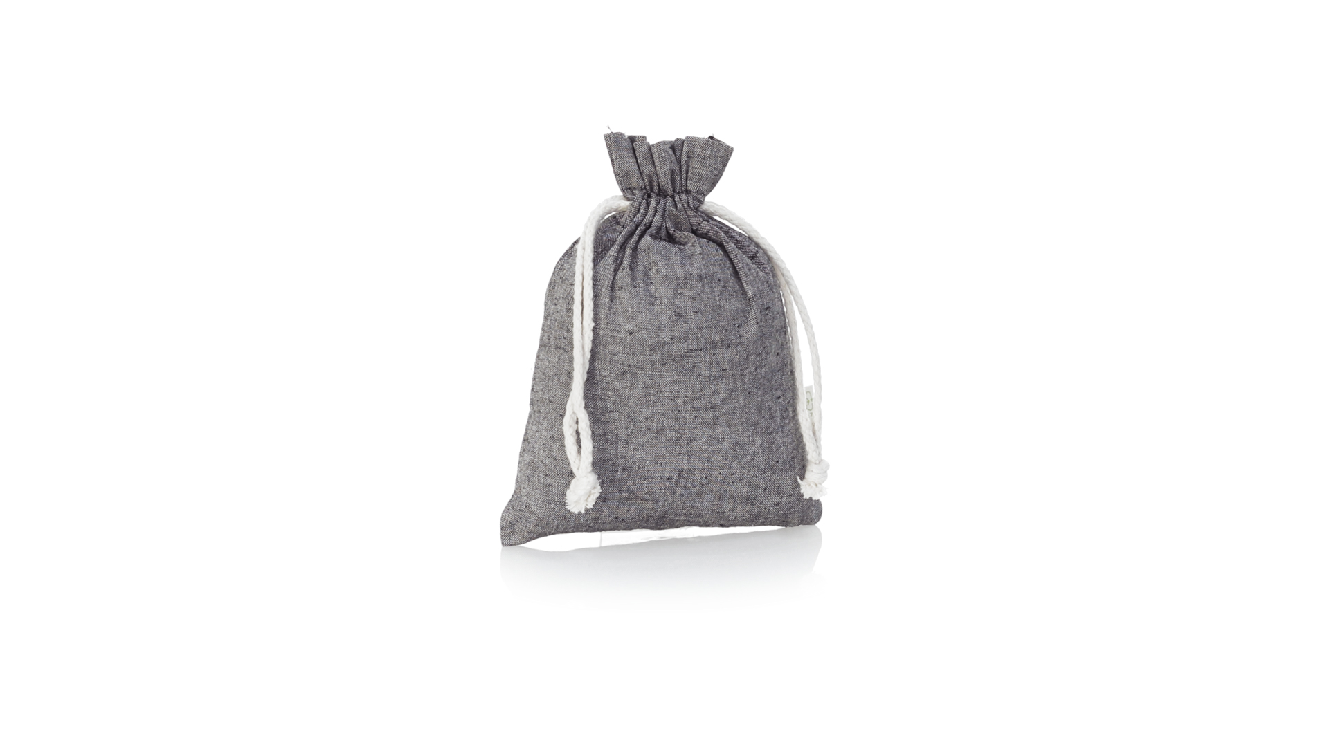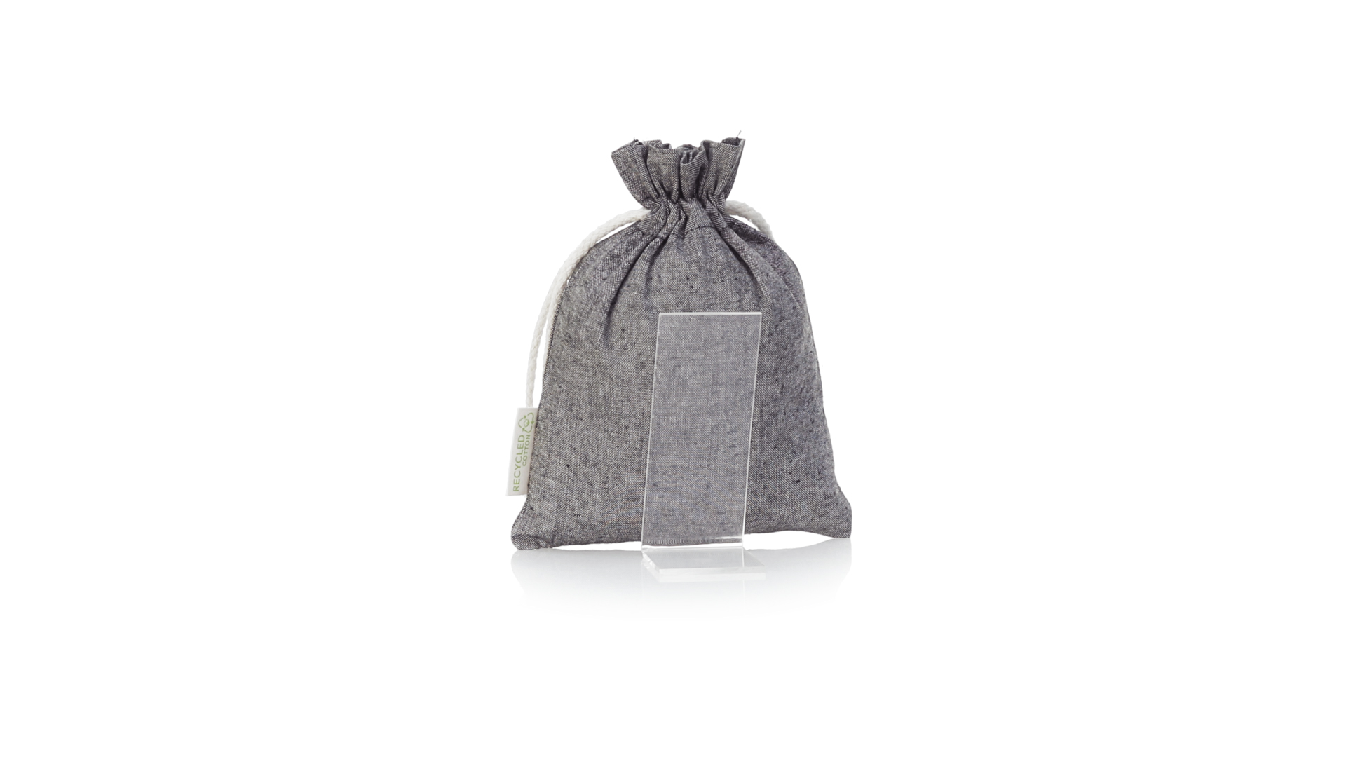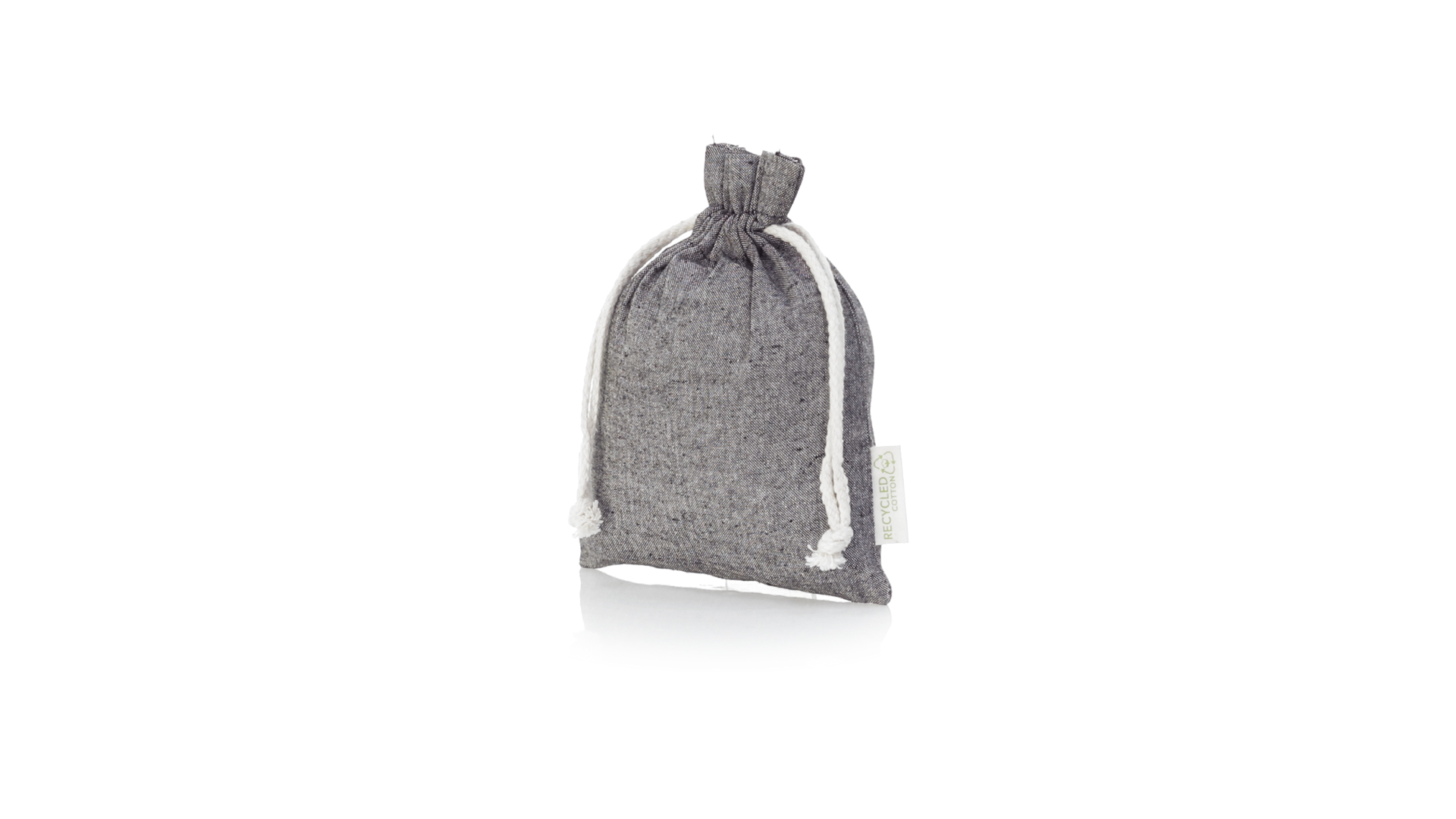 Umweltfreundliche Tasche aus widerstandsfähigem, recyceltem Baumwollmaterial von 120 g/m2. GRS-Zertifizierung (Global Recycled Standard), die die recycelte Herkunft des für die Herstellung des Produkts verwendeten Materials garantiert. Kordelzugverschluss aus Baumwolle und genähtes Finish, einschliesslich Aussenetikett mit Logo aus recycelter Baumwolle.