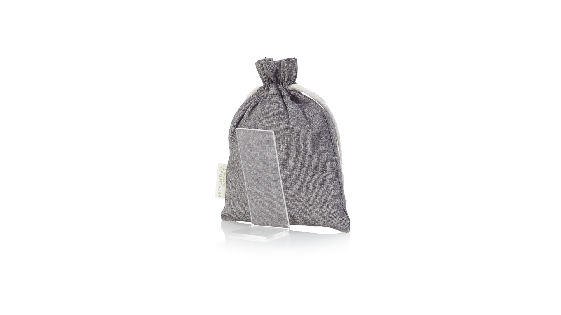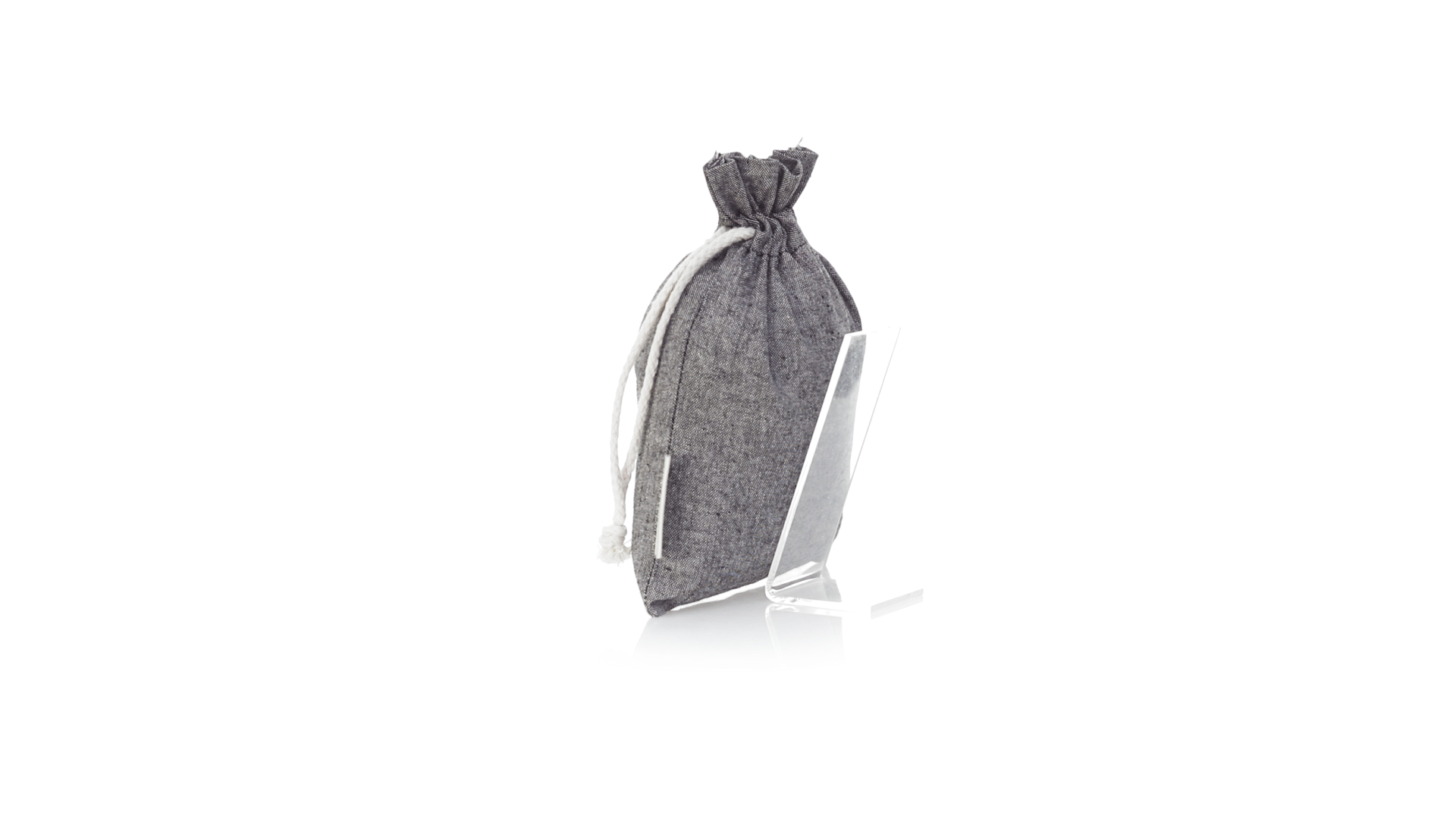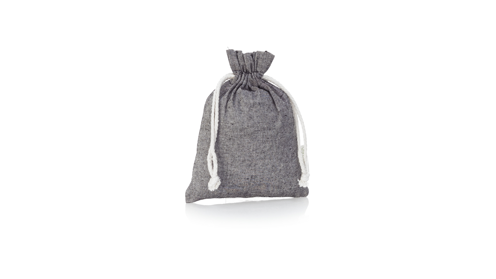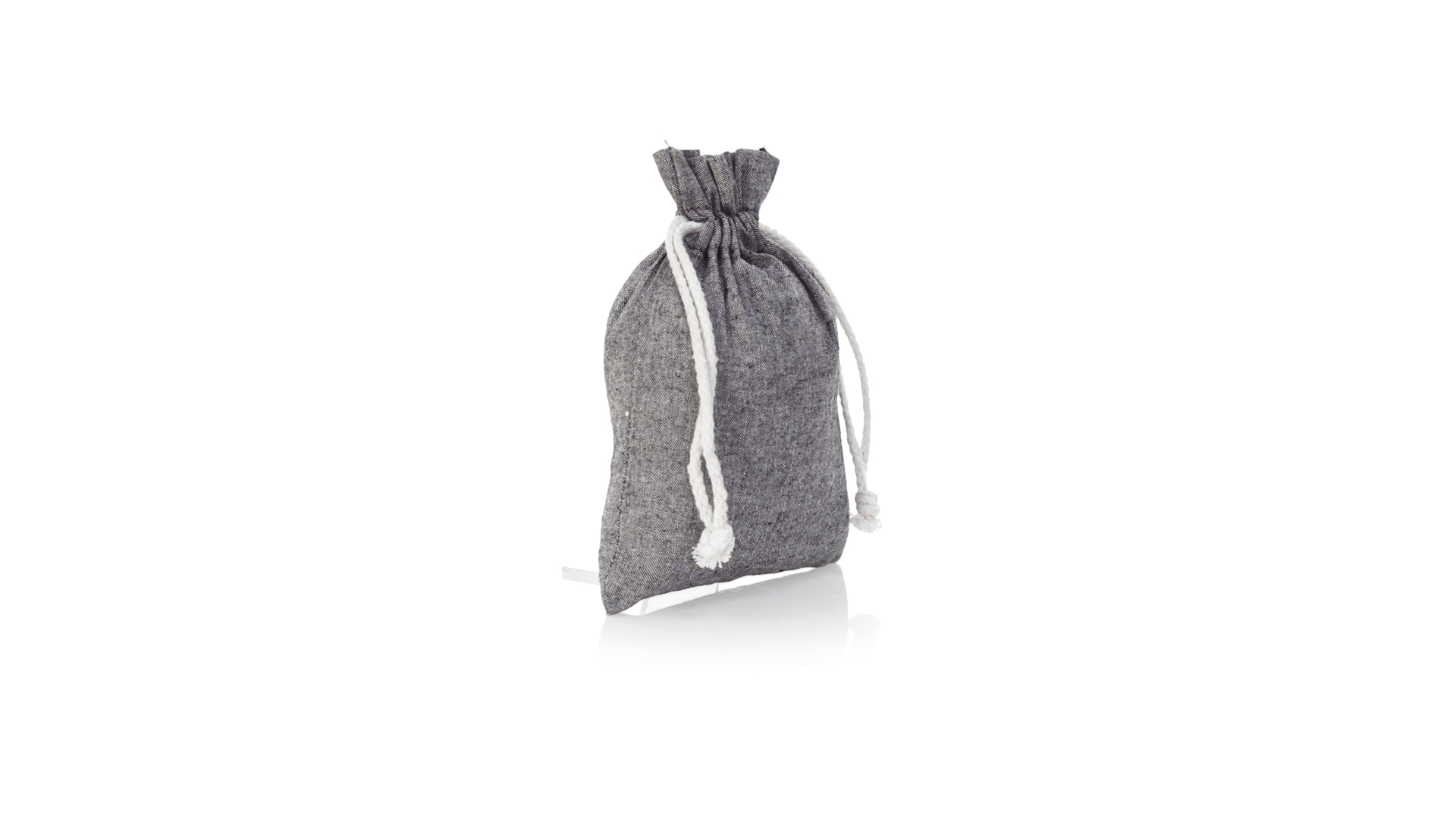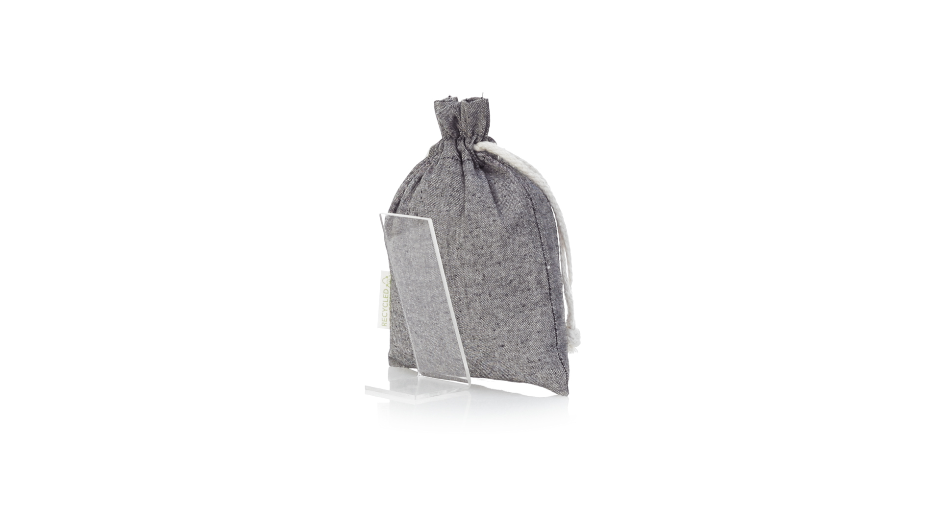 Umweltfreundliche Tasche aus widerstandsfähigem, recyceltem Baumwollmaterial von 120 g/m2. GRS-Zertifizierung (Global Recycled Standard), die die recycelte Herkunft des für die Herstellung des Produkts verwendeten Materials garantiert. Kordelzugverschluss aus Baumwolle und genähtes Finish, einschliesslich Aussenetikett mit Logo aus recycelter Baumwolle.