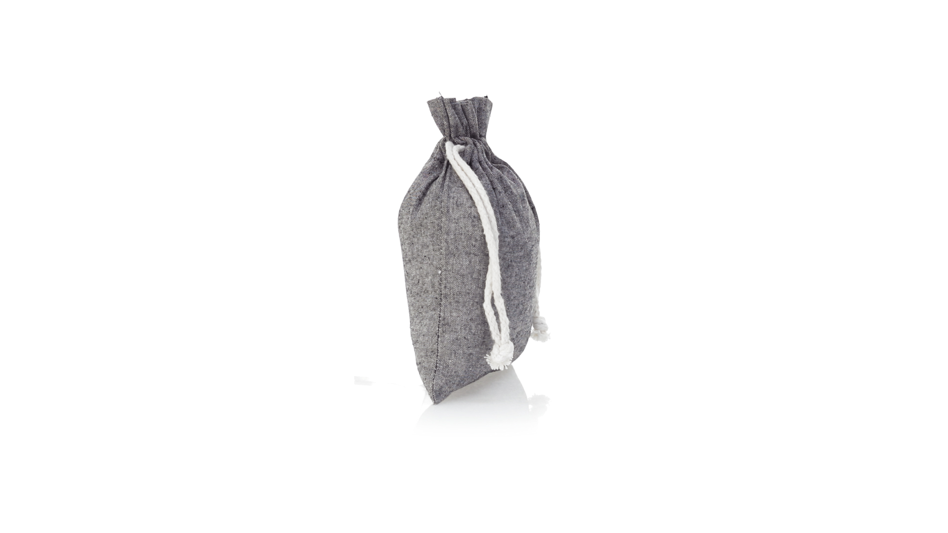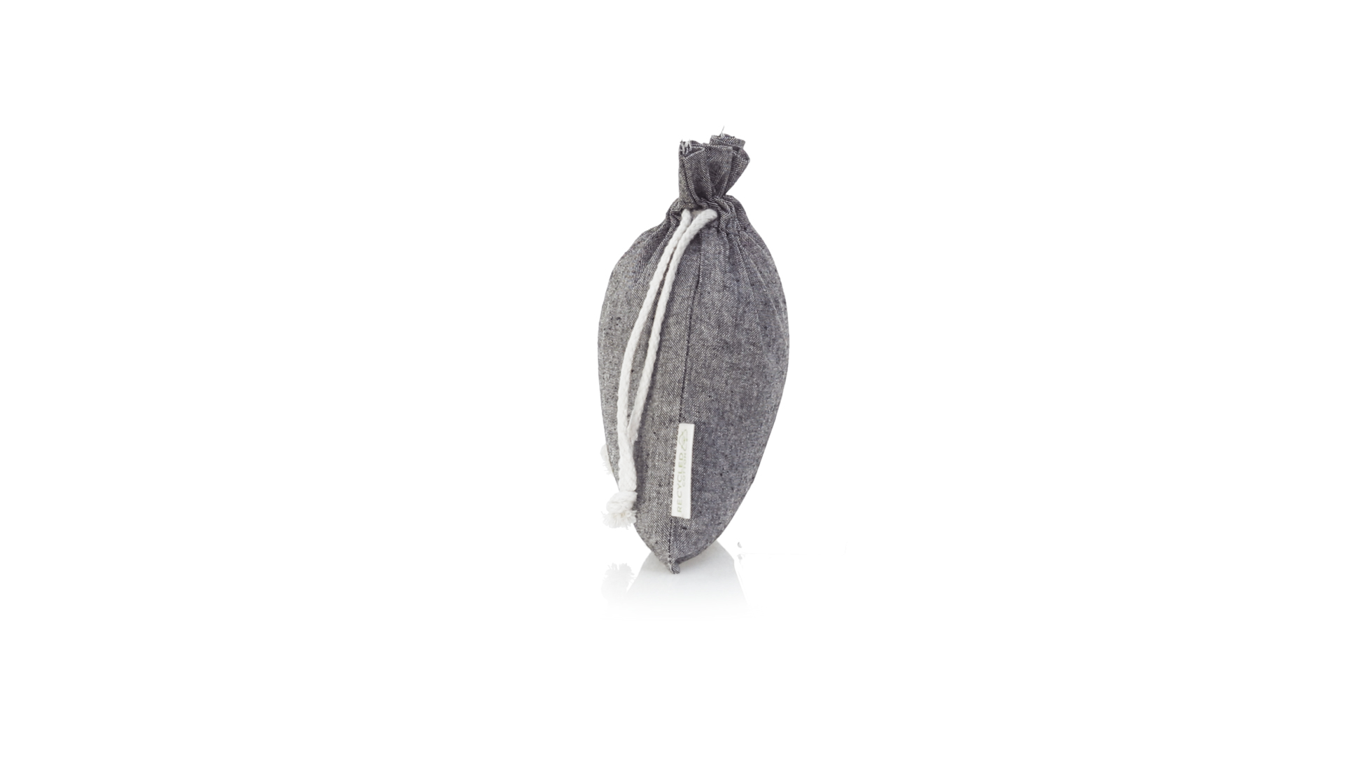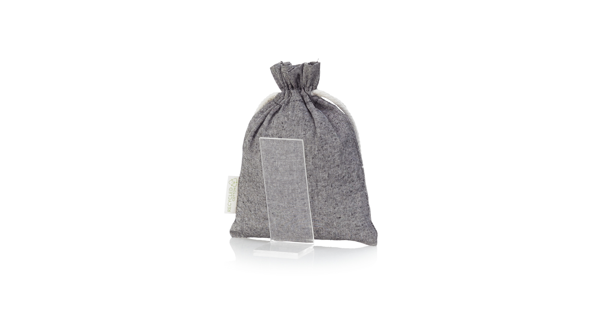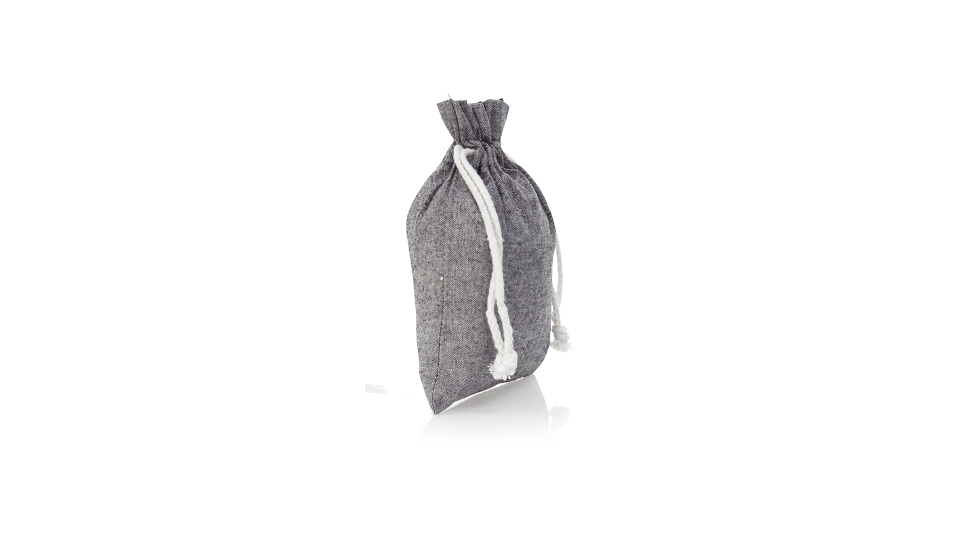Umweltfreundliche Tasche aus widerstandsfähigem, recyceltem Baumwollmaterial von 120 g/m2. GRS-Zertifizierung (Global Recycled Standard), die die recycelte Herkunft des für die Herstellung des Produkts verwendeten Materials garantiert. Kordelzugverschluss aus Baumwolle und genähtes Finish, einschliesslich Aussenetikett mit Logo aus recycelter Baumwolle.