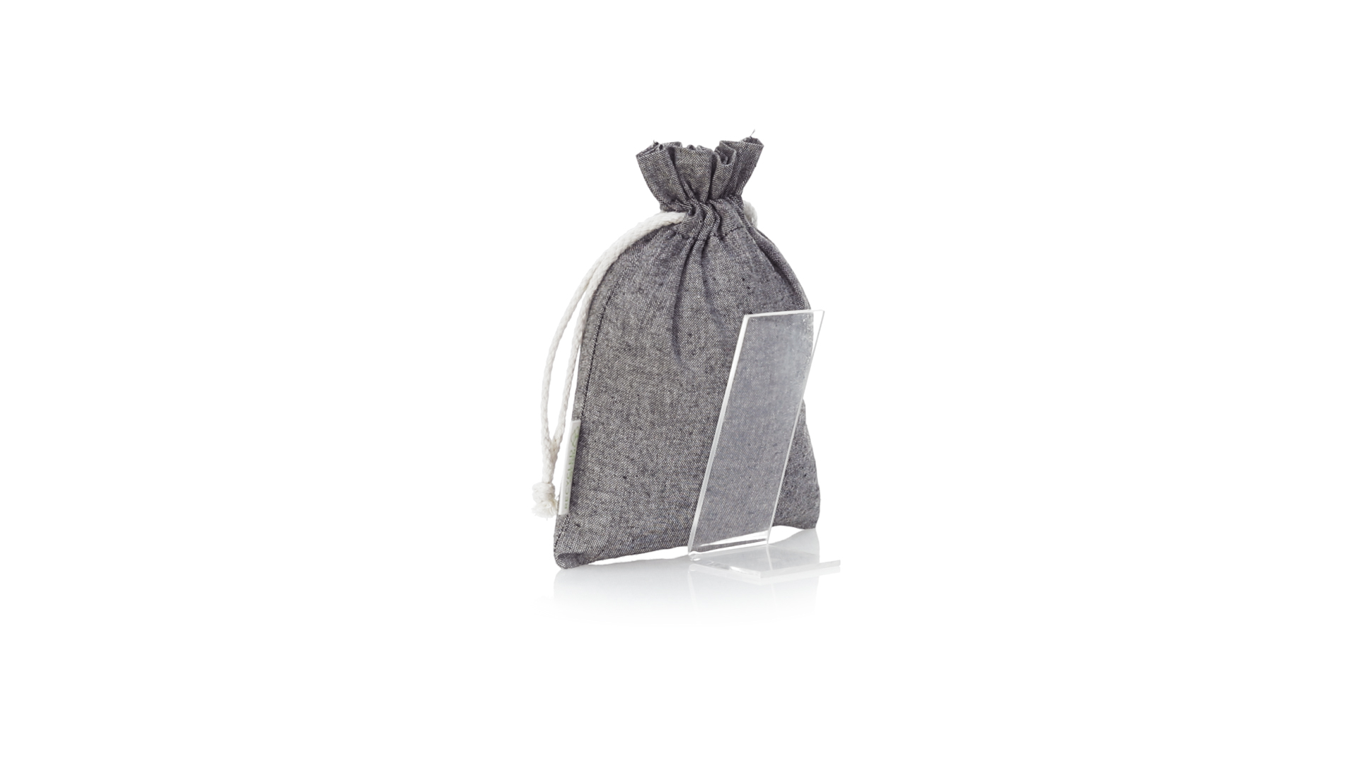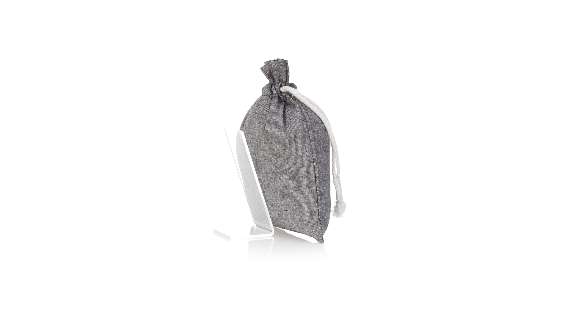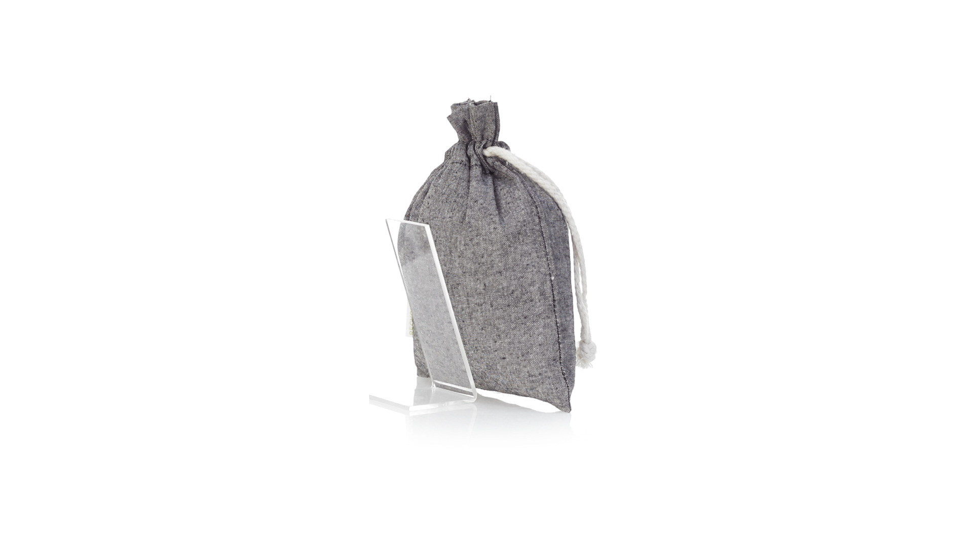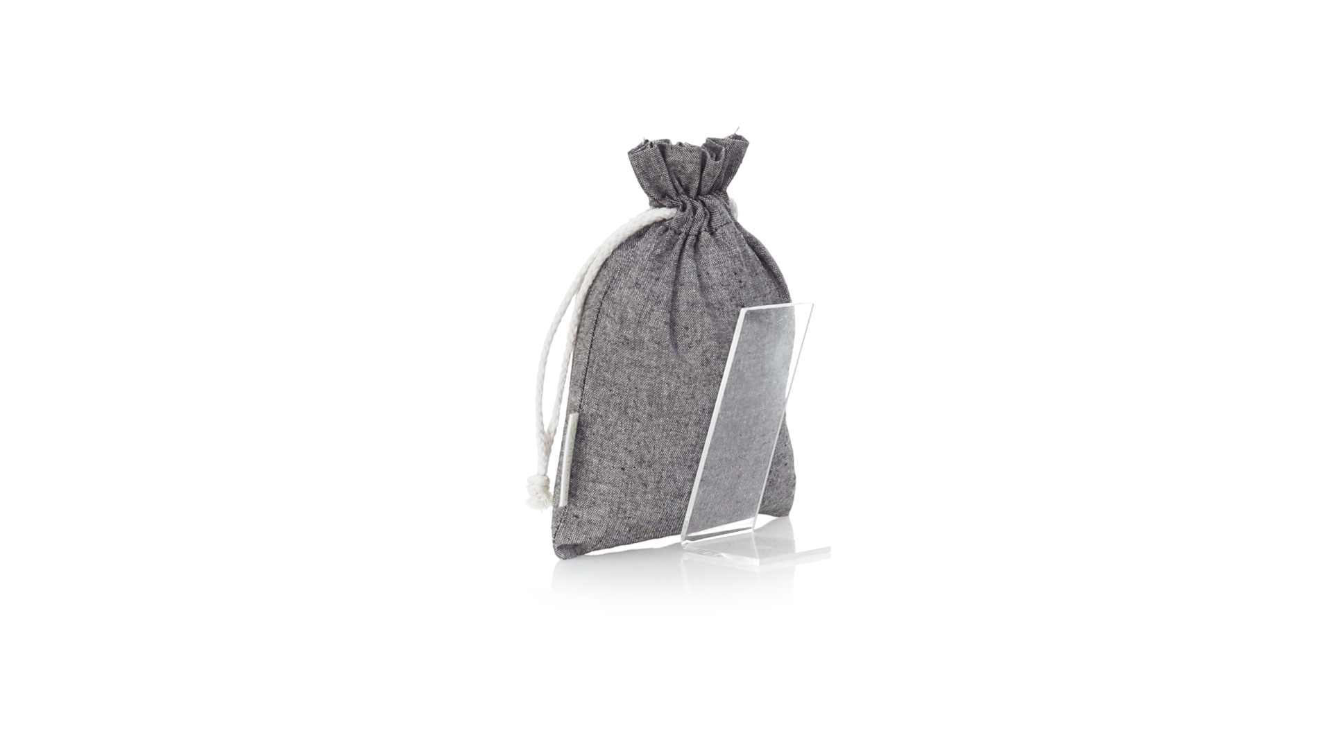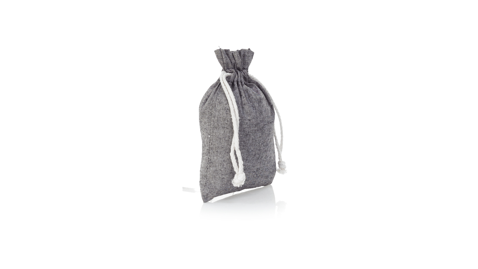 Umweltfreundliche Tasche aus widerstandsfähigem, recyceltem Baumwollmaterial von 120 g/m2. GRS-Zertifizierung (Global Recycled Standard), die die recycelte Herkunft des für die Herstellung des Produkts verwendeten Materials garantiert. Kordelzugverschluss aus Baumwolle und genähtes Finish, einschliesslich Aussenetikett mit Logo aus recycelter Baumwolle.