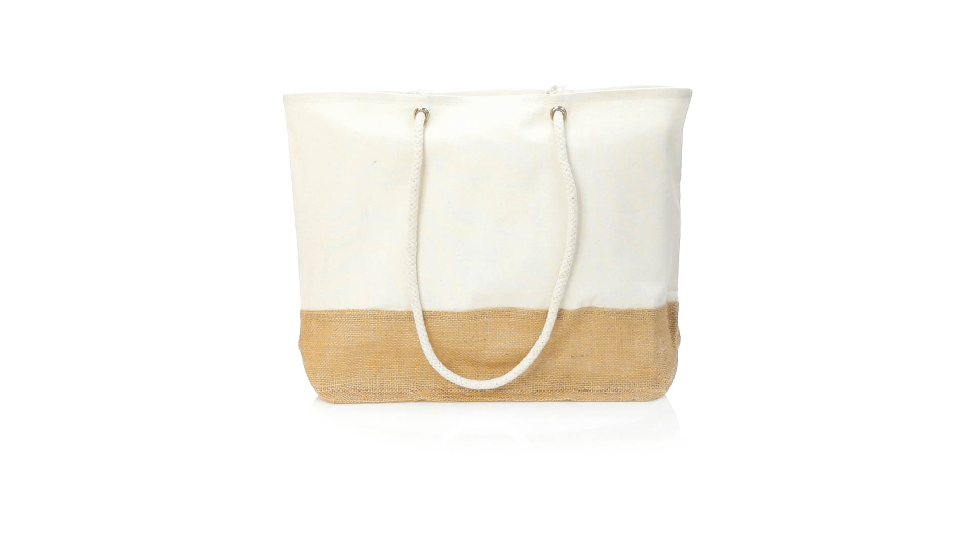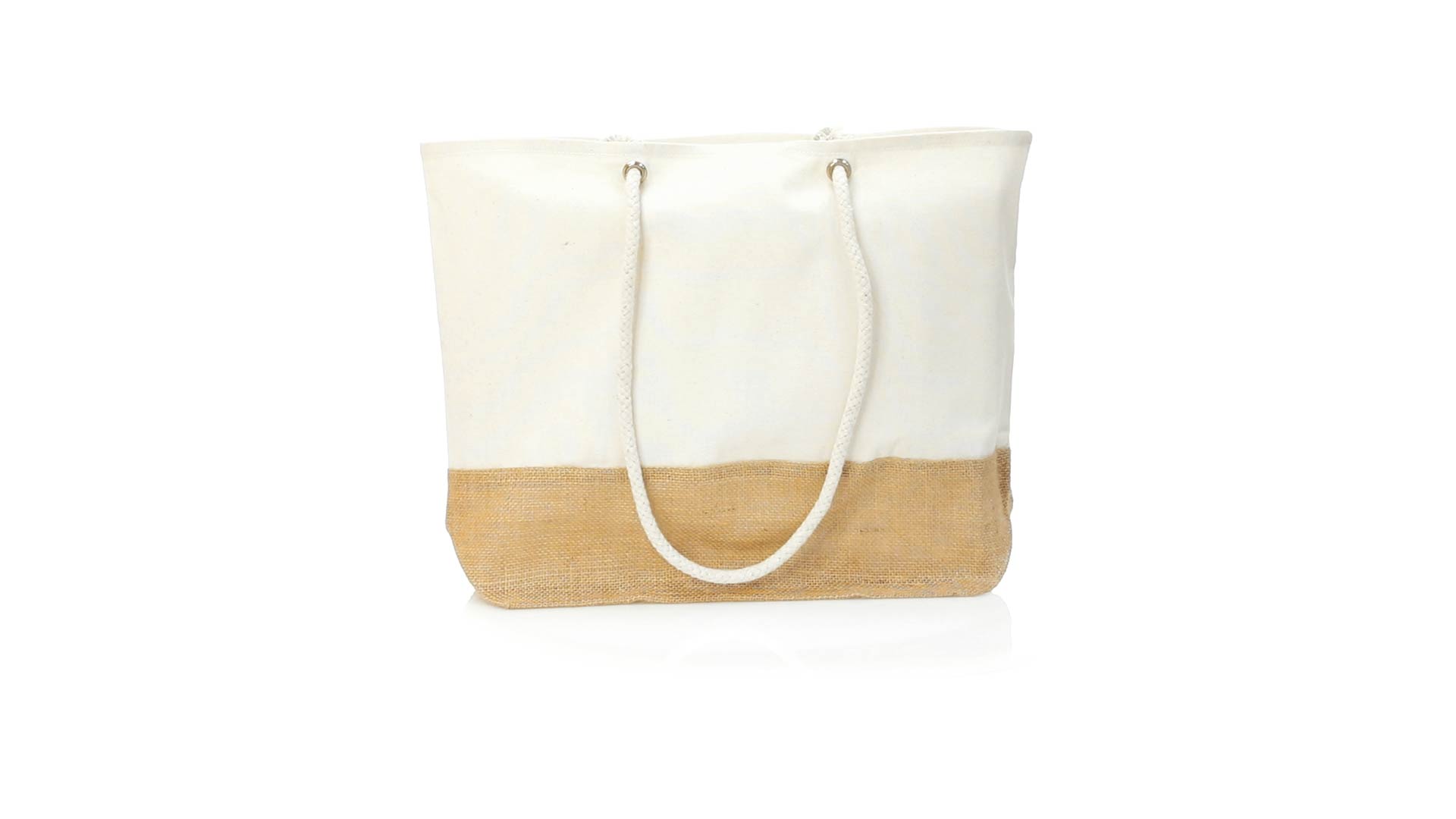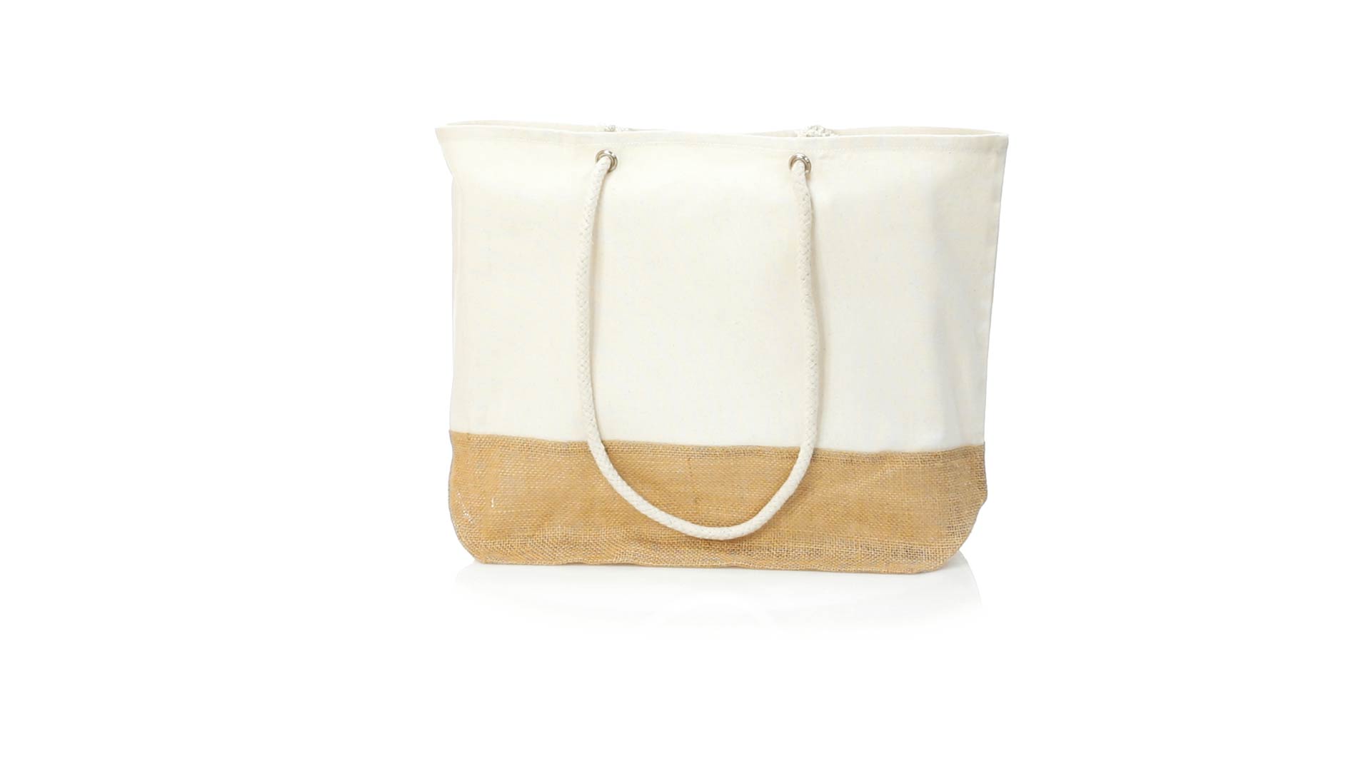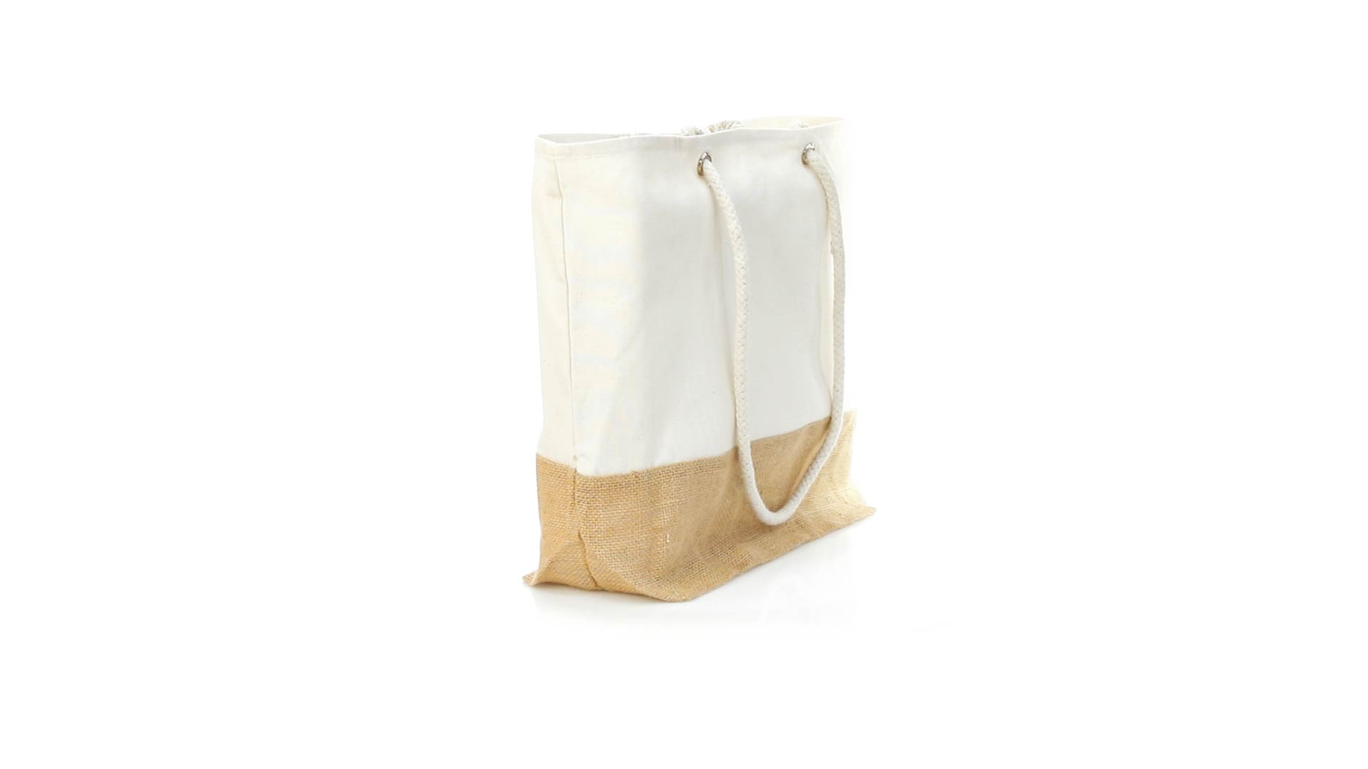 Tasche aus unserer Naturlinie in einer Kombination aus Jute- und Baumwollmaterialien. Grösse 48 x 35 + 15 cm, mit genähter Verarbeitung und langen, verstärkten Henkeln mit 90 cm Länge aus Baumwolle. Widerstandsfähig bis zu 9 kg Gewicht.