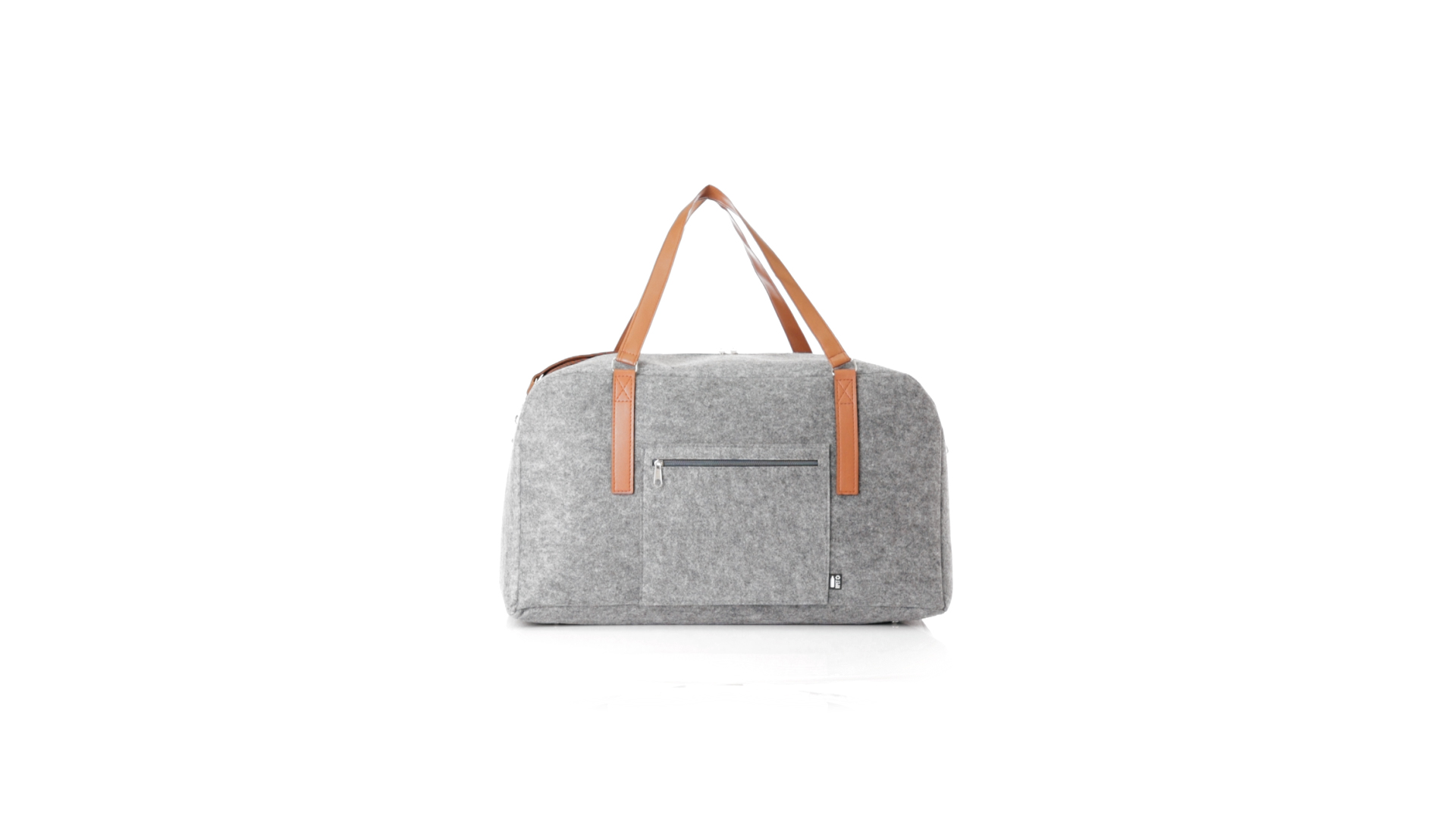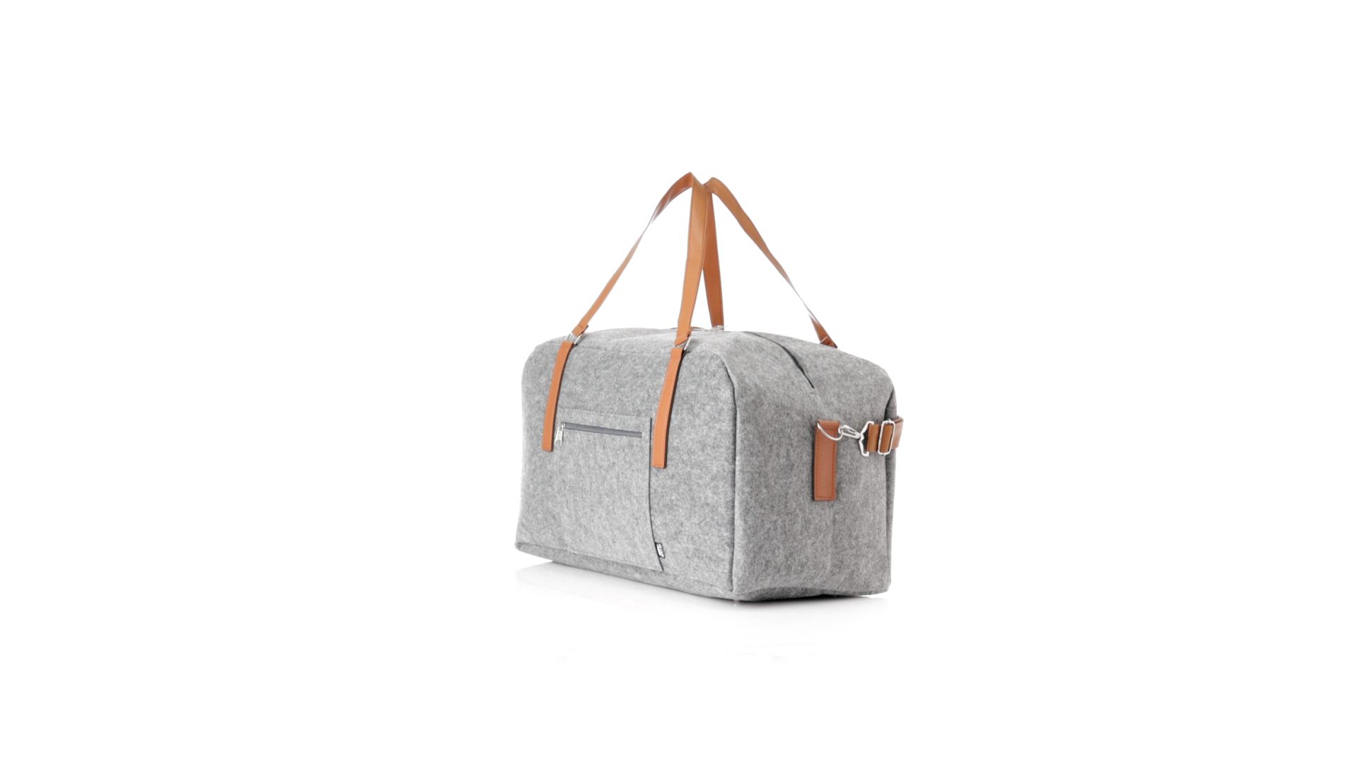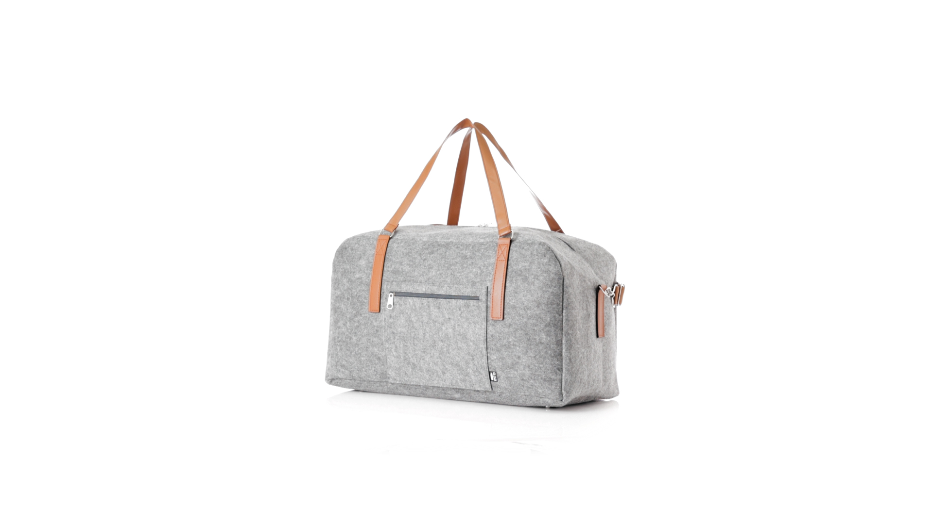 Linie Natur Stilvolle Tasche aus strapazierfähigem Filz-RPET. Hauptfach mit passendem Reissverschluss und doppeltem Zipper. Elegante braune PU-Ledergriffe mit passendem, verstellbarem Schulterriemen. Aussenliegende Reissverschlusstasche mit RPET-Label.Filz-RPET ist das Ergebnis der Kombination von Recyclingprozessen von Kunststoffen mit der jahrtausendealten Technik der Filzherstellung, was zu einem Öko-Trend-Material führt, das nicht nur recycelten Ursprungs ist, sondern auch wiederverwertet werden kann.
