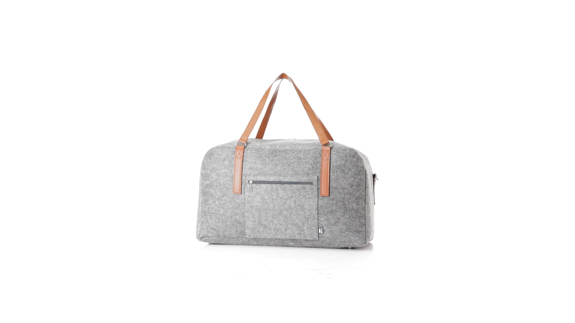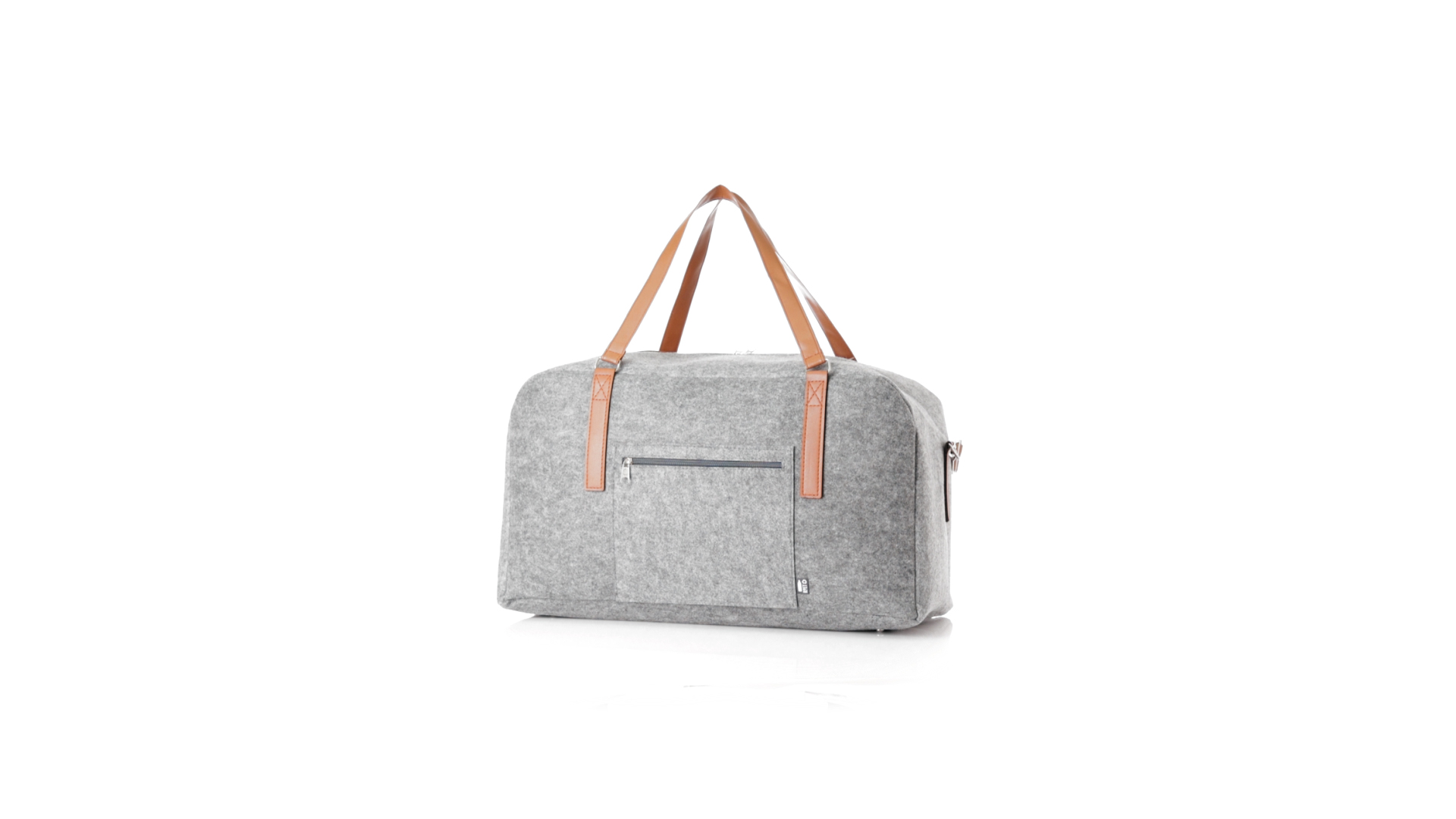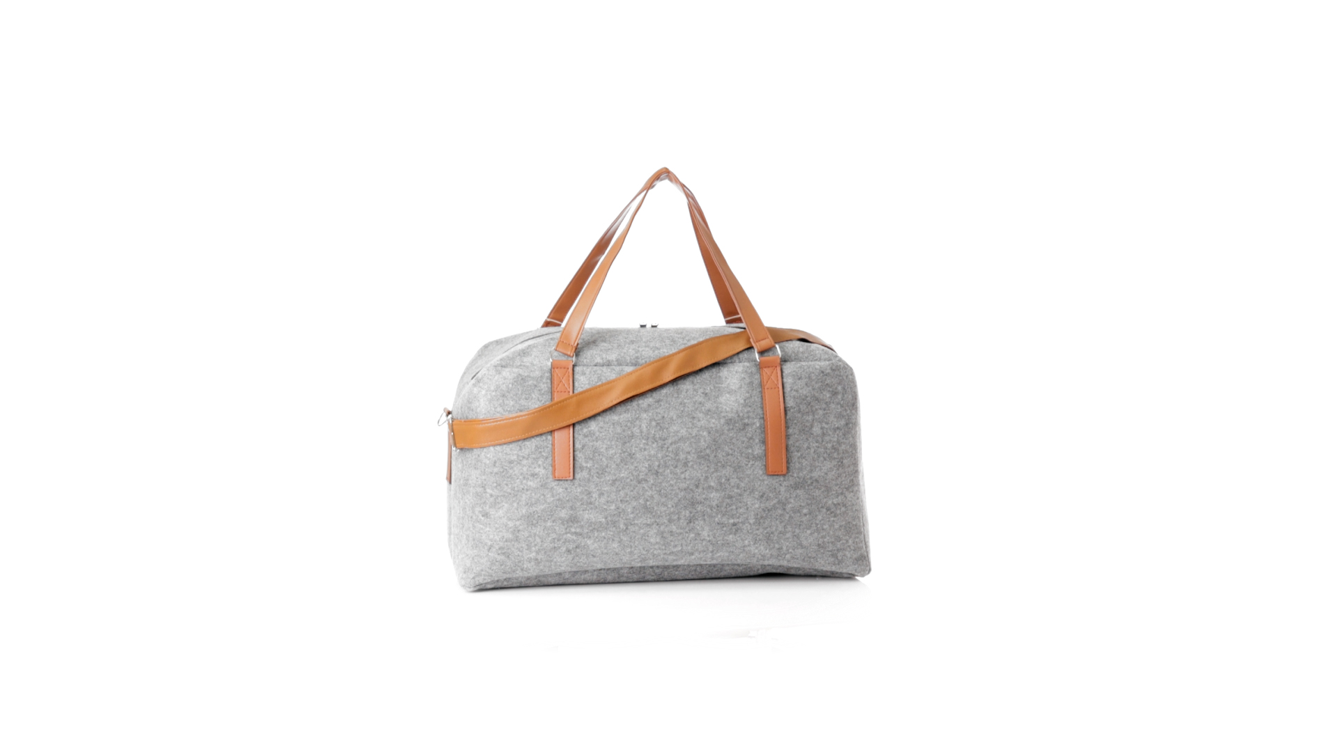 Linie Natur Stilvolle Tasche aus strapazierfähigem Filz-RPET. Hauptfach mit passendem Reissverschluss und doppeltem Zipper. Elegante braune PU-Ledergriffe mit passendem, verstellbarem Schulterriemen. Aussenliegende Reissverschlusstasche mit RPET-Label.Filz-RPET ist das Ergebnis der Kombination von Recyclingprozessen von Kunststoffen mit der jahrtausendealten Technik der Filzherstellung, was zu einem Öko-Trend-Material führt, das nicht nur recycelten Ursprungs ist, sondern auch wiederverwertet werden kann.