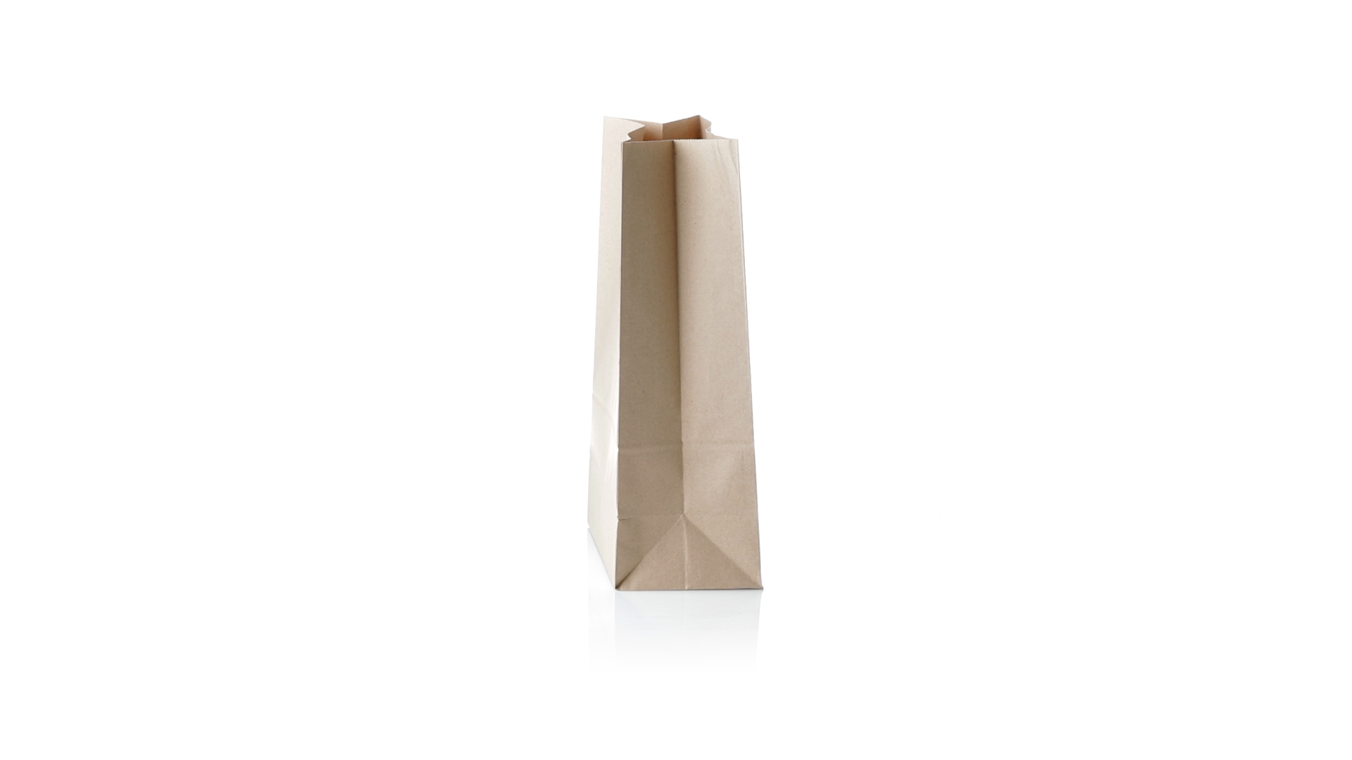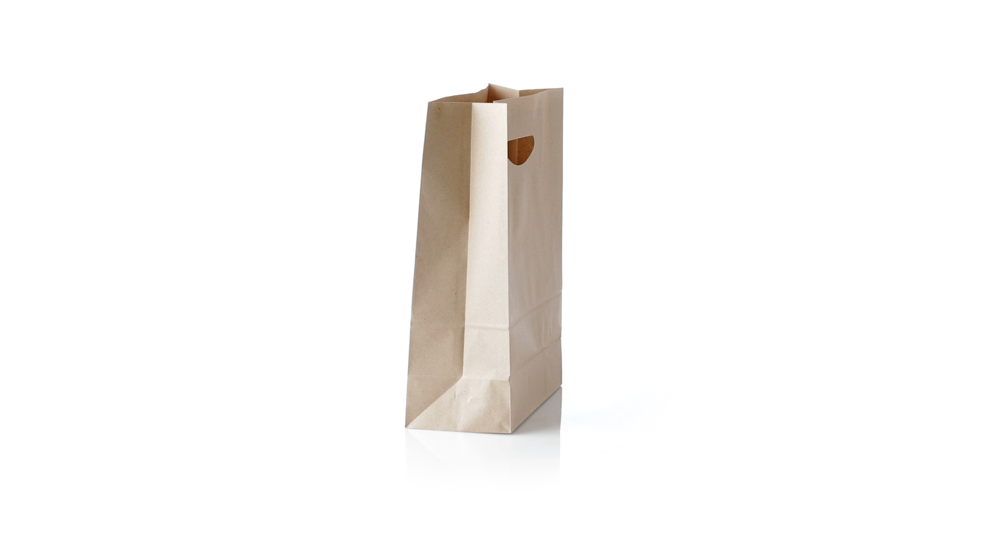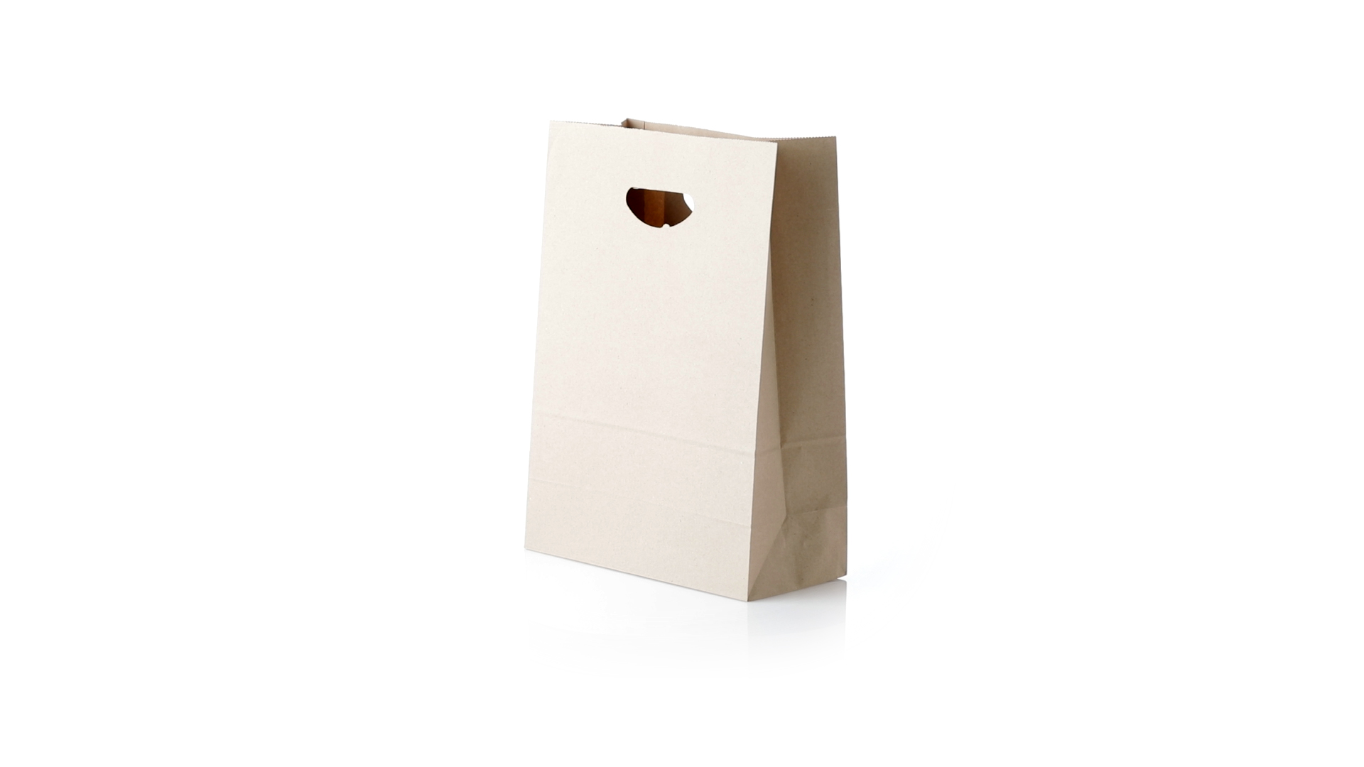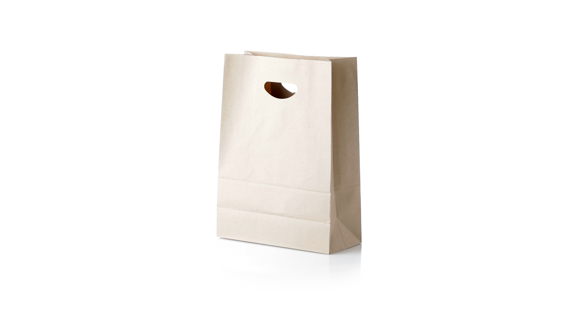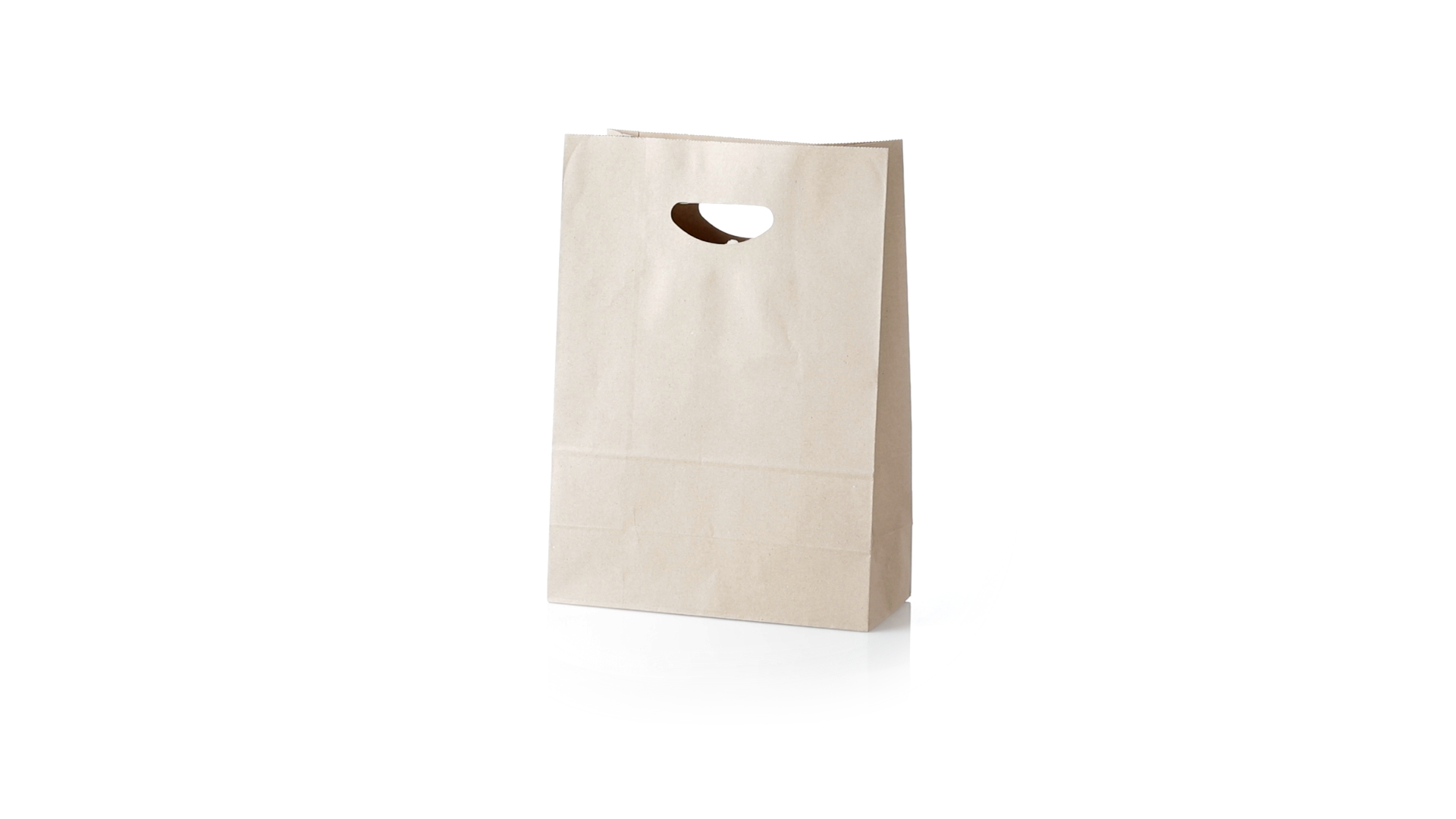 Linie "Natur" Leichtgewichtige Tasche aus 80 g/m2 Recyclingpapier. Mit originell gestanztem Griff und Bodenfalte.