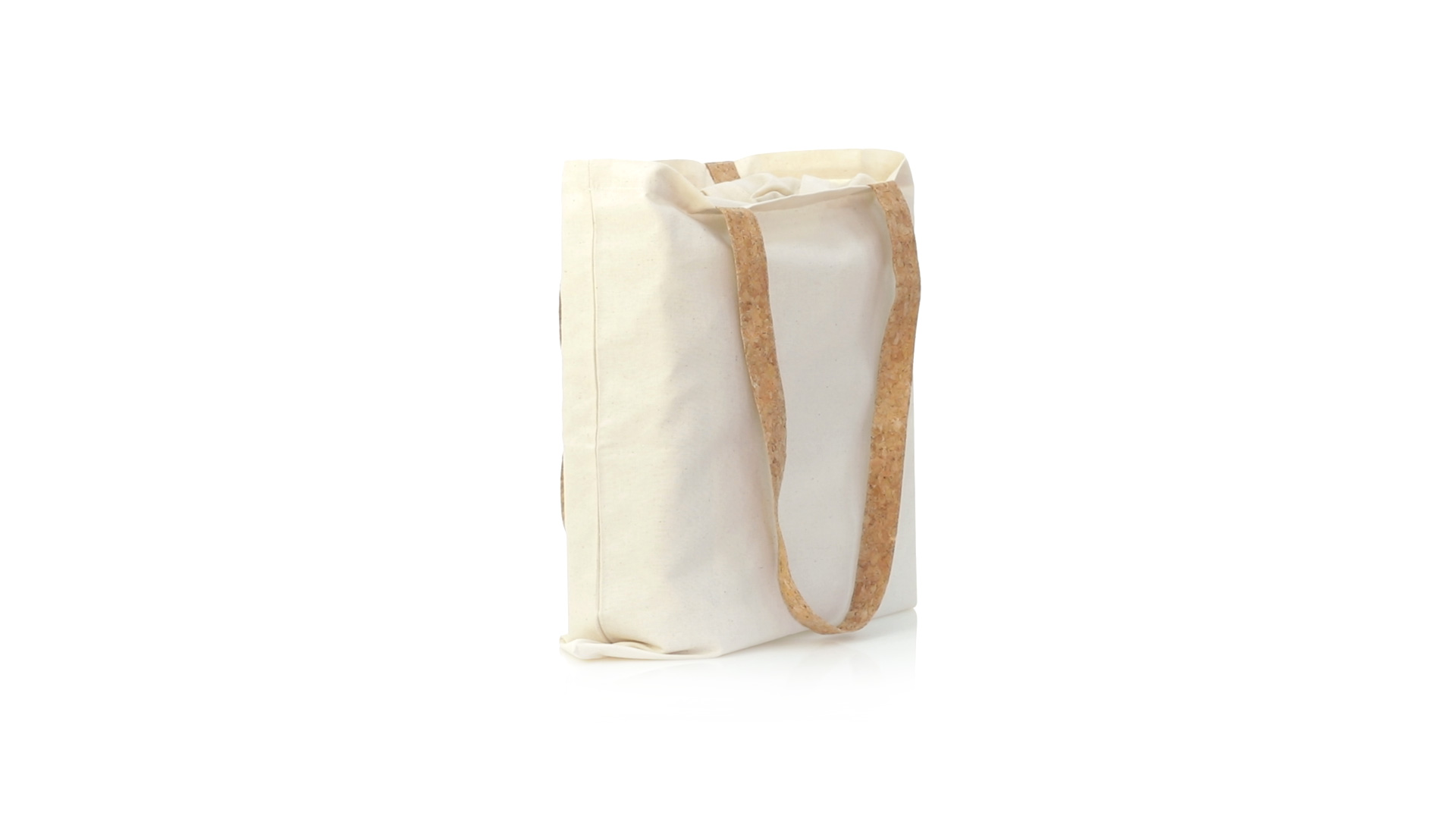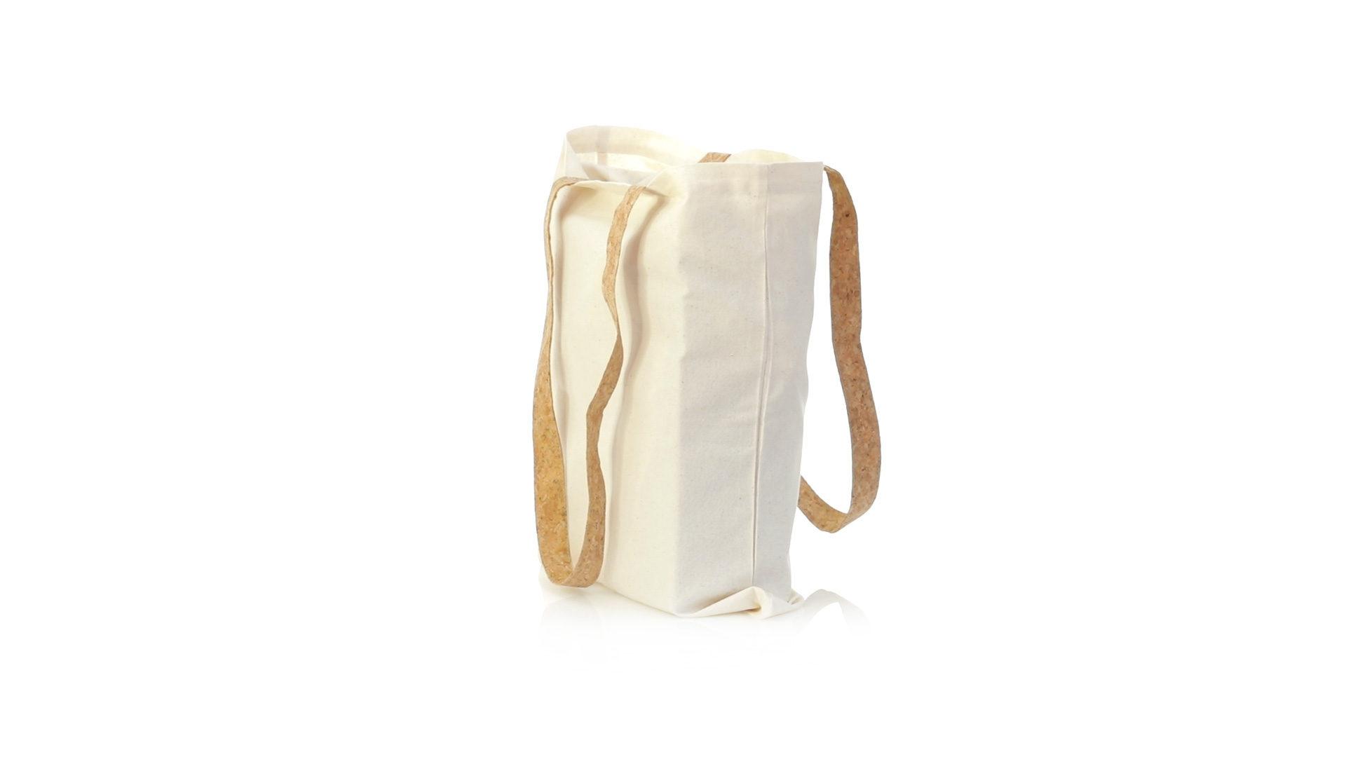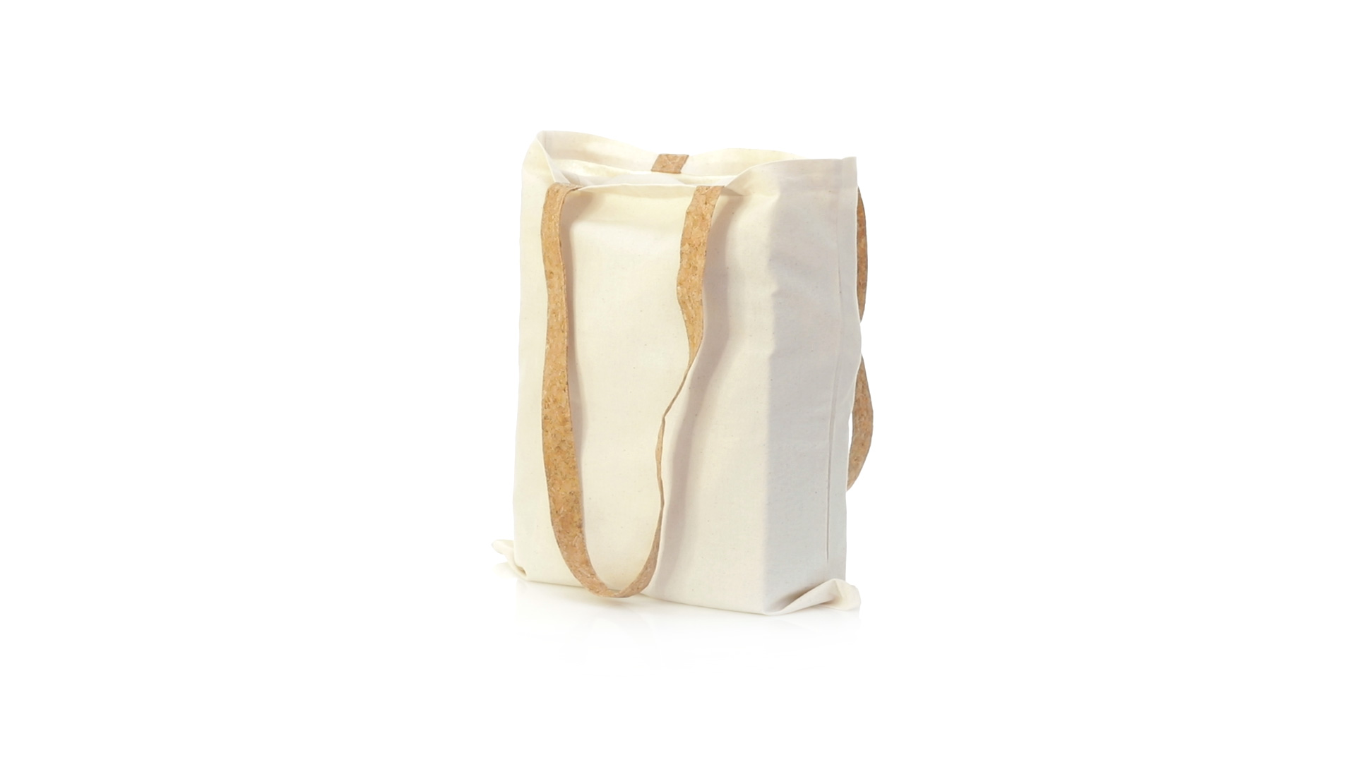 Nature Line Tasche aus widerstandsfähiger Baumwolle von 180g/m2 und originellen Griffen aus Naturkork von 70cm verstärkt. Genähtes Finish und Widerstand bis zu 8 kg Gewicht.