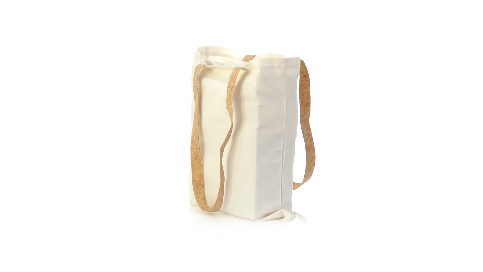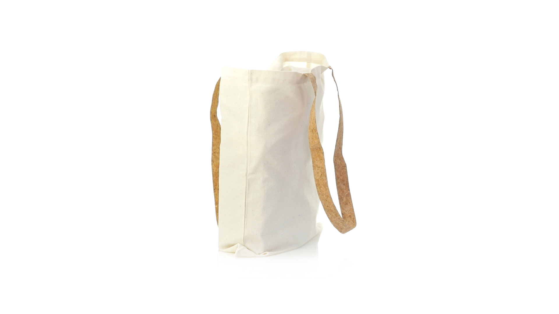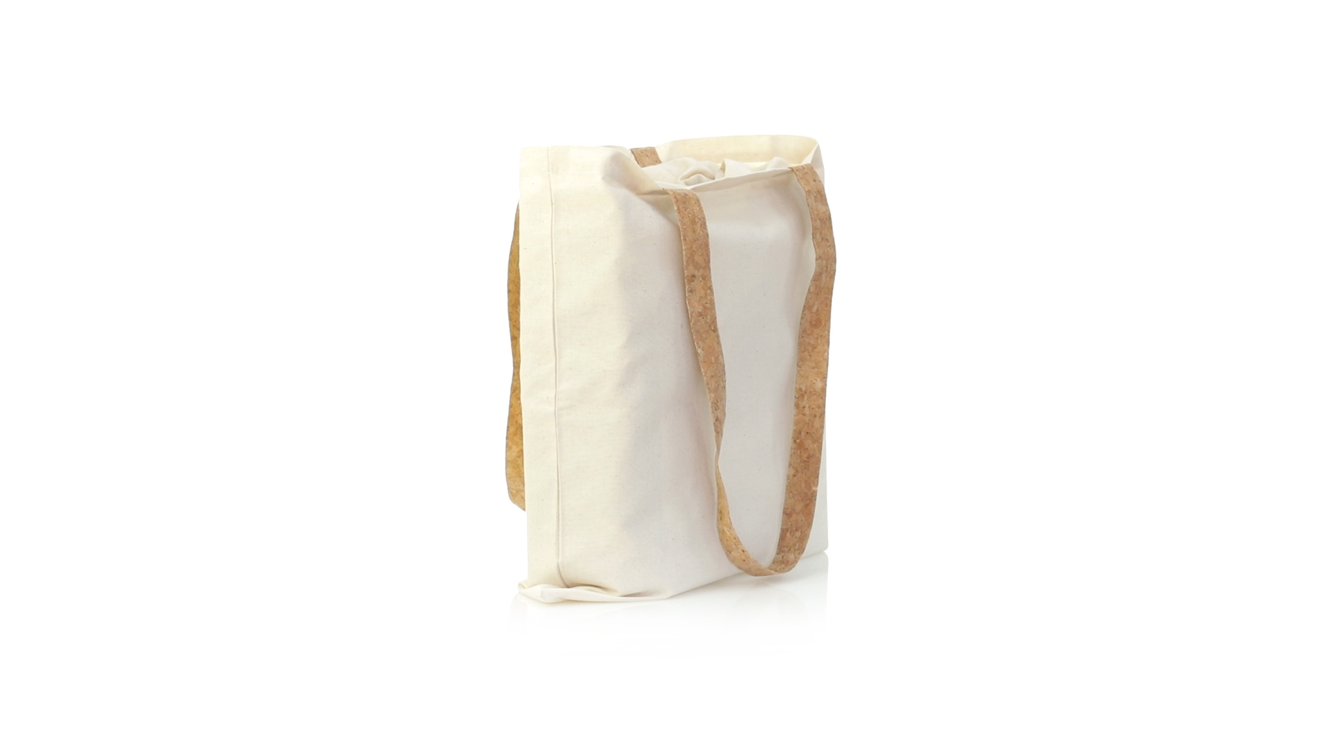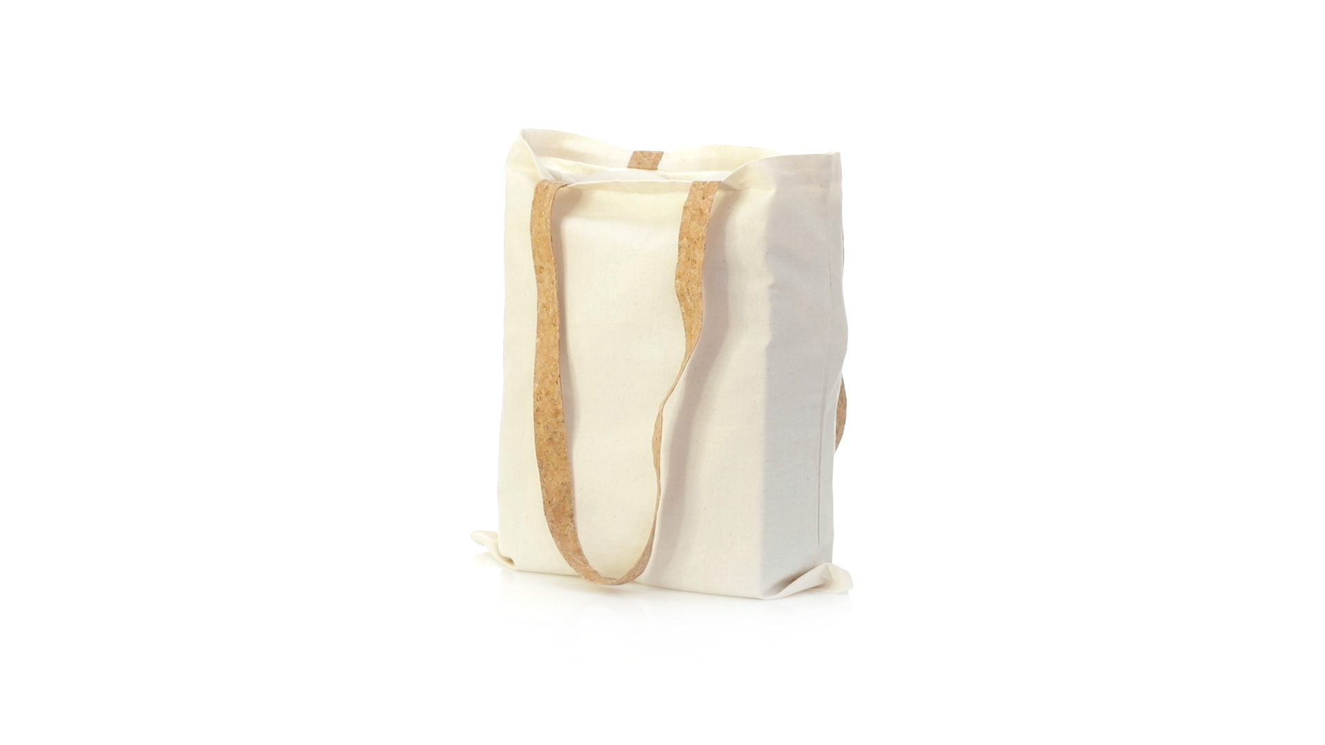 Nature Line Tasche aus widerstandsfähiger Baumwolle von 180g/m2 und originellen Griffen aus Naturkork von 70cm verstärkt. Genähtes Finish und Widerstand bis zu 8 kg Gewicht.
